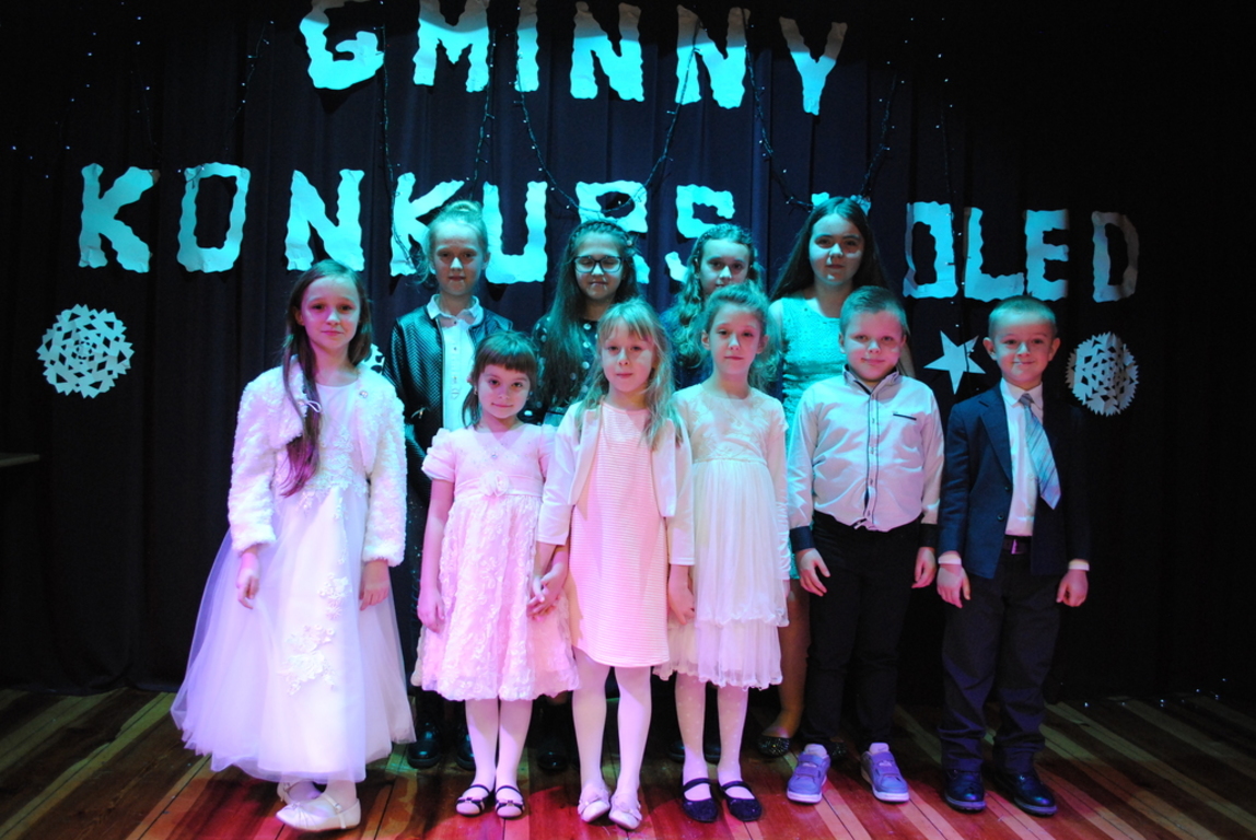 W niedzielę 21 stycznia 2018 w Gminnym Ośrodku Kultury w Harasiukach odbył sie coroczny " Gminny Konkurs Kolęd" dla dzieci ze szkół z terenu całej gminy. Naszą szkołę reprezentowała pokaźna dziesięcioosobowa ekipa: