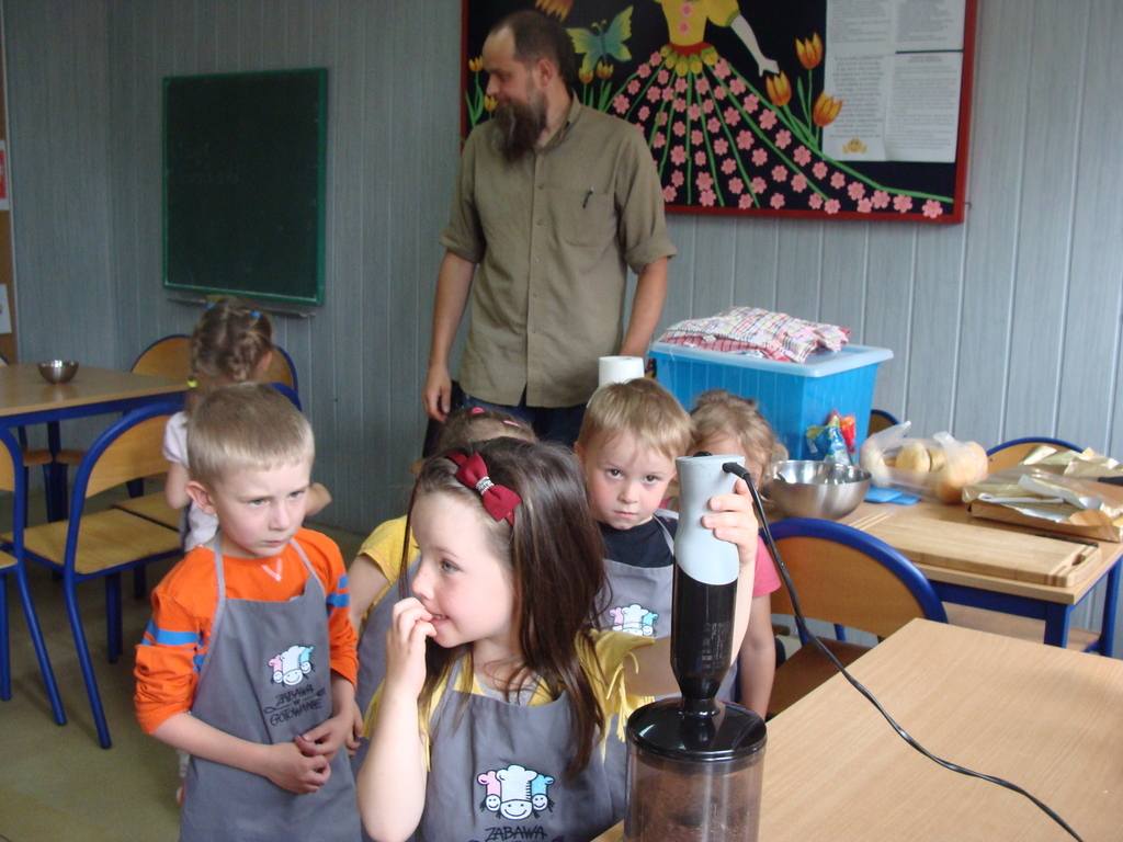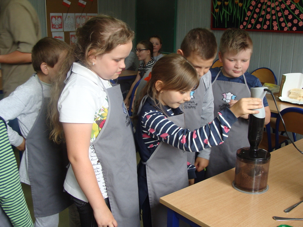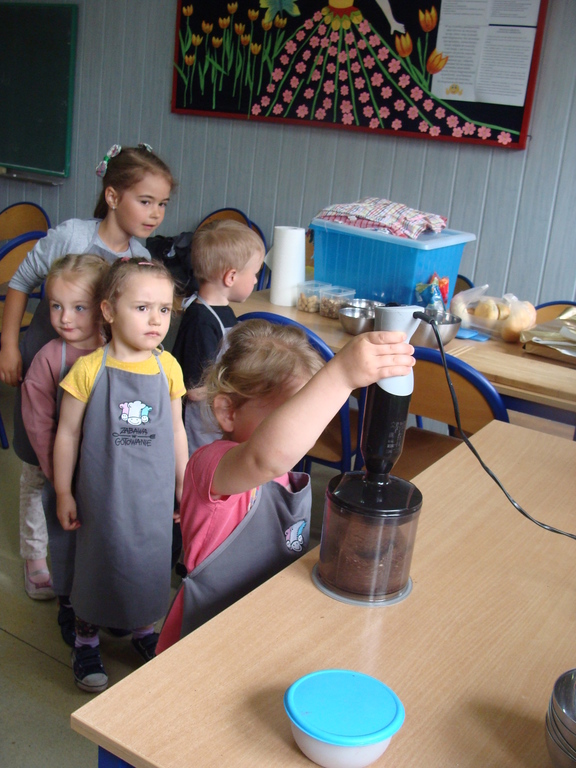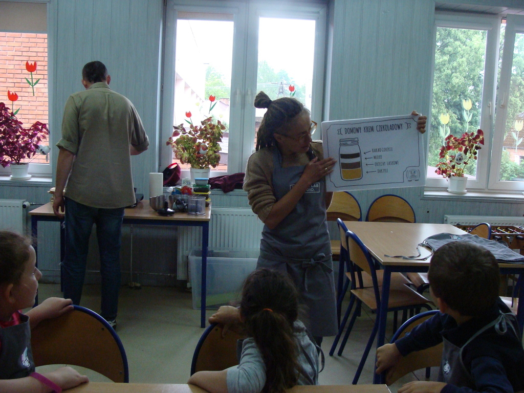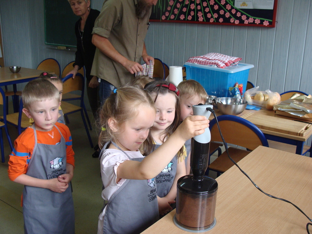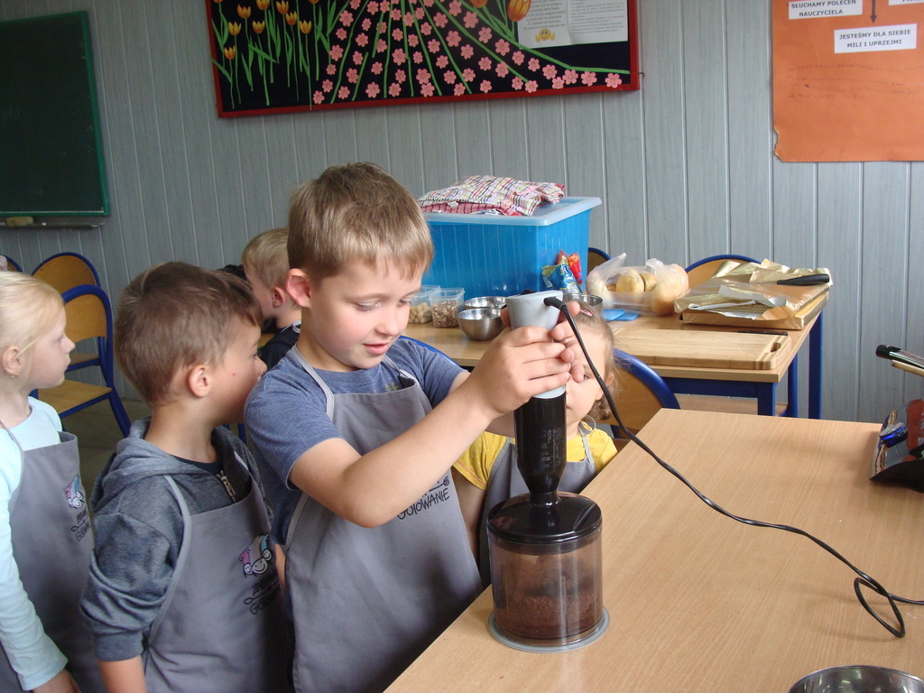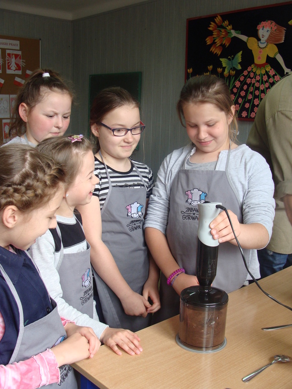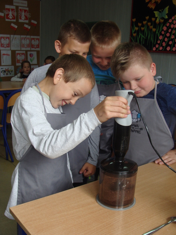 18 maja prowadzący bloga zabawawgotowanie.pl ponownie odwiedzili naszą szkołę i wspólnie z wychowankami oddziału przedszkolnego i uczniami z oddziałów I-III przygotowywali zdrową nutellę.