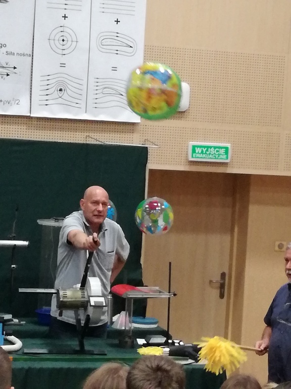 Podczas pokazów dowiedzieli się np. co to jest fosforescencja, powidok, zjawisko interferencji, rozpraszanie Rayleigha, na czym polega proces konwekcji czy też, jak brzmi prawo Bernoulliego. Zapoznali się ze zjawiskiem tęczy i poznali propozycje wykonania kilkunastu zabawek fizycznych, które można wykorzystać w nauce w/w przedmiotu. Pokazy były bardzo interesujące dla uczniów, którzy mogli uczestniczyć w doświadczeniach prezentowanych przez prowadzących.