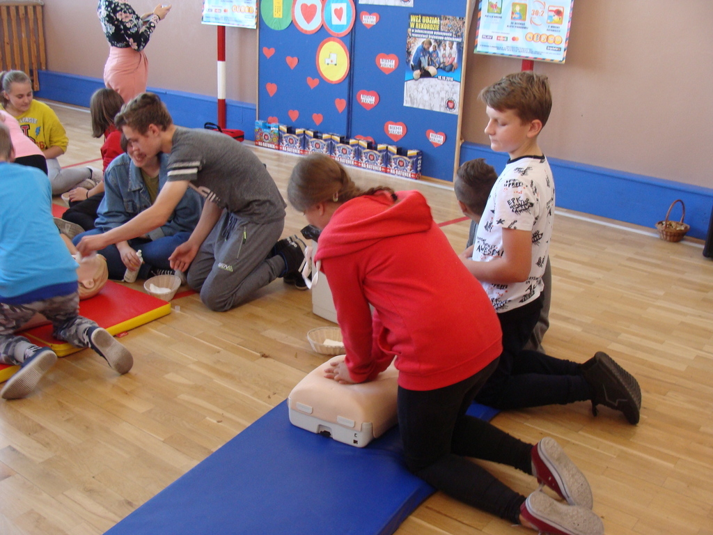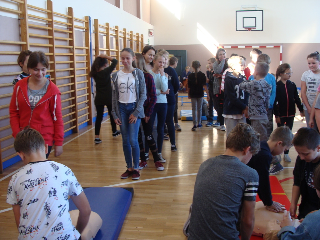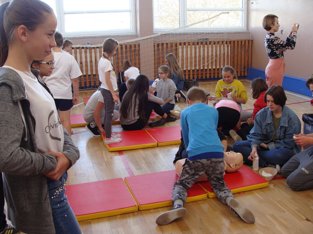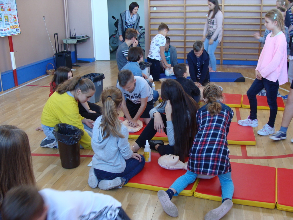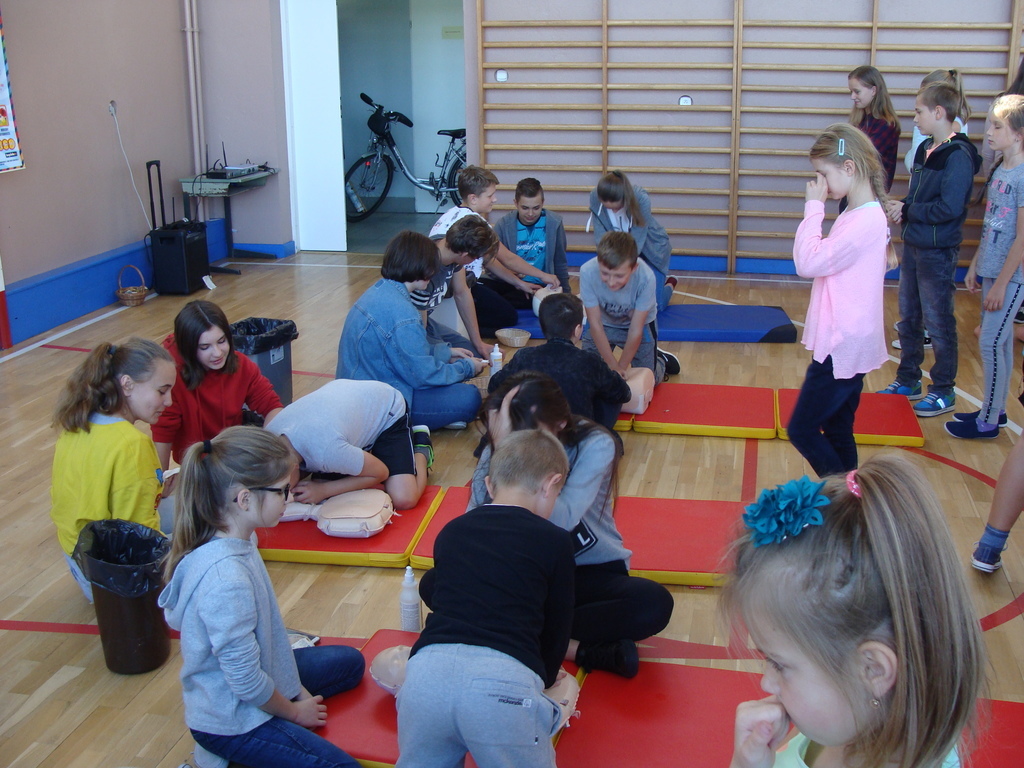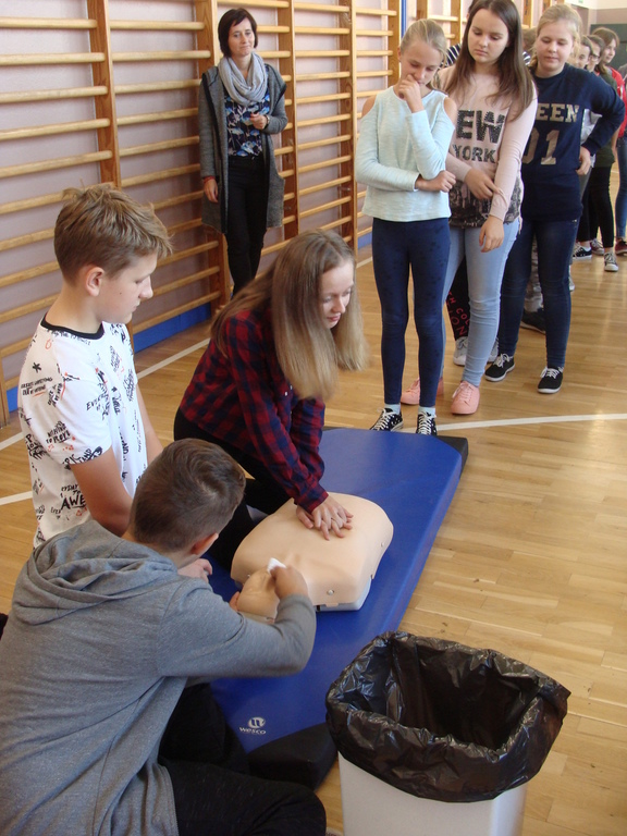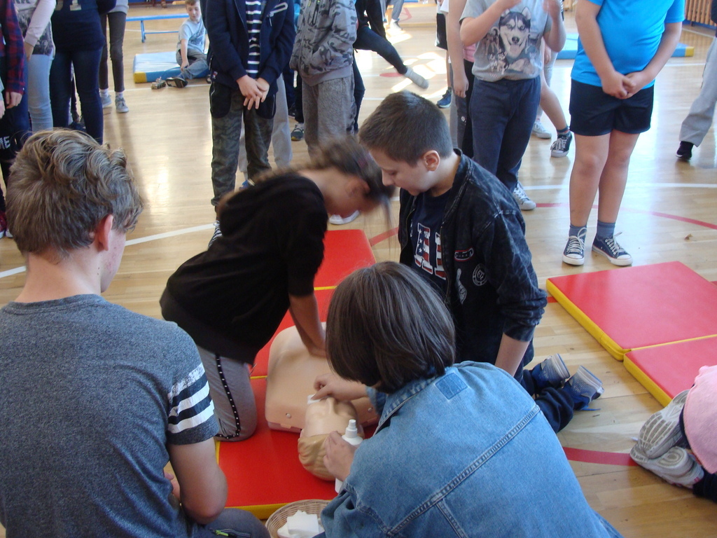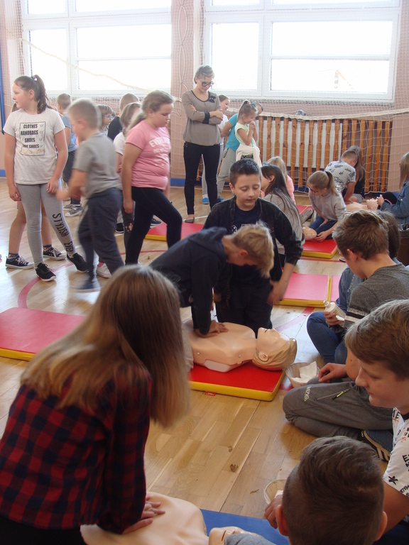 W udzielaniu pierwszej pomocy wzięło udział 64 uczniów i wychowanków, którzy przez pół godziny ćwiczyli na 5 fantomach.