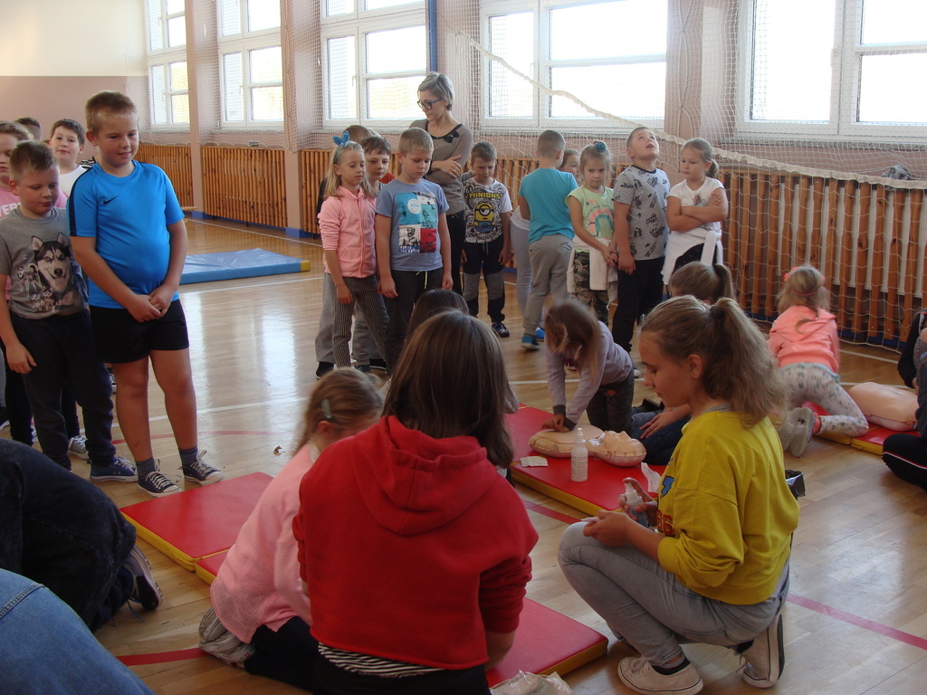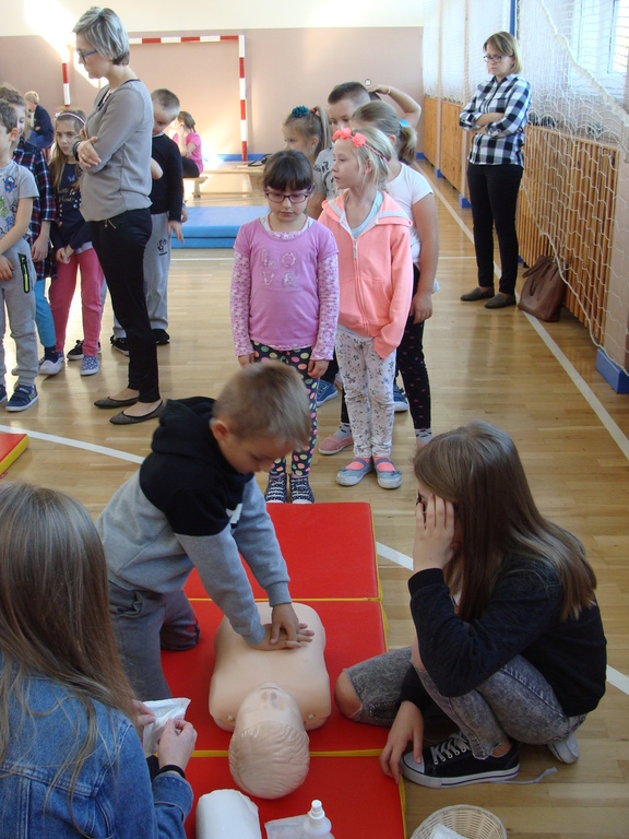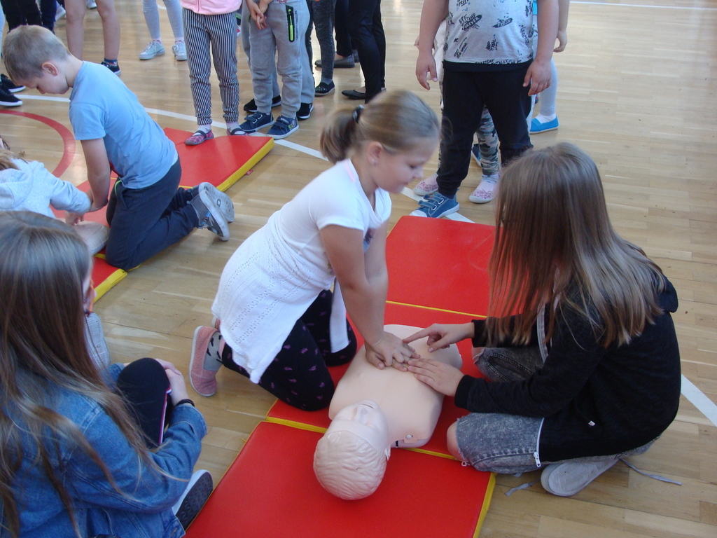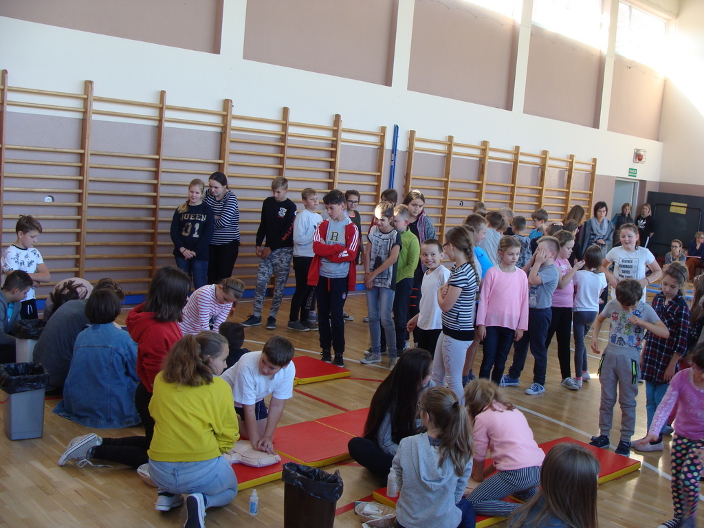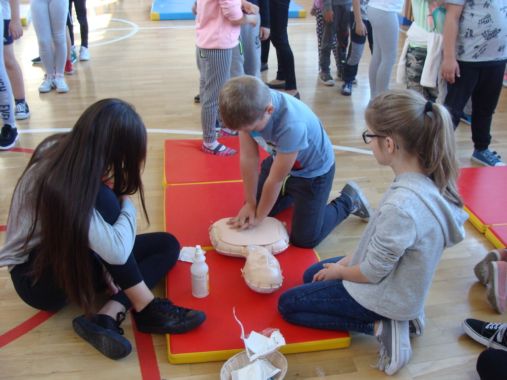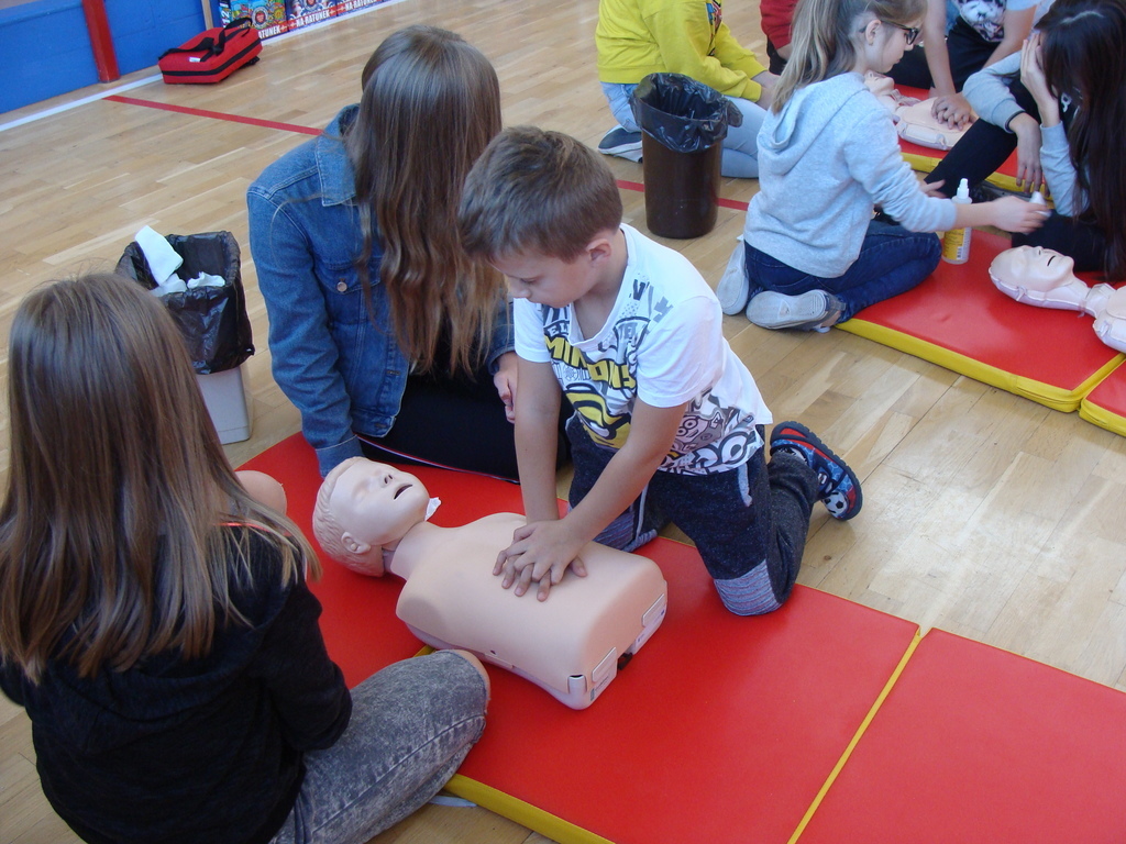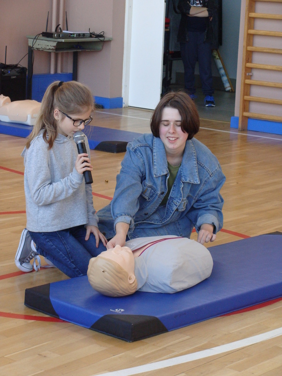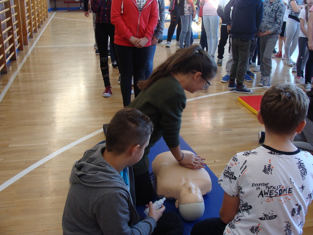 W udzielaniu pierwszej pomocy wzięło udział 64 uczniów i wychowanków, którzy przez pół godziny ćwiczyli na 5 fantomach.