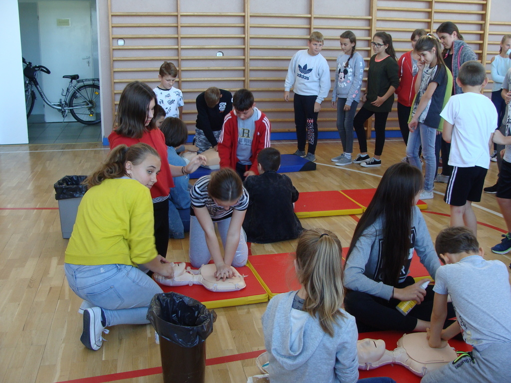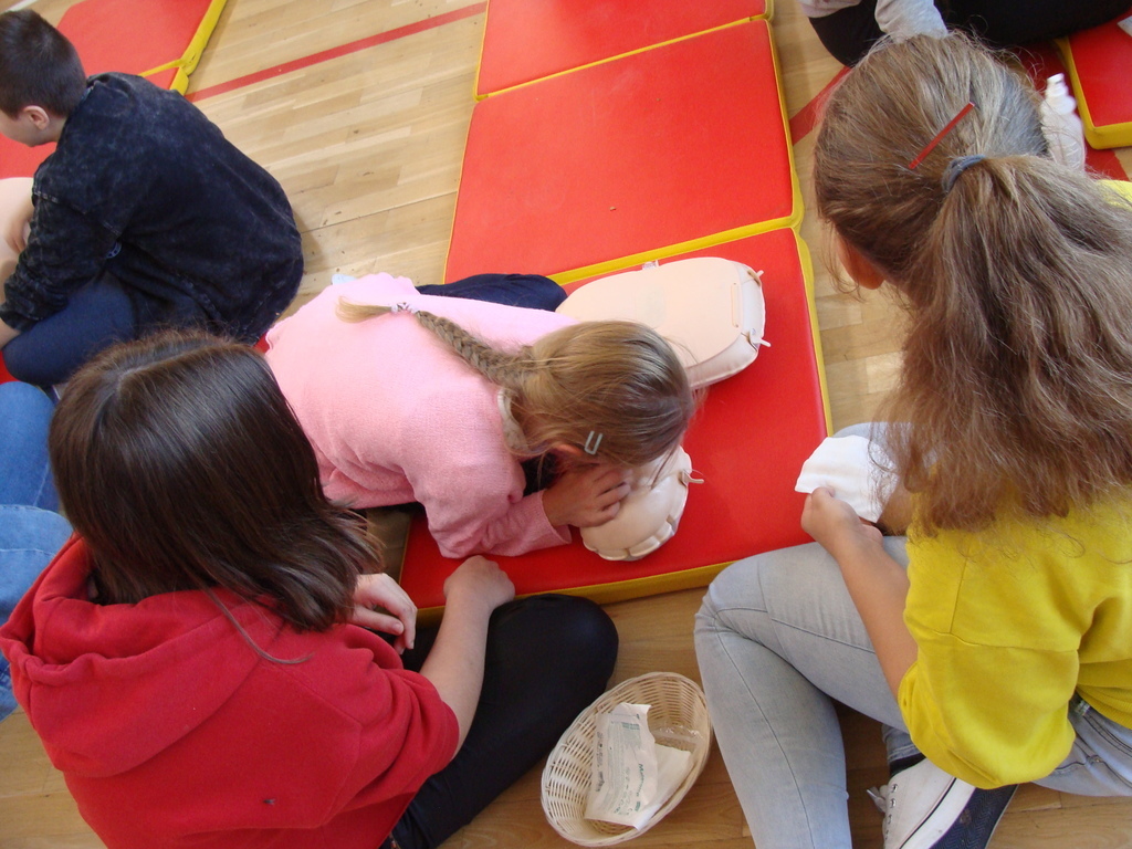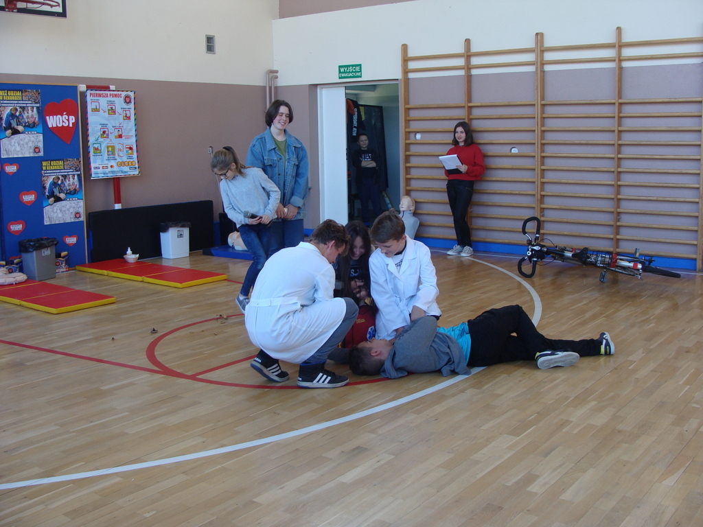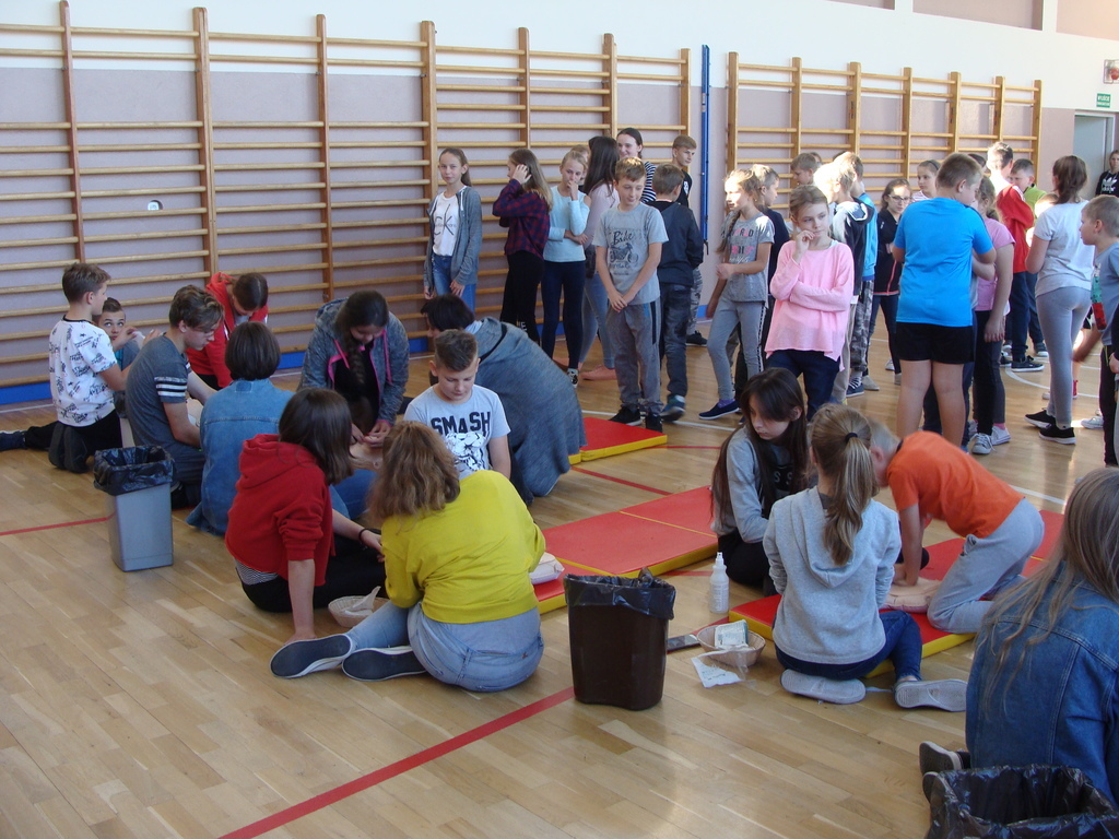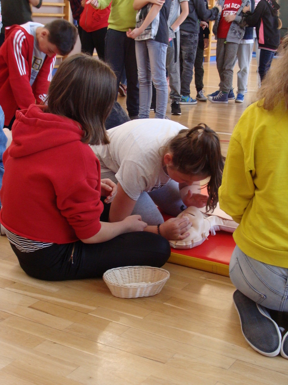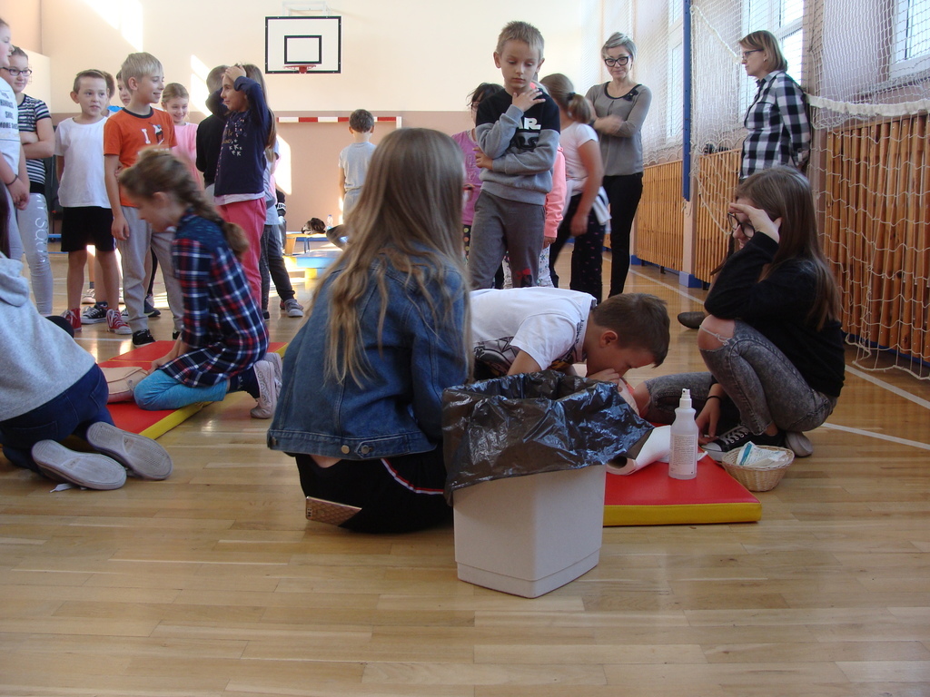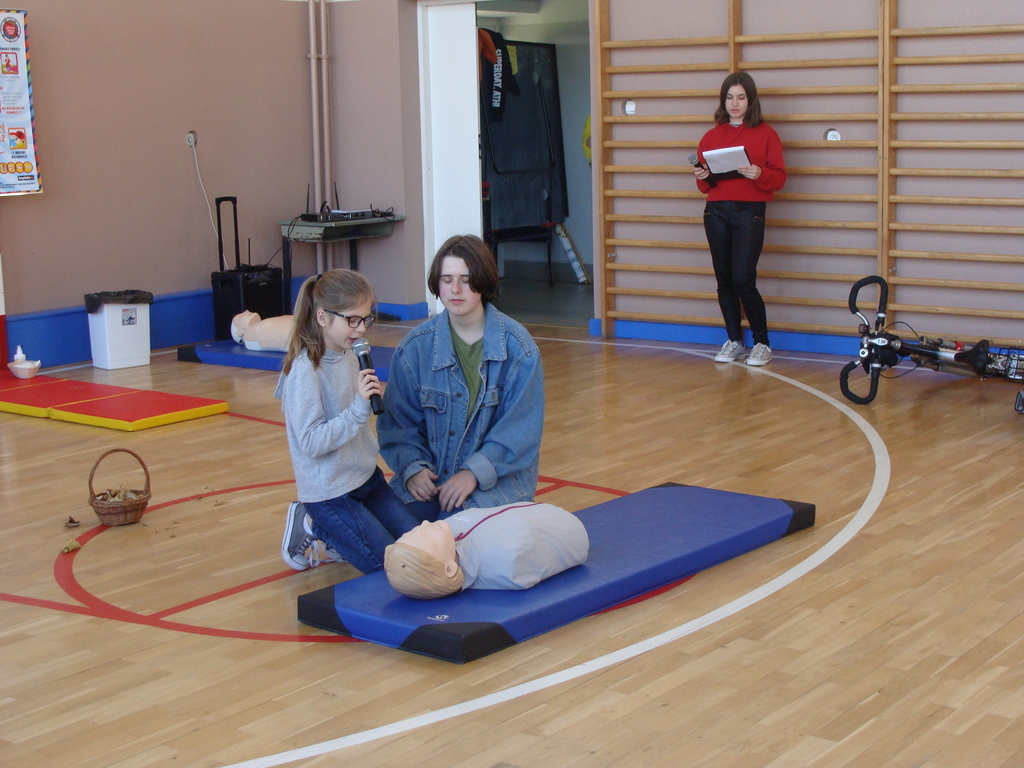 W udzielaniu pierwszej pomocy wzięło udział 64 uczniów i wychowanków, którzy przez pół godziny ćwiczyli na 5 fantomach.