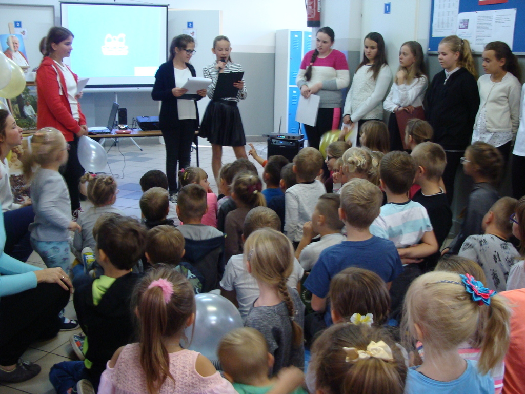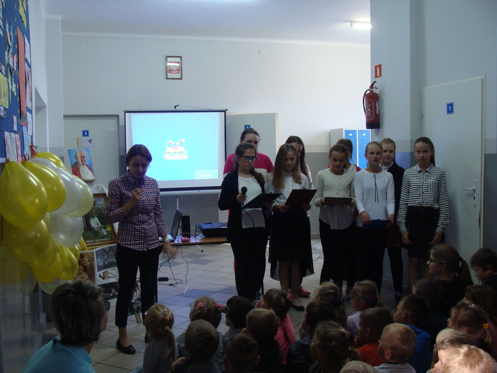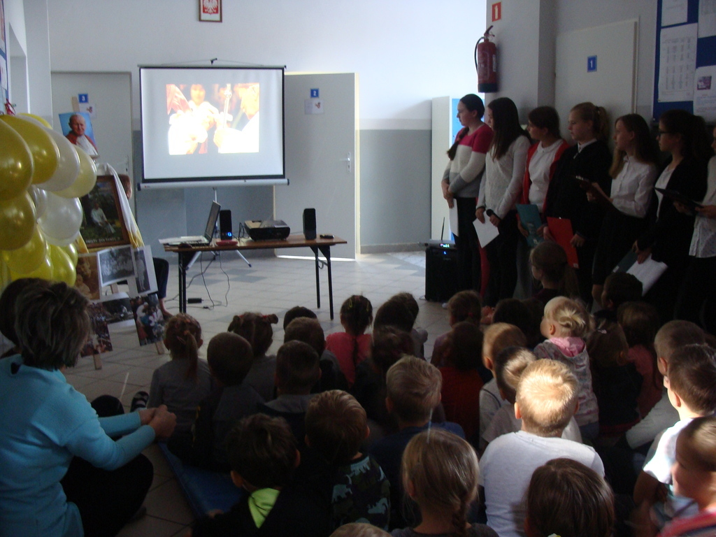 17 października w szkole obchodziliśmy Dzień Papieski. Apel z tej okazji przygotowała pani Mariola Zielonka z uczennicami klasy siódmej. Na koniec uczniowie i wychowankowie uczestniczyli w quizie dotyczącym papieża Jana Pawła II-go.