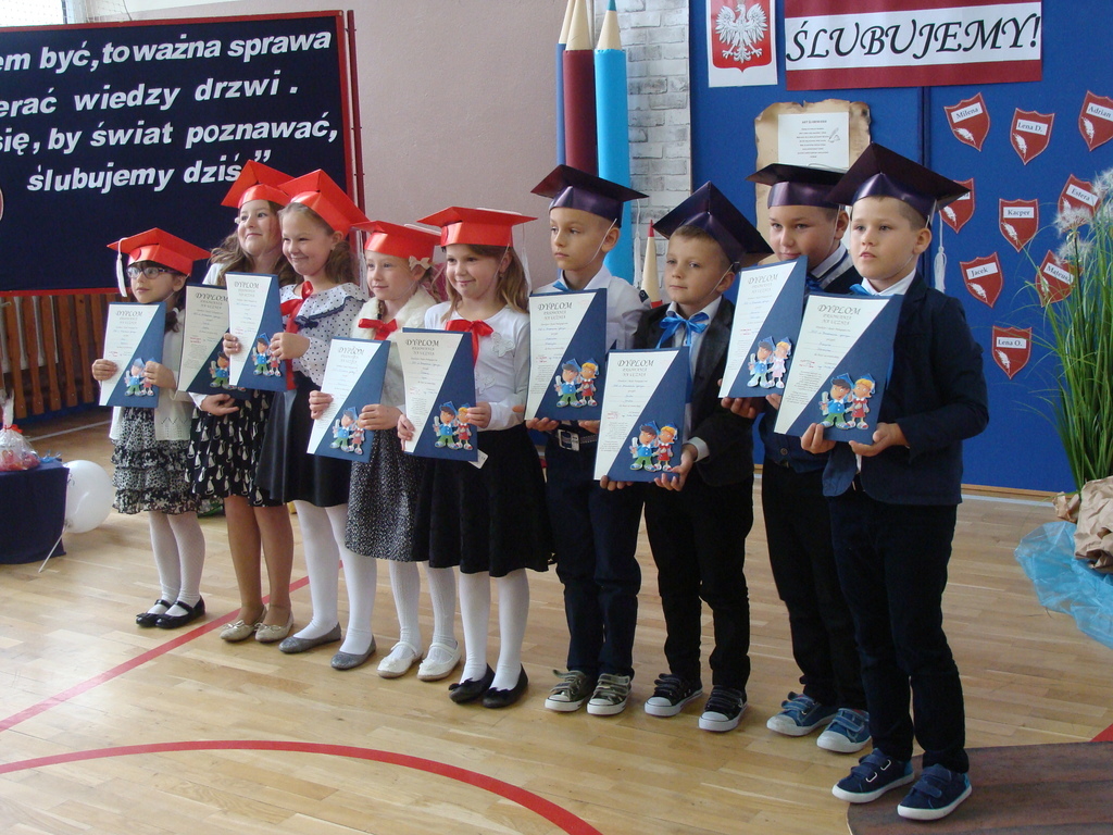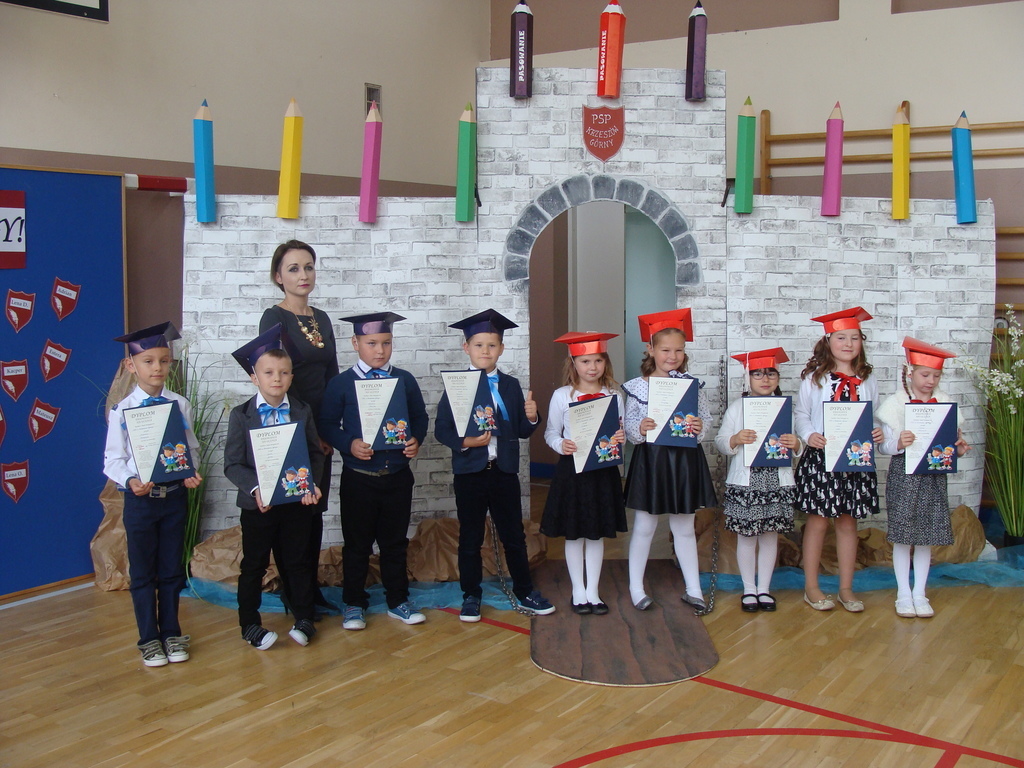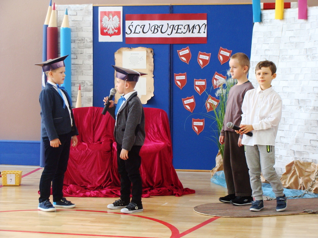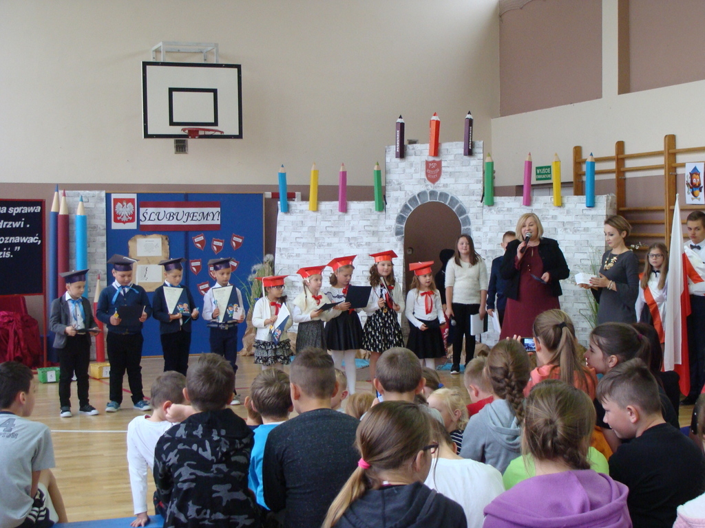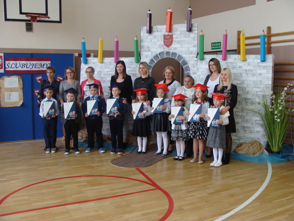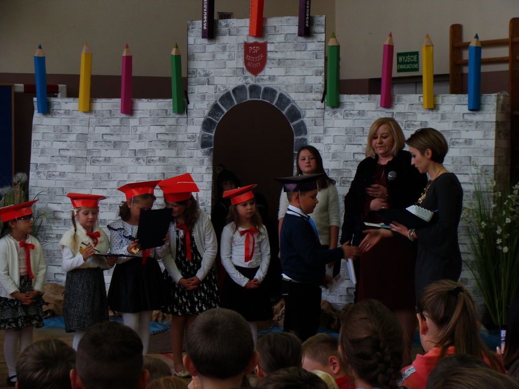 Na szczęście nasze „pierwszaki” wykazały się ogromną wiedzą i umiejętnościami, zadziwiając nie tylko króla i królową, ale również zebraną na Pasowaniu publiczność. Ponadto uczniowie wykazali się niezwykłym męstwem i bez wahania wypili przygotowany na tę okazję napój mądrości. To, co nastąpiło potem, okazało się więc tylko przyjemną formalnością. Pierwszoklasiści złożyli uroczyste ślubowanie, a pani dyrektor pasowała naszych bohaterów na uczniów Publicznej Szkoły Podstawowej w Krzeszowie Górnym. Rodziców również nie mogło tego dnia zabraknąć- dziękujemy im za ciepłe słowa oraz za pomoc w przygotowaniu upominków i poczęstunku.