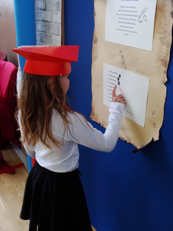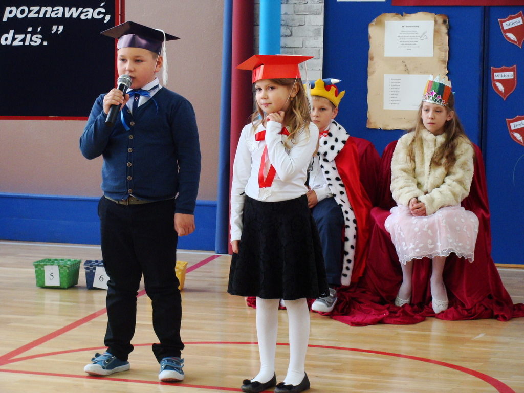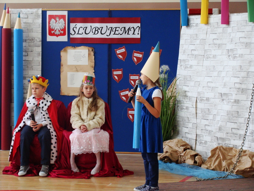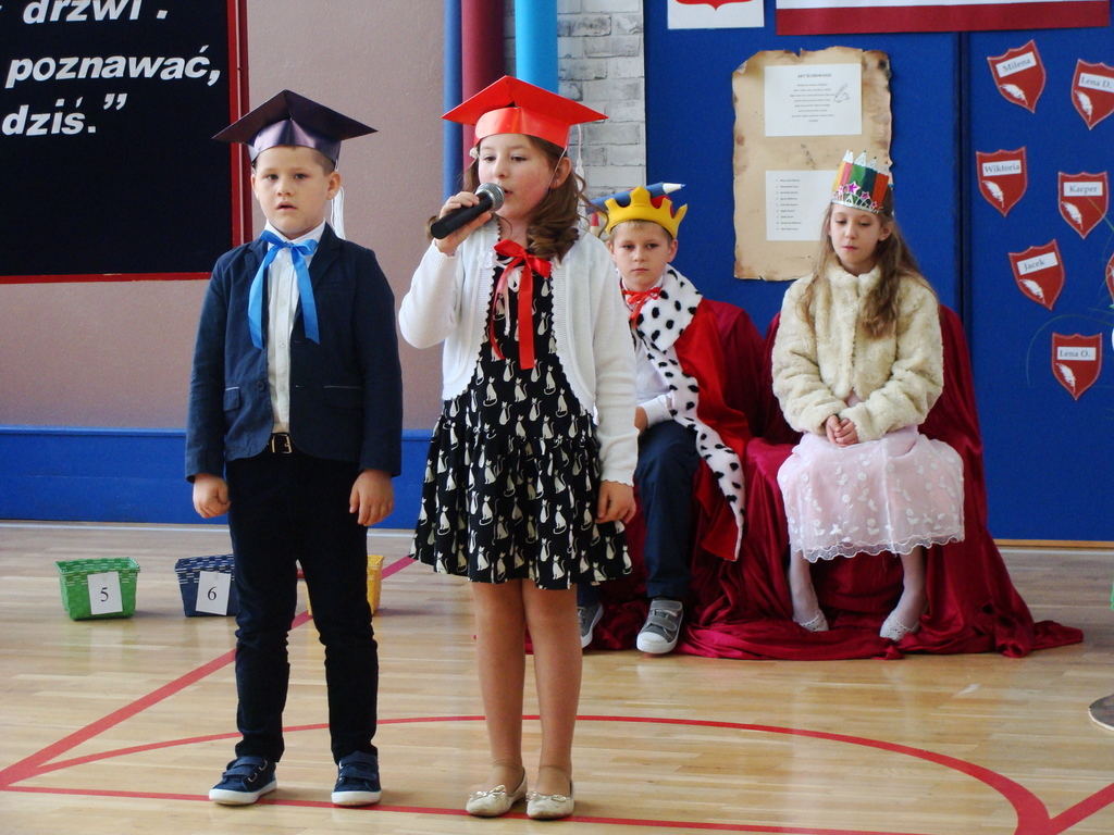 W czwartek 25 października naszą szkołę odwiedzili niezwykli goście- król Kredkos wraz z małżonką, którzy postanowili sprawdzić, czy tutejsi pierwszoklasiści zasługują na miano uczniów.
