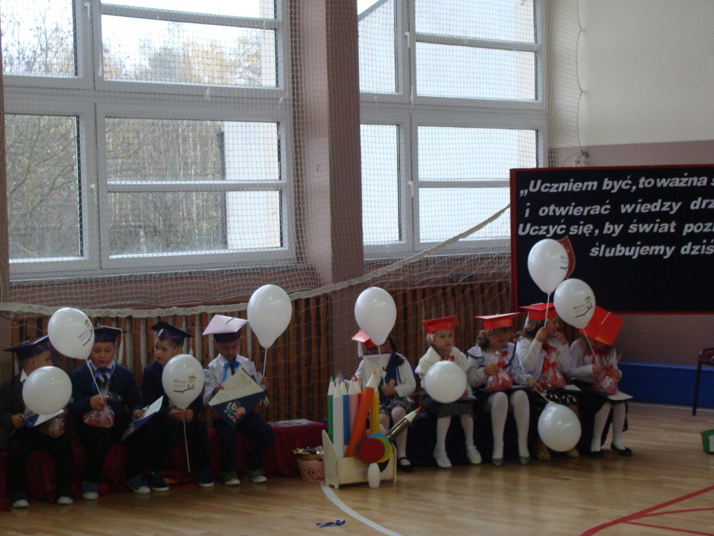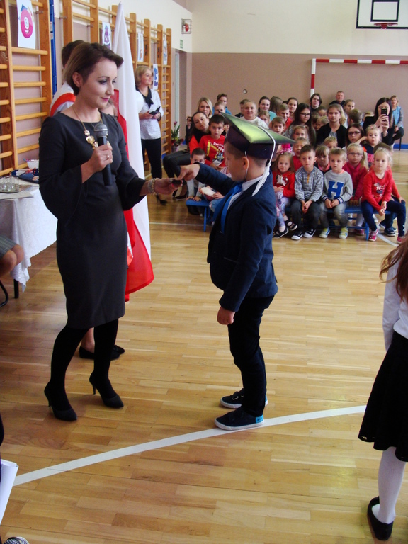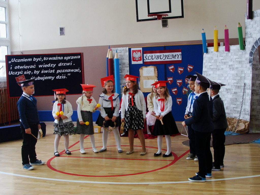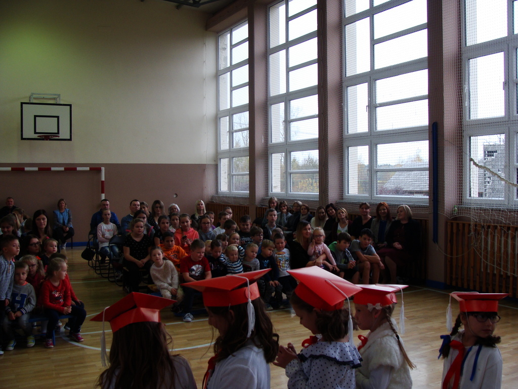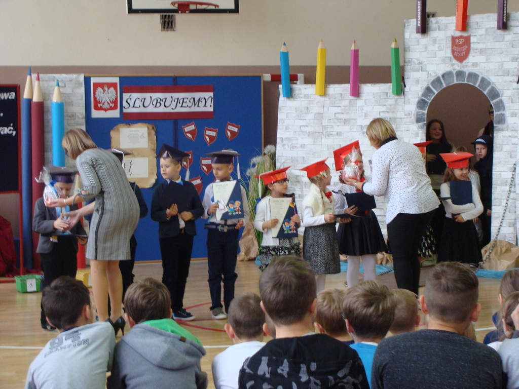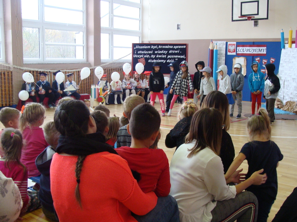 Pierwszaki ucieszyły się też bardzo z prezentu przygotowanych przez uczniów z klas II i III w postaci piosenki i sympatycznych upominków.