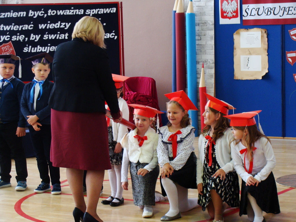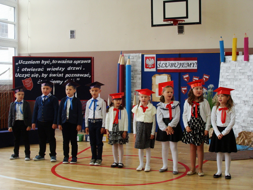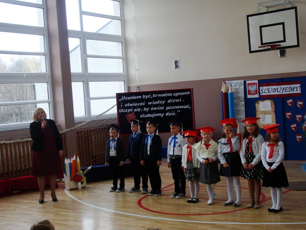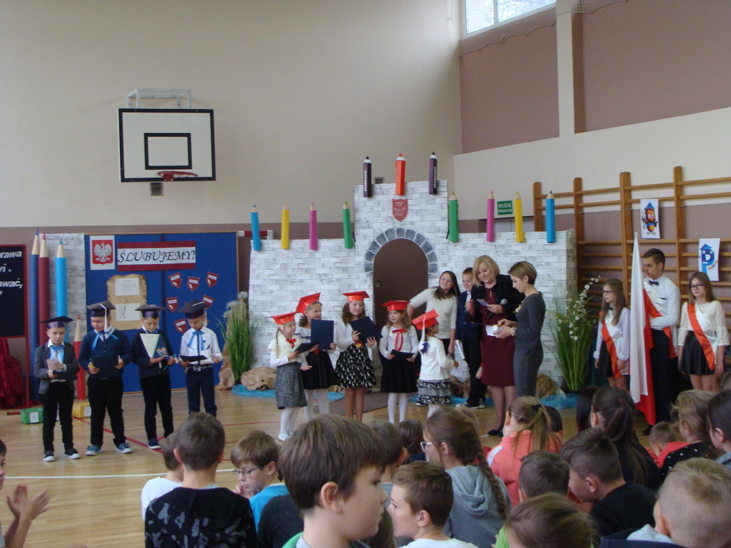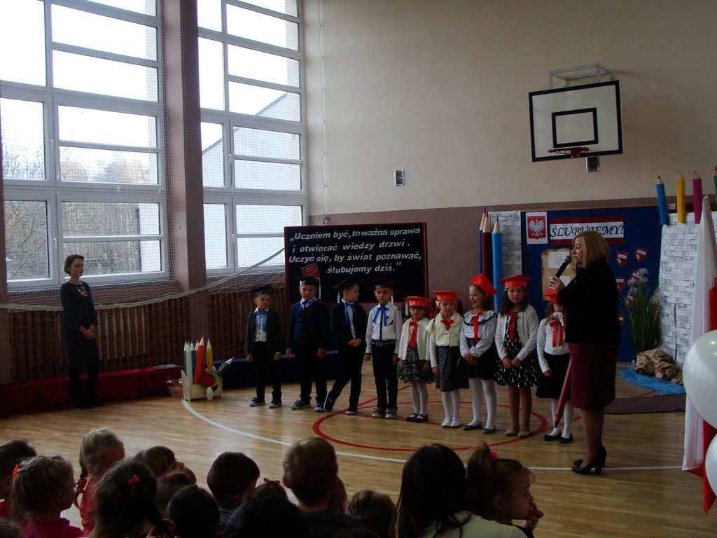 Pierwszaki ucieszyły się też bardzo z prezentu przygotowanych przez uczniów z klas II i III w postaci piosenki i sympatycznych upominków.