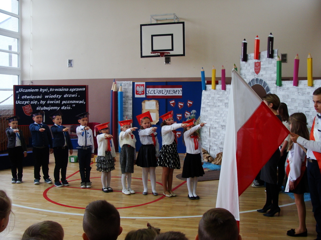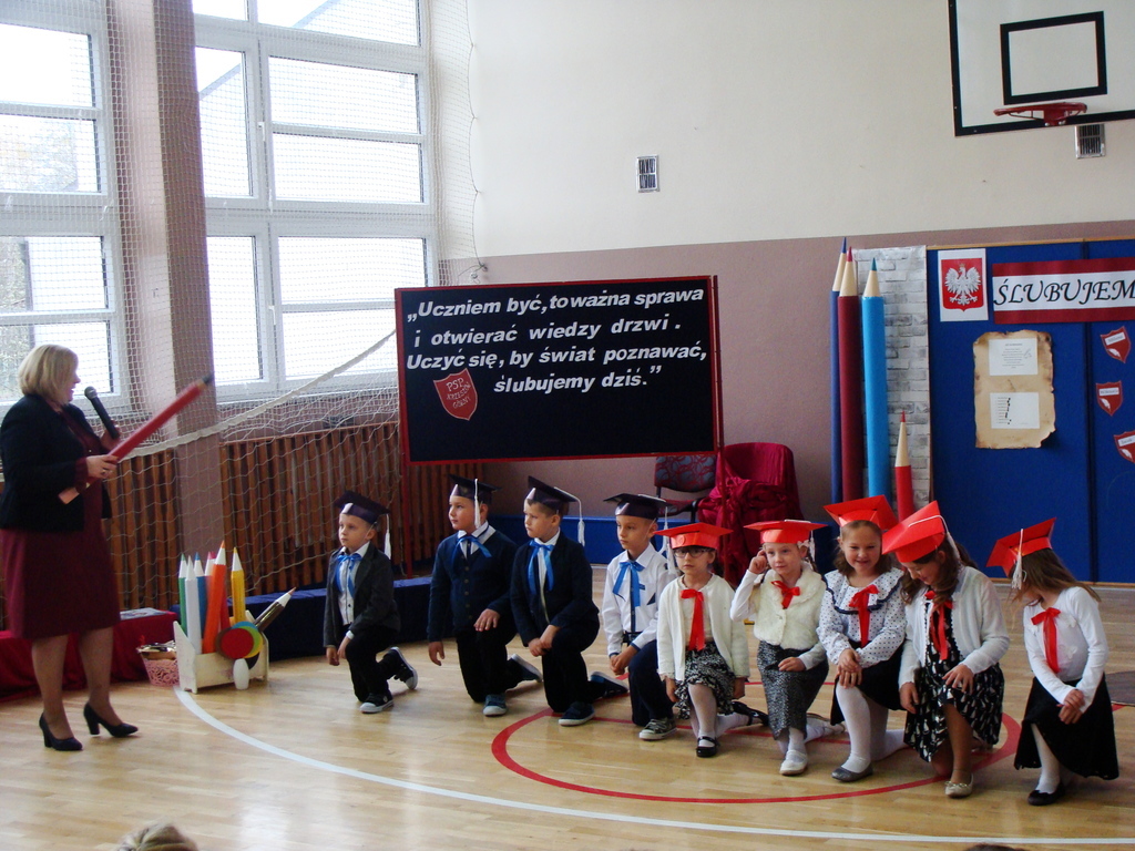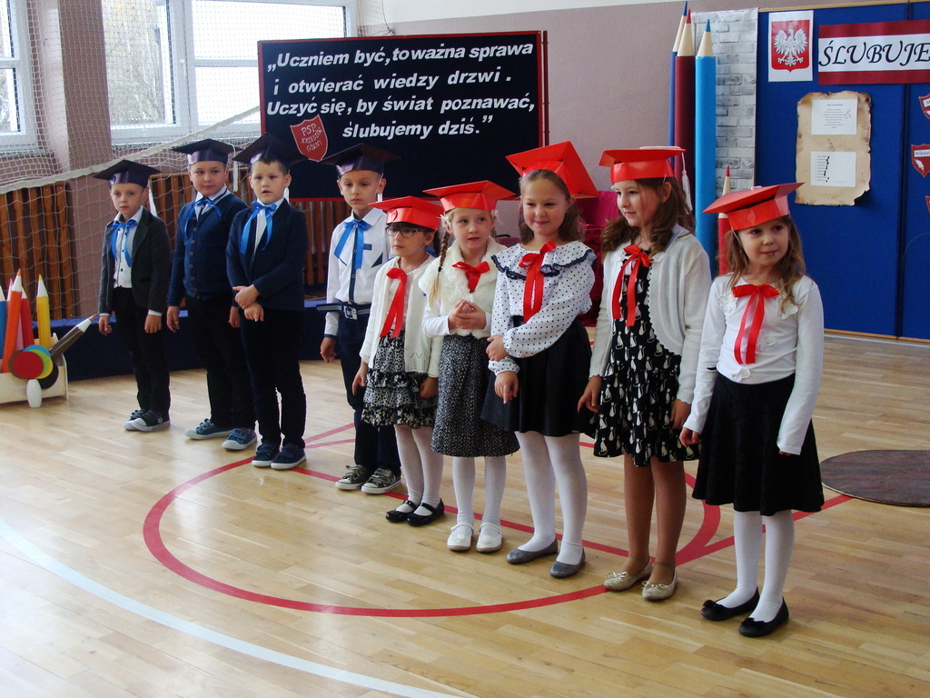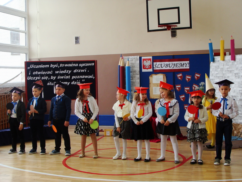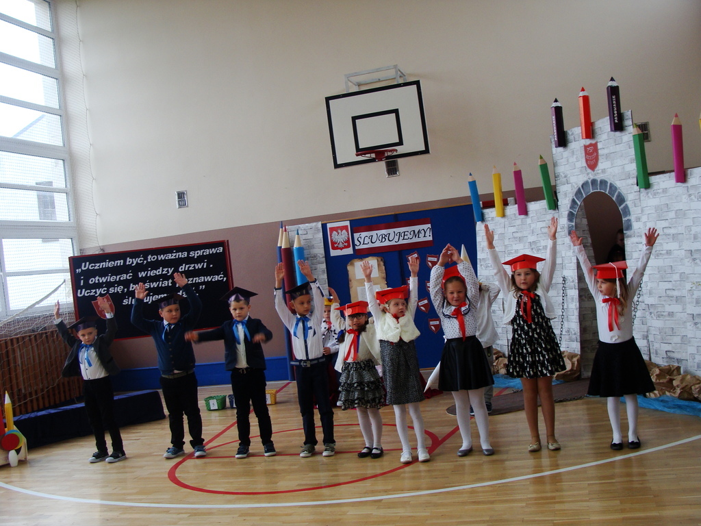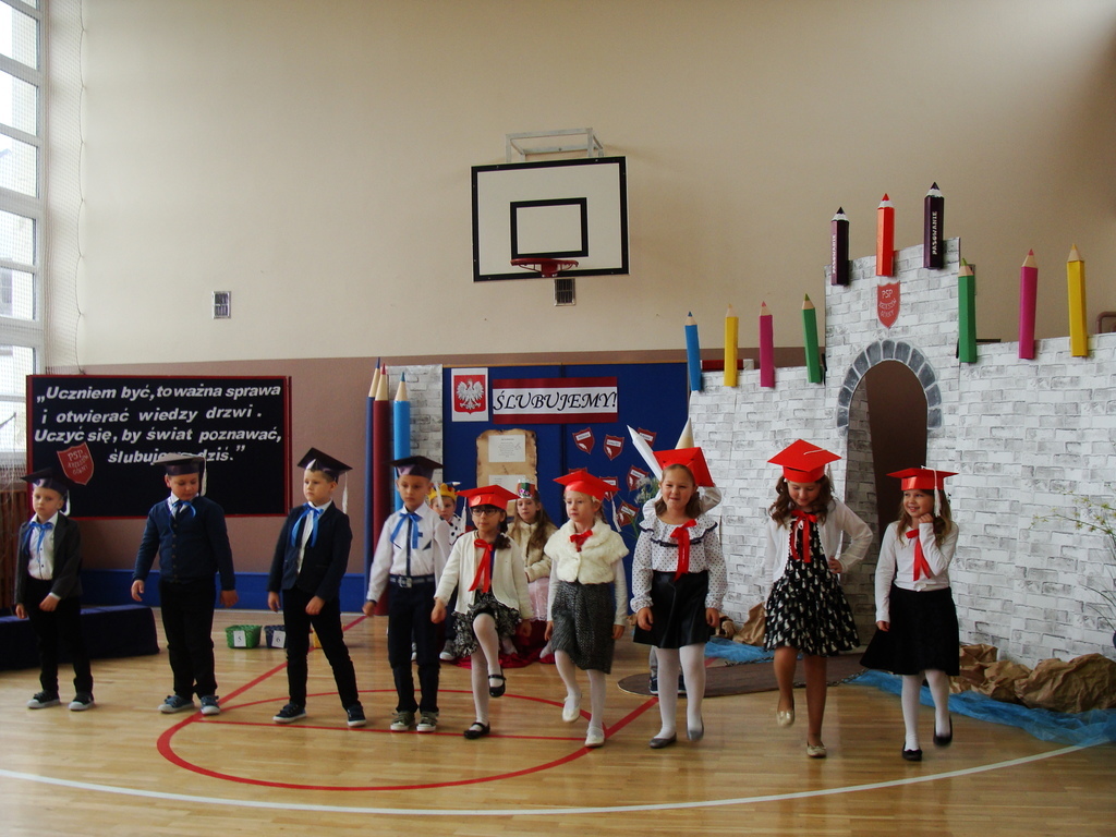 Pierwszaki ucieszyły się też bardzo z prezentu przygotowanych przez uczniów z klas II i III w postaci piosenki i sympatycznych upominków.