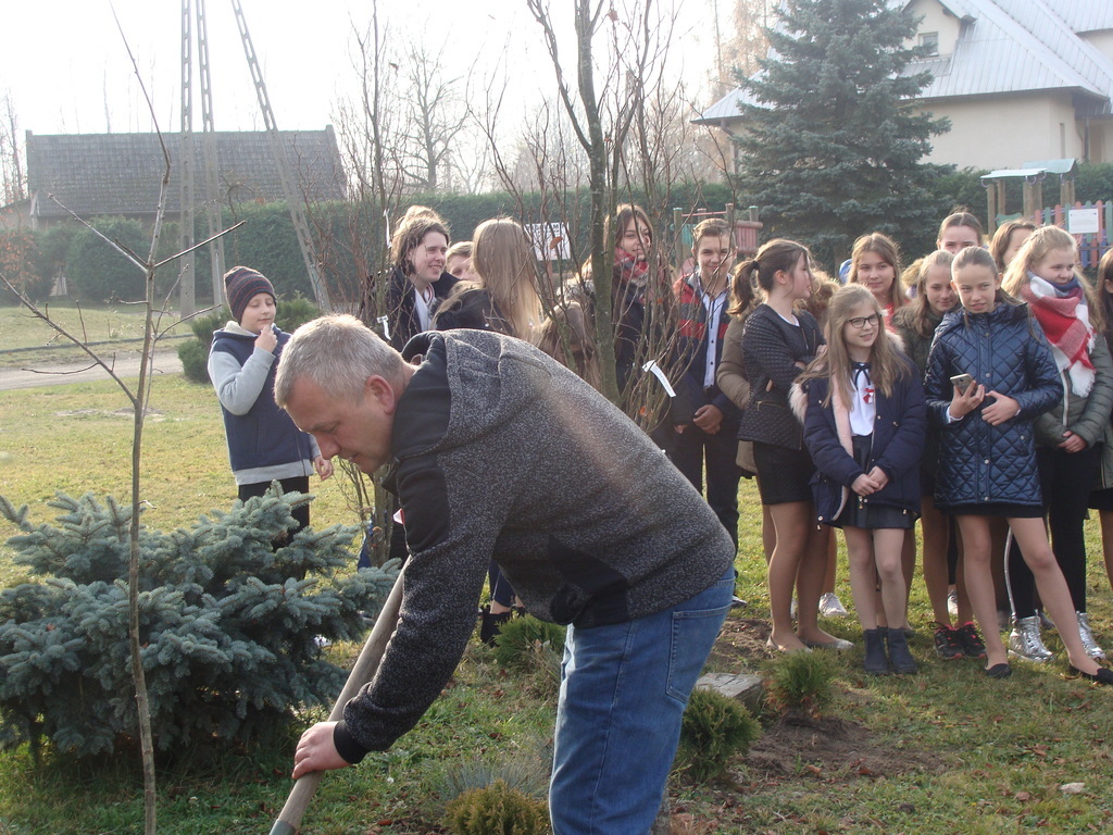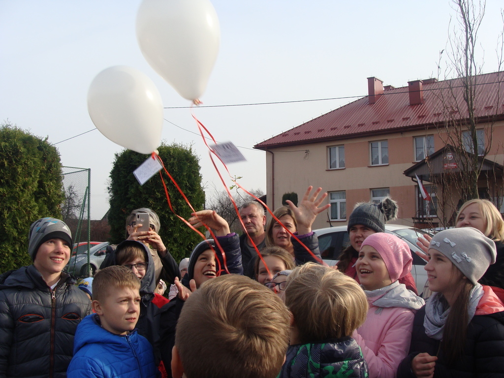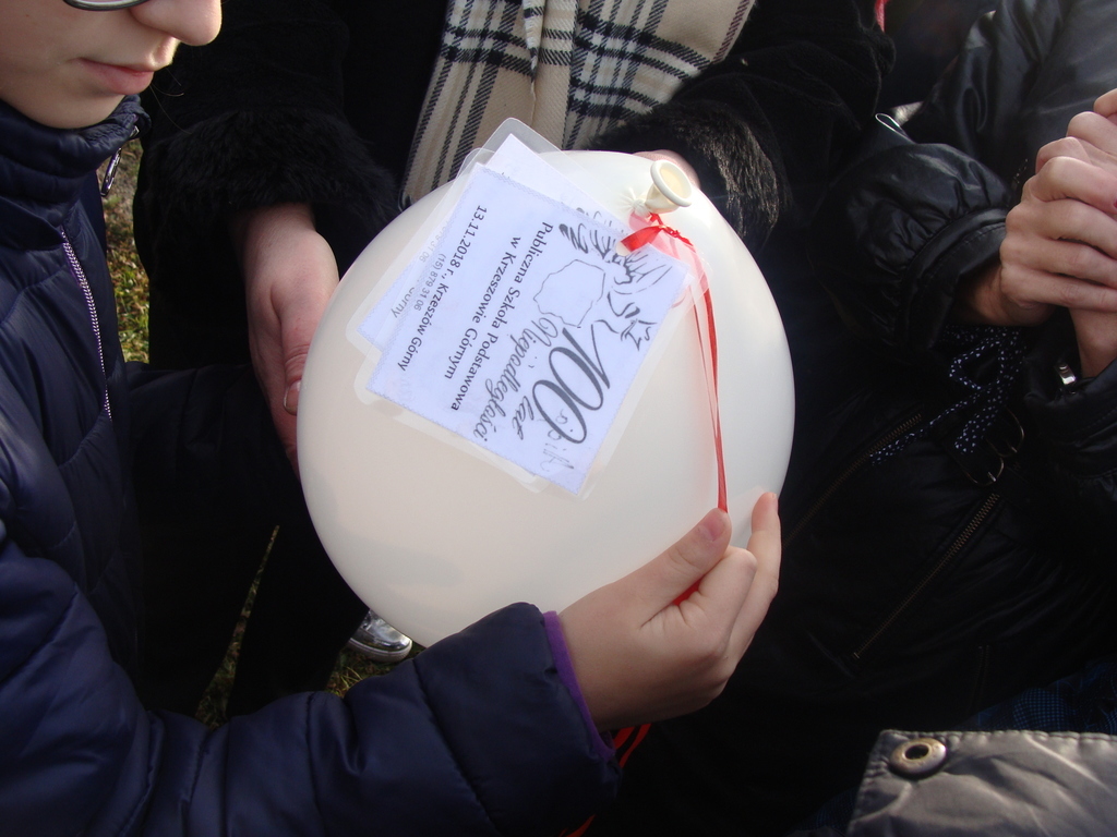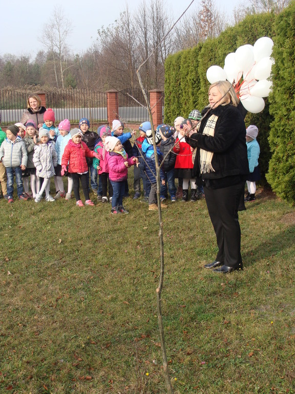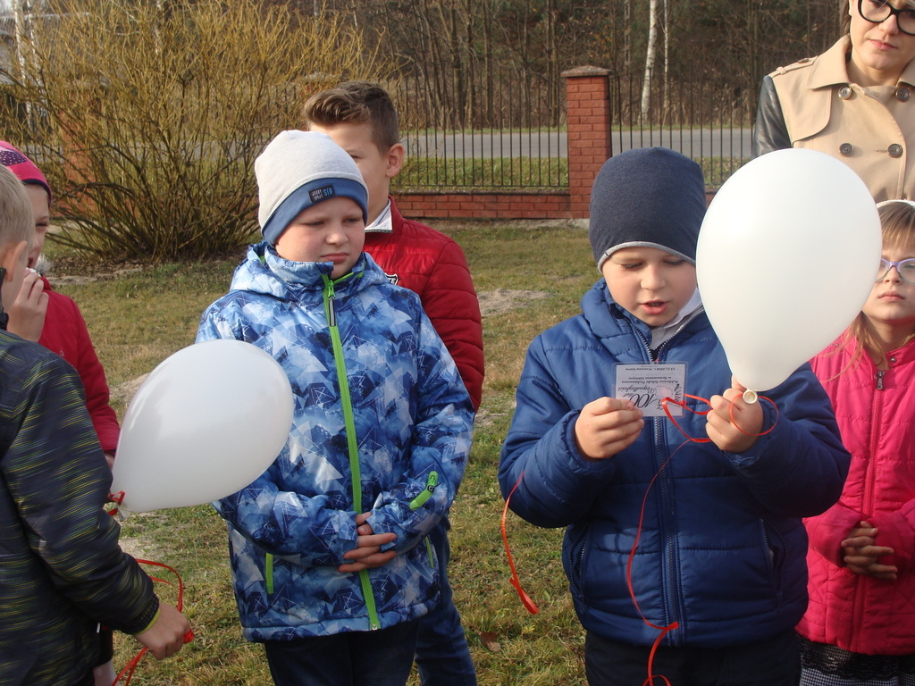Na koniec udaliśmy się na zewnątrz, aby zasadzić dęba, który przez lata będzie przypominał o tym niezwykłym dniu oraz wypuściliśmy biało-czerwone balony z życzeniami dla Polaków i Niepodległej.