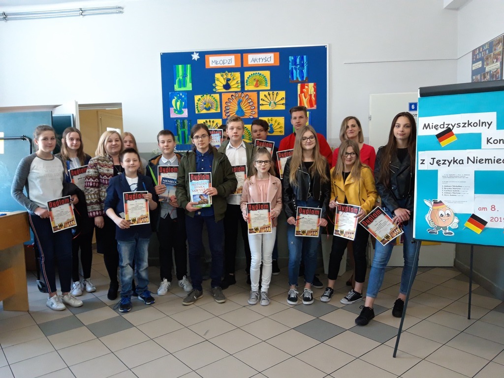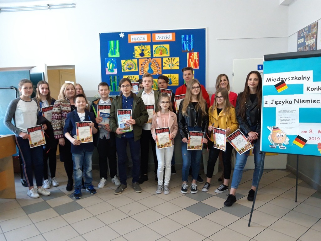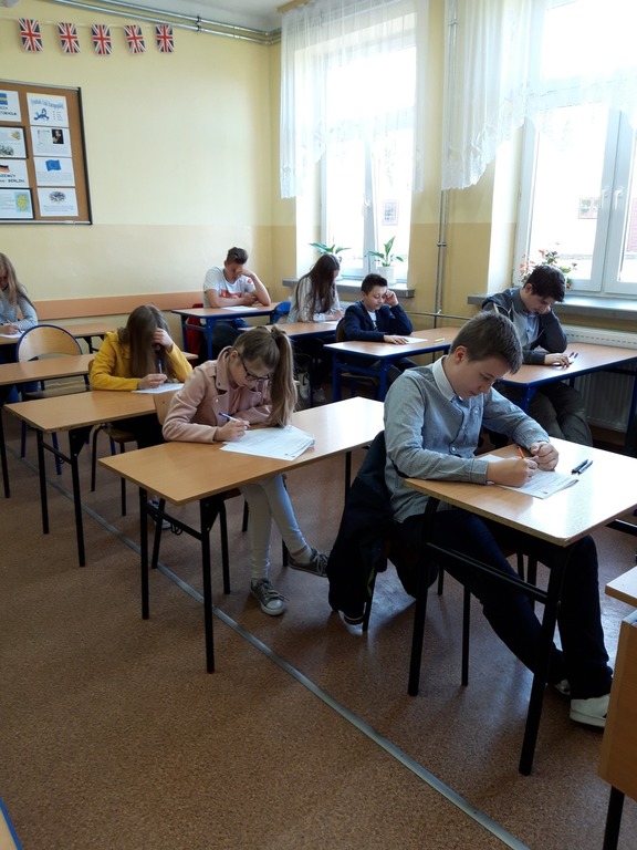 8 maja w naszej szkole odbył się etap finałowy Międzyszkolnego Konkursu z Języka Niemieckiego. Swoją wiedzę mieli okazję zaprezentować uczniowie klas ósmych ze Szkoły Podstawowej w Bystrem, Szkoły Podstawowej w Krzeszowie i oczywiście ósmoklasiści z naszej placówki. Uczniowie w ciągu 60 minut rozwiązywali test ze znajomości języka niemieckiego, który obejmował zagadnienia z zakresu klasy VII i VIII szkoły podstawowej. Zadania konkursowe przygotowała nauczycielka języka niemieckiego p. Magdalena Skotnicka.