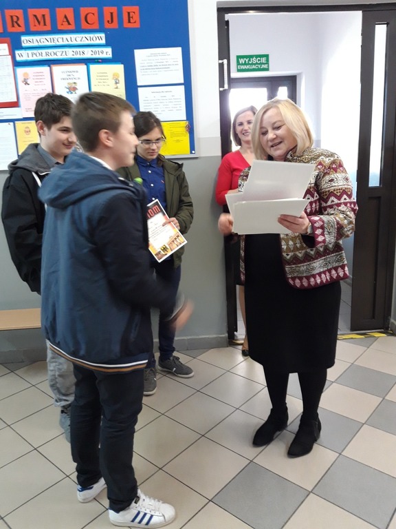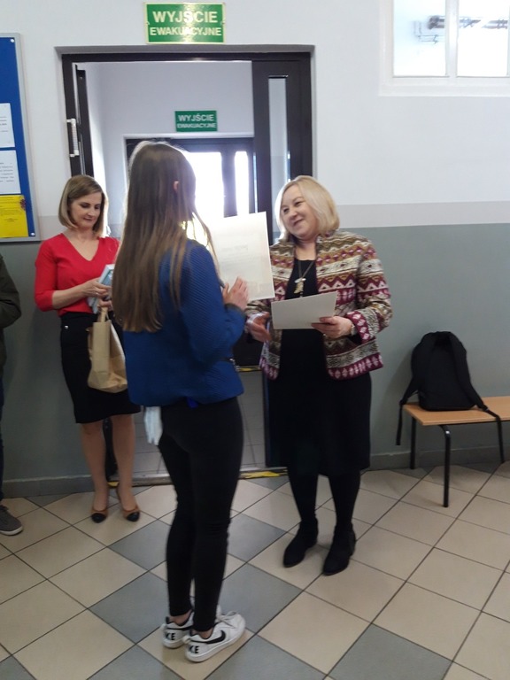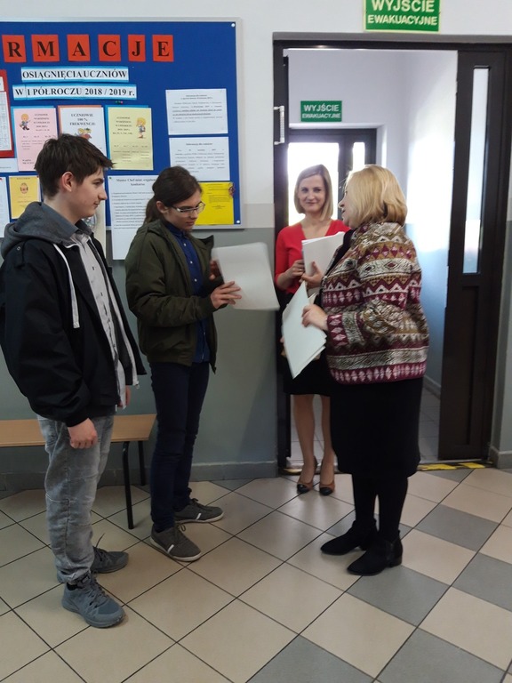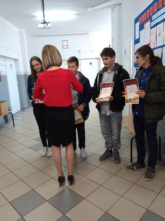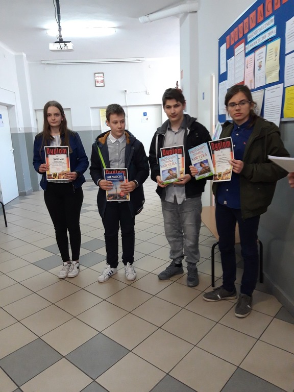 Wszyscy uczestnicy wykazali się dobrą znajomością zarówno słownictwa, jak i skomplikowanych struktur gramatycznych. Najlepszy wynik, a zarazem I miejsce w konkursie zdobyła uczennica SP w Bystrem Jagoda Sałek, II miejsce zajął uczeń SP w Krzeszowie Michał Stodulski, a trzeci wynik osiągnęli dwaj uczniowie: Artur Nizio i Bartłomiej Waliłko, również ze SP w Krzeszowie. Zwycięzcy konkursu otrzymali atrakcyjne nagrody. Gratulujemy serdecznie pionierom, ale także pozostałym uczestnikom zmagań językowych. Ósmoklasiści mieli okazję sprawdzić się w niełątwym konkursie, ale również w miłej atmosferze, przy słodkim poczęstunku, poznać swoich rówieśników, wymienić się doświadczeniami, opowiedzieć o planach na przyszłość. Mamy nadzieję, że spotkania tego typu staną się tradycją.
