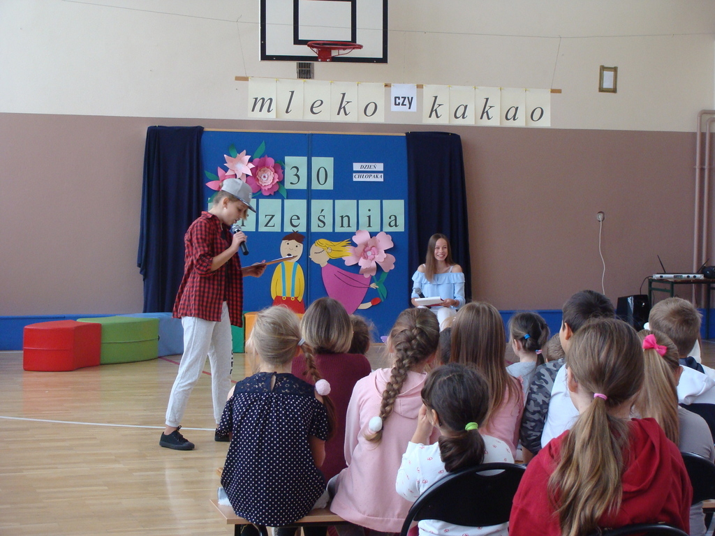 30 października 2019r. w Publicznej Szkole Podstawowej w Krzeszowie Górnym odbyła się uroczysta akademia z okazji Dnia Chłopaka zorganizowana przez Samorząd Szkolny, pod opieką pani Anny Muzyki – Kochowskiej i pani Michaliny Niedbały. W krótkiej inscenizacji, charakteryzowanej na program śniadaniowy, pt. „Mleko czy kakao” wzięły udział uczennice z klas V-VIII, prezentując kilka krótkich scenek z życia chłopaków, co wszystkim bardzo się spodobało i wprawiło w dobry humor. Na zakończenie uroczystości zostały złożone życzenia wszystkim panom w naszej szkole i każdy z chłopców otrzymał drobny upominek. Ponadto w ramach przeprowadzonego konkursu na szkolnego mistera w kategorii klas 0 –III zwycięzcą został Jacek Jonik, z kolei w kategorii klas IV – VIII zaszczytne miejsce przypadło Oskarowi Szczurowi.