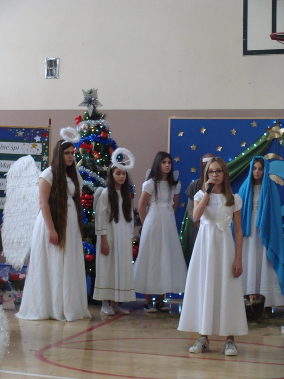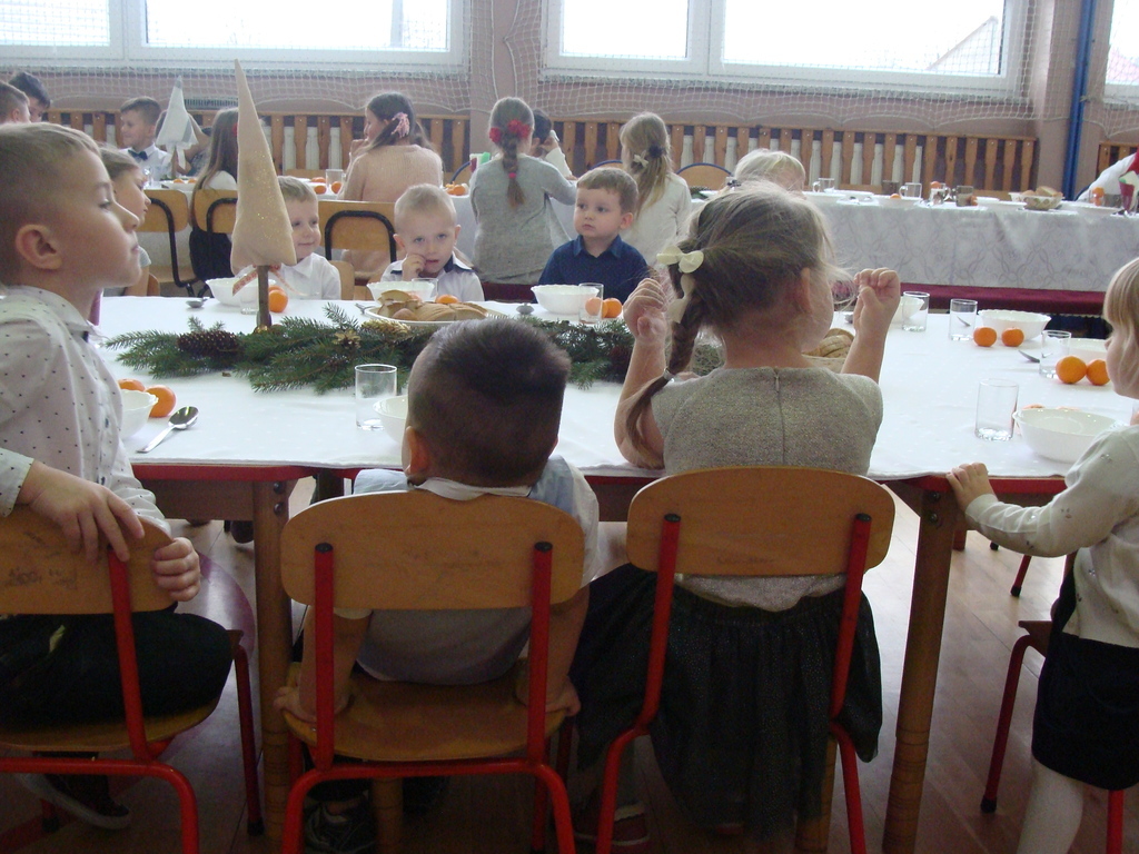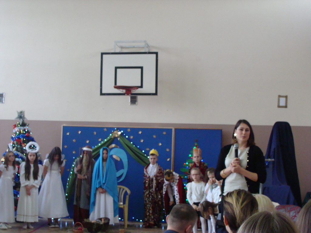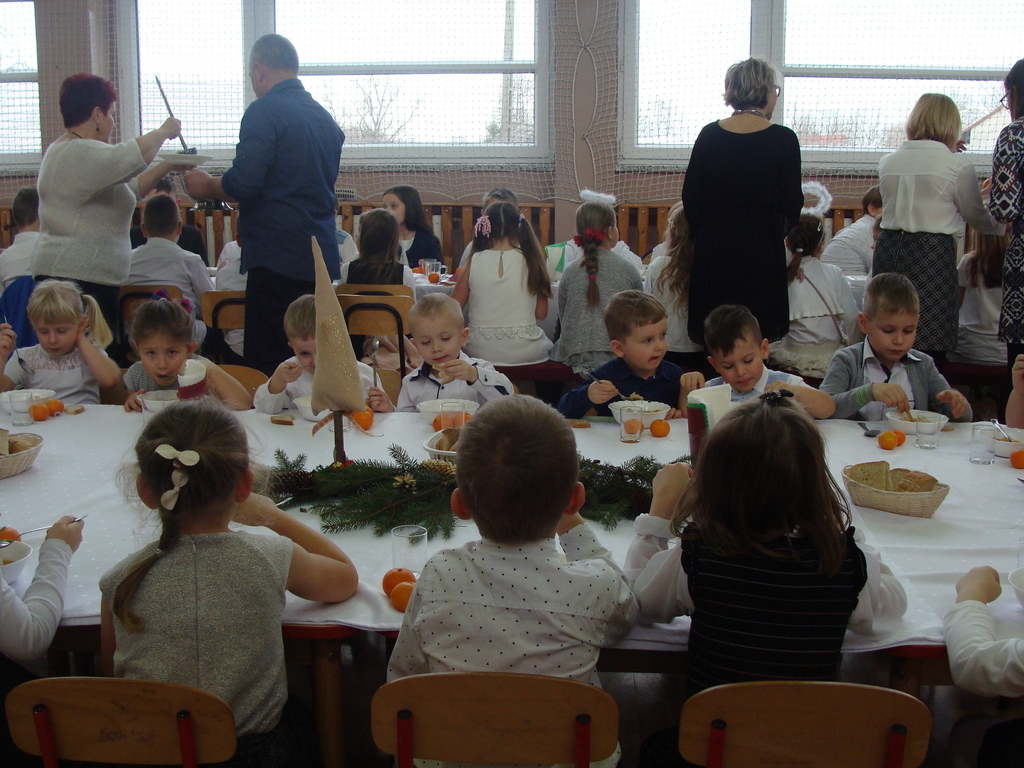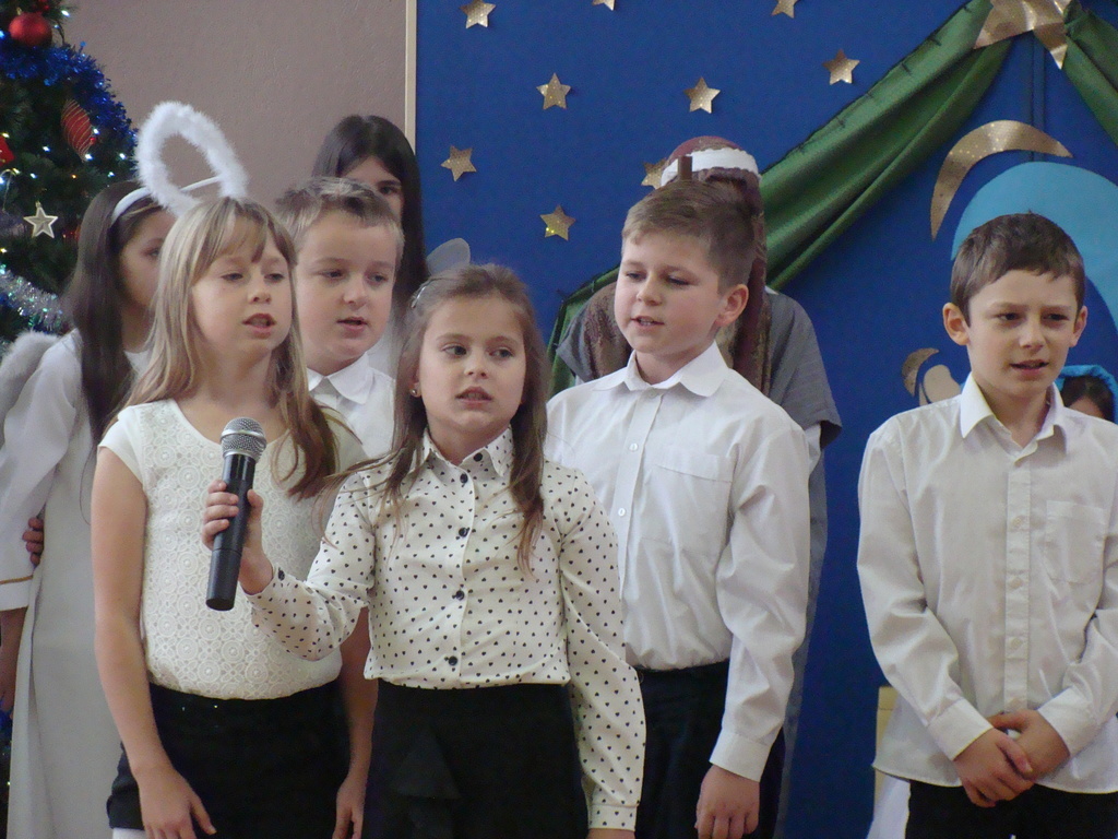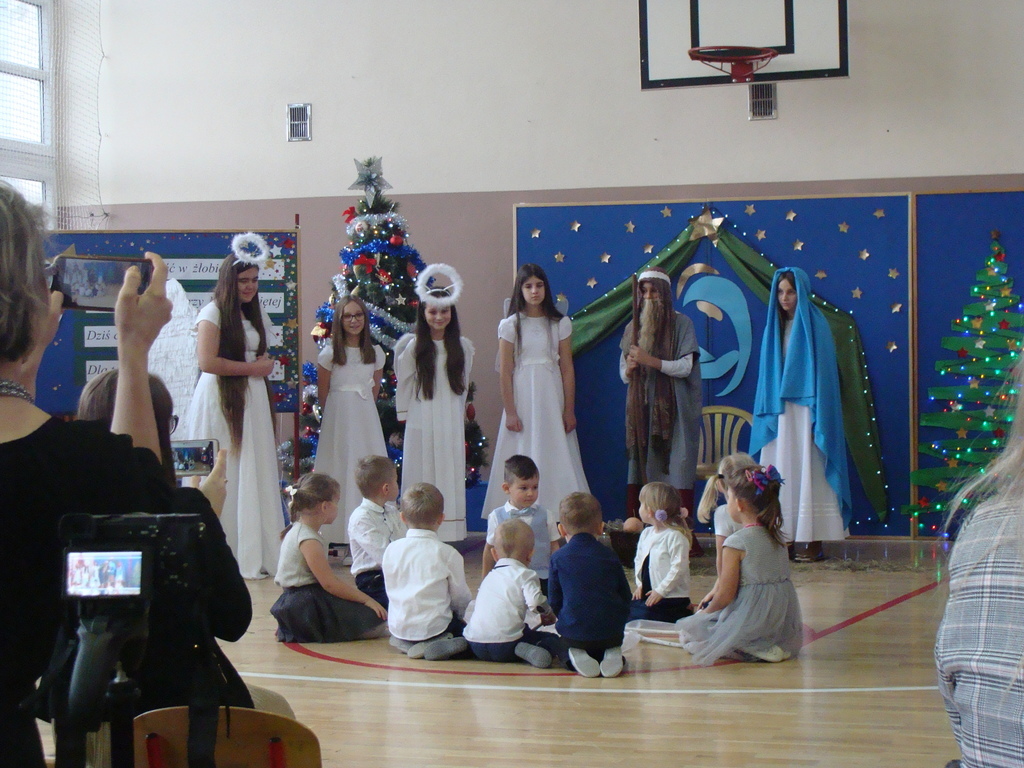 Oprawą uroczystości były występy dzieci z różnych klas oraz wspólne kolędowanie zakończone dzieleniem się opłatkiem i wigilią.