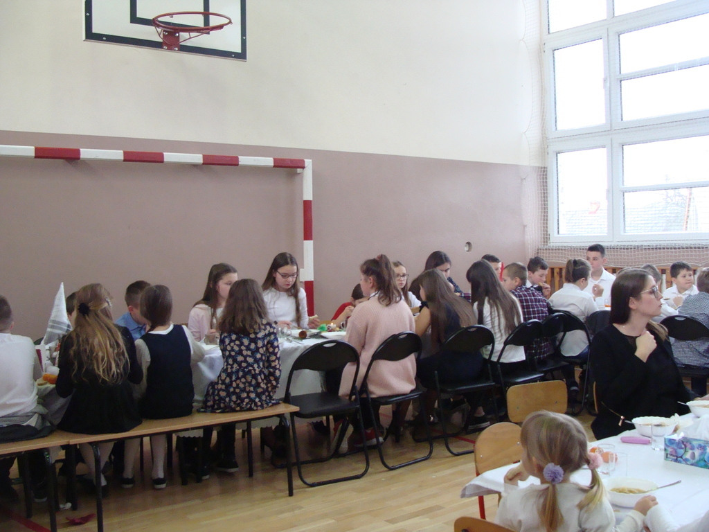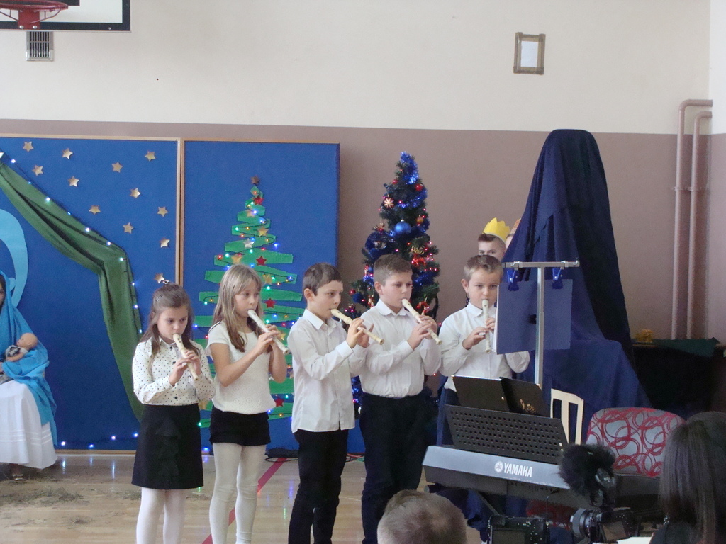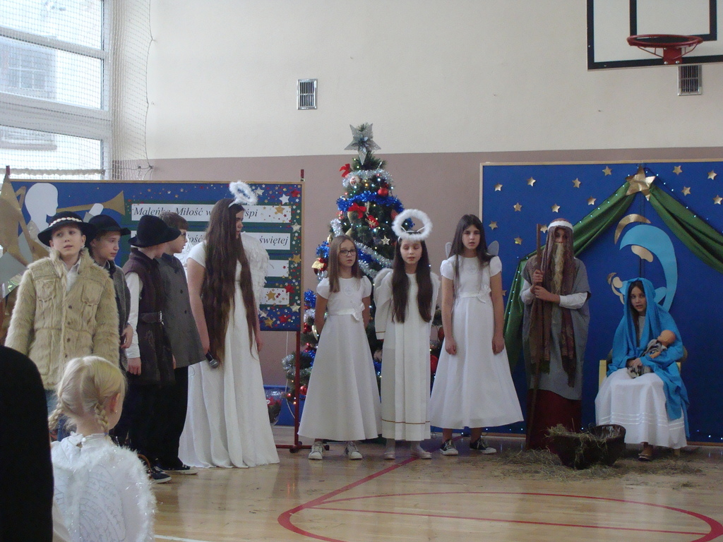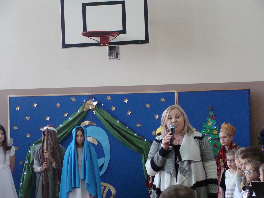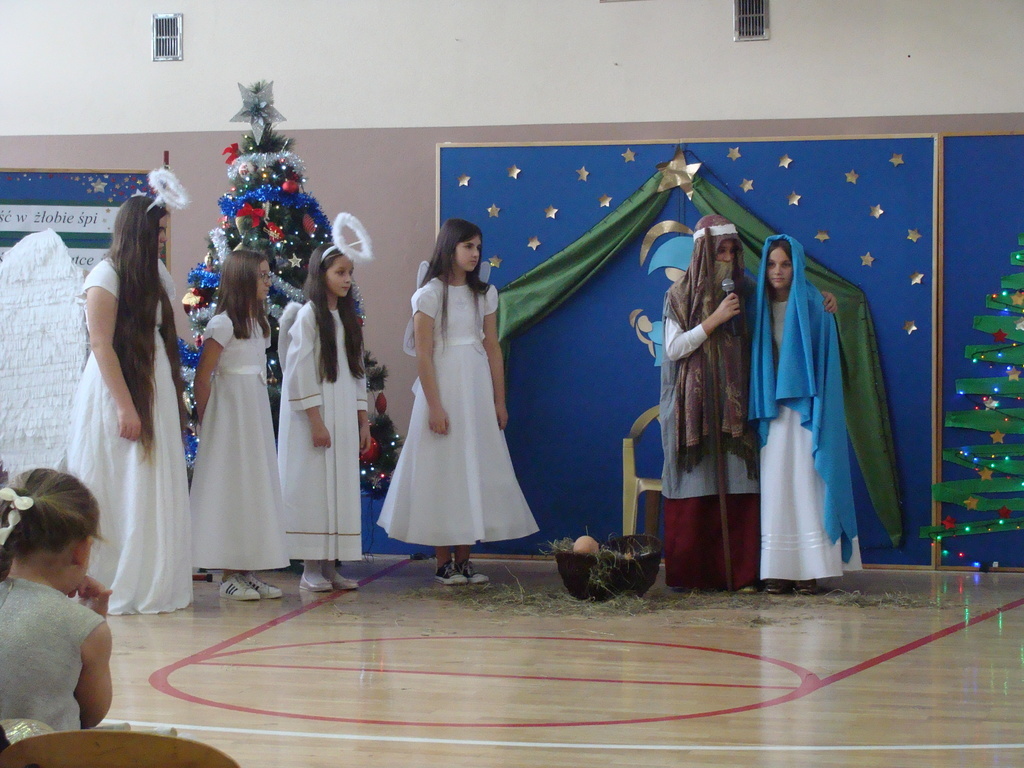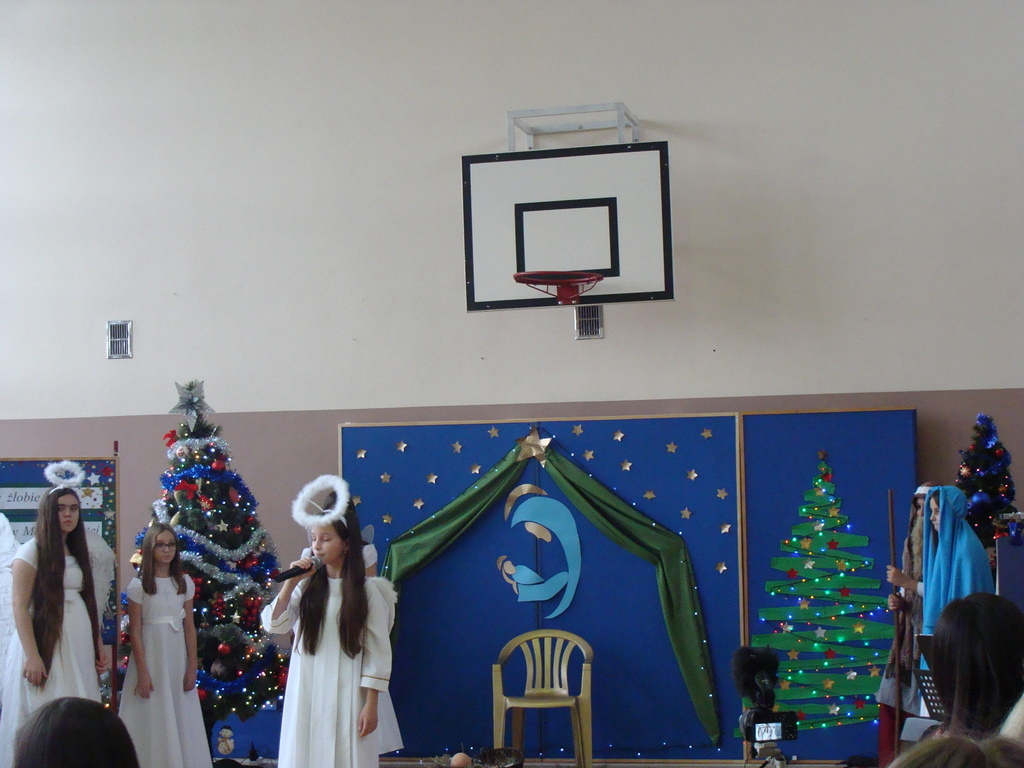 Oprawą uroczystości były występy dzieci z różnych klas oraz wspólne kolędowanie zakończone dzieleniem się opłatkiem i wigilią.