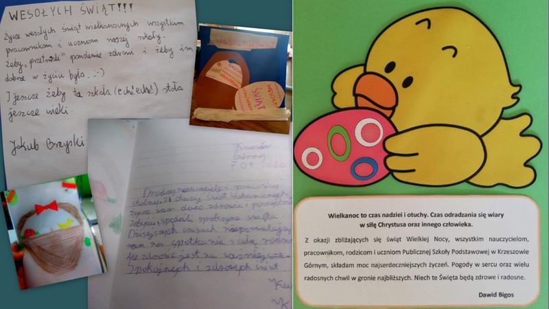 Kartki z życzeniami wielkanocnymi od klasy VI