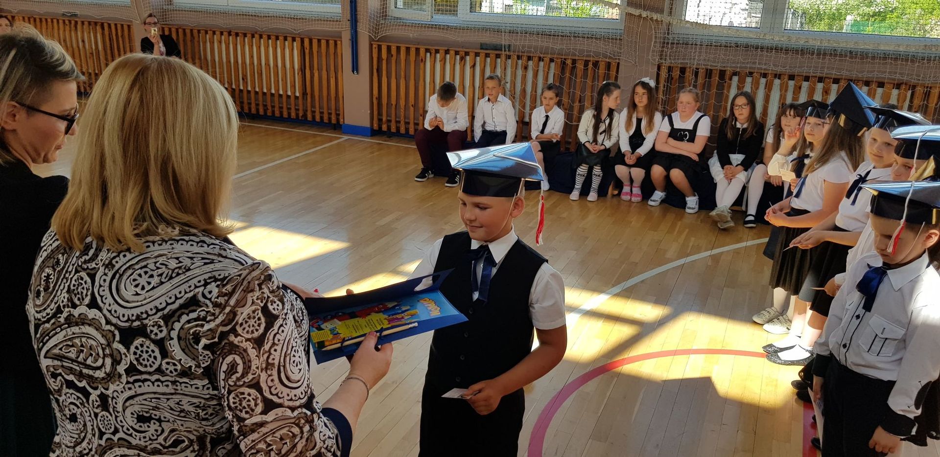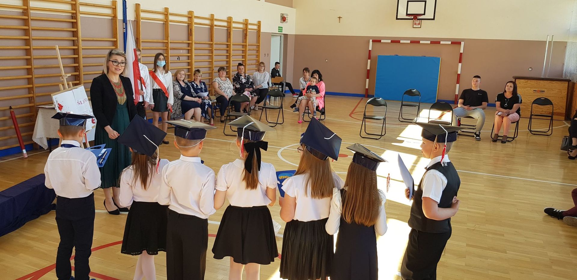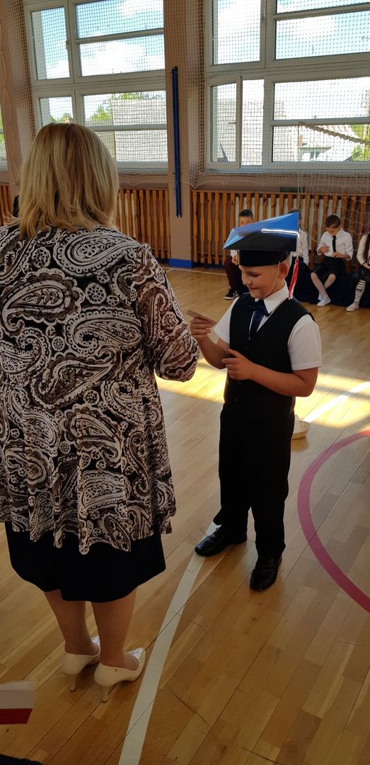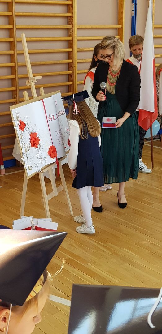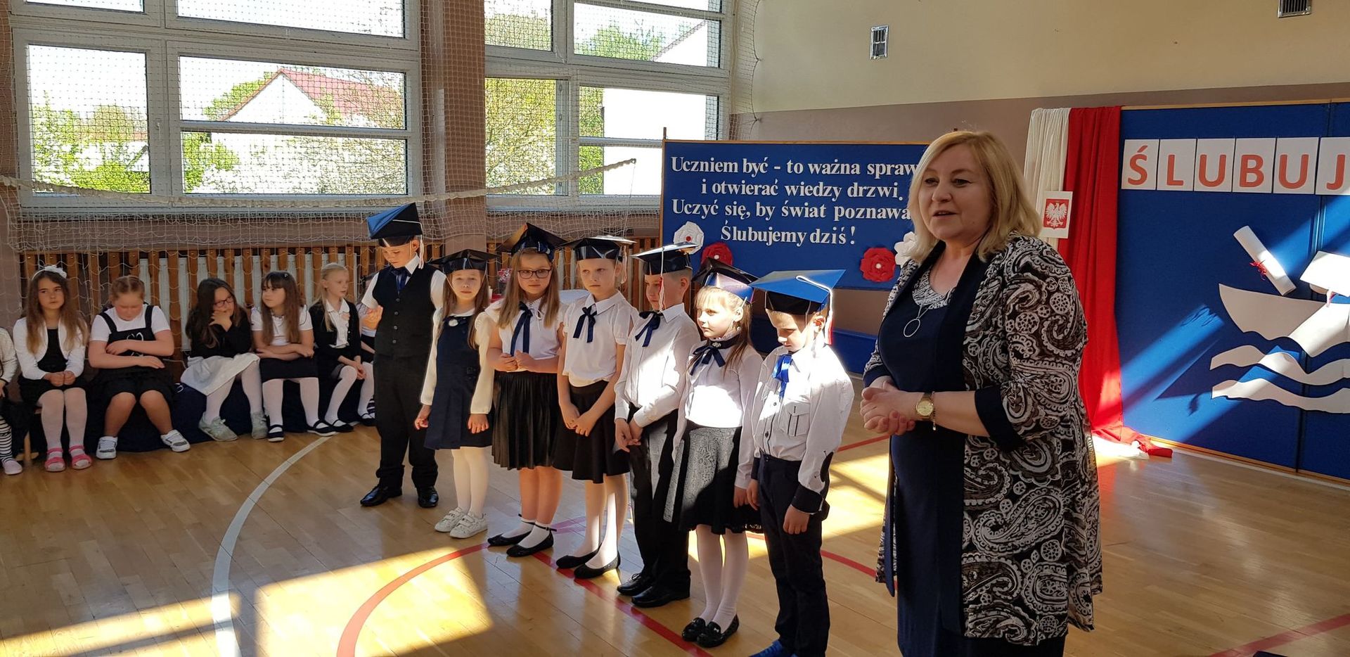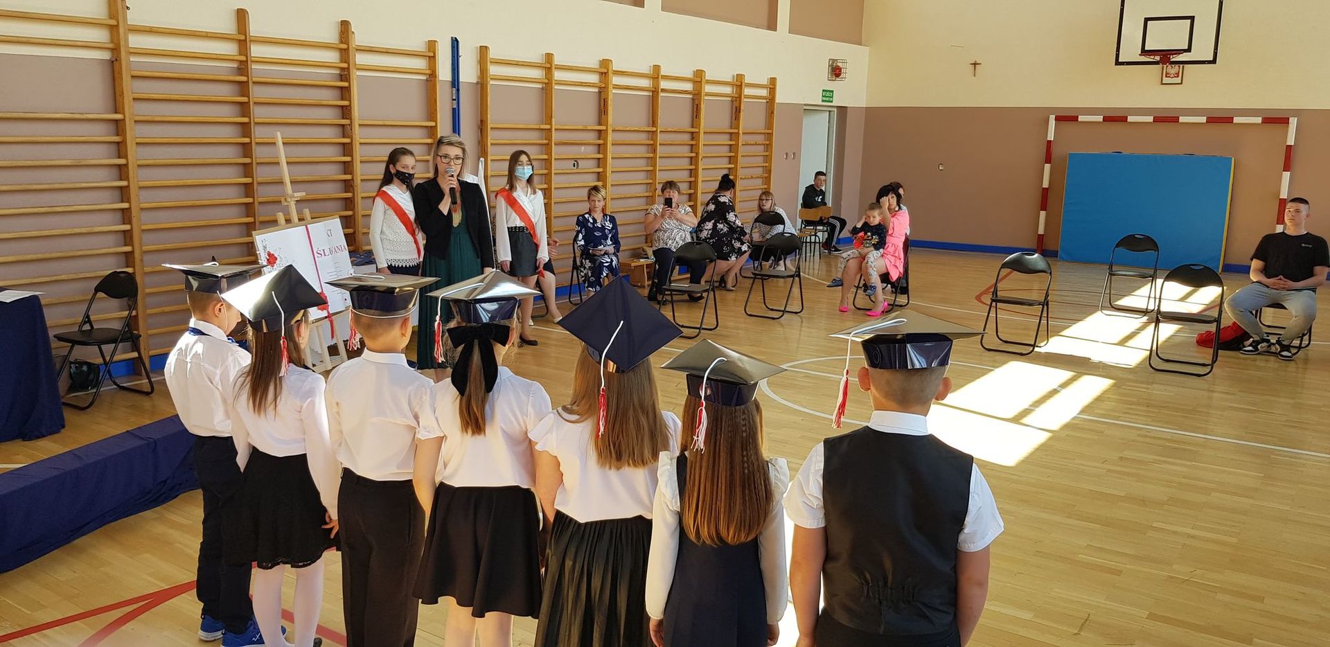 Jak mówi słynne powiedzenie: „Co ma wisieć, nie utonie”, tak też i przyszedł odpowiedni czas, aby uczniowie klasy pierwszej zostali pasowani na ucznia. Otóż, 17 maja 2021r. pierwszoklasiści przystąpili do uroczystego ślubowania. Zanim złożyli przyrzeczenia, w których mówili o dołożeniu wszelkich starań, aby godnie reprezentować swoją klasę i szkołę, pokazali swoją wiedzę i umiejętności. W sprawdzeniu ich wiedzy pomagali drugoklasiści, którzy dokładnie wiedzieli, co przeegzaminować. Następnie pani dyrektor Edyta Igras dokonała pasowania każdego pierwszoklasisty na prawdziwego ucznia.