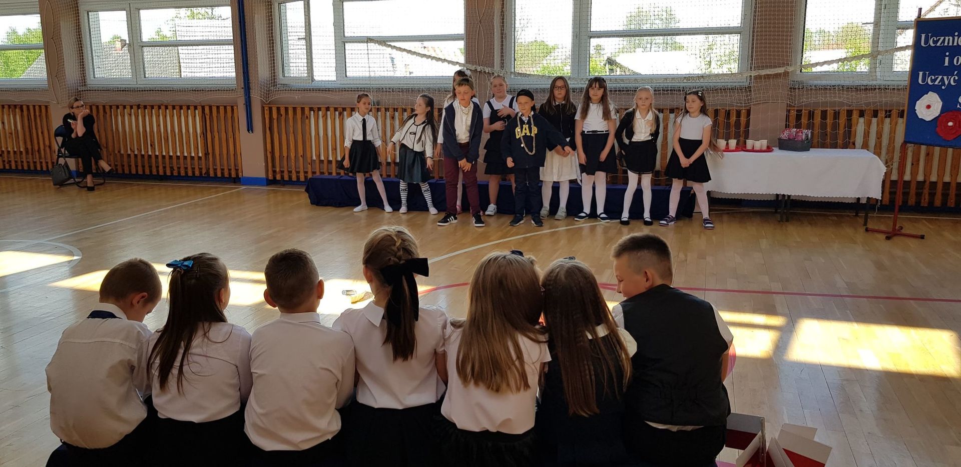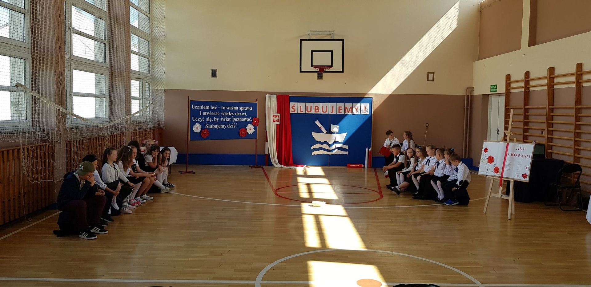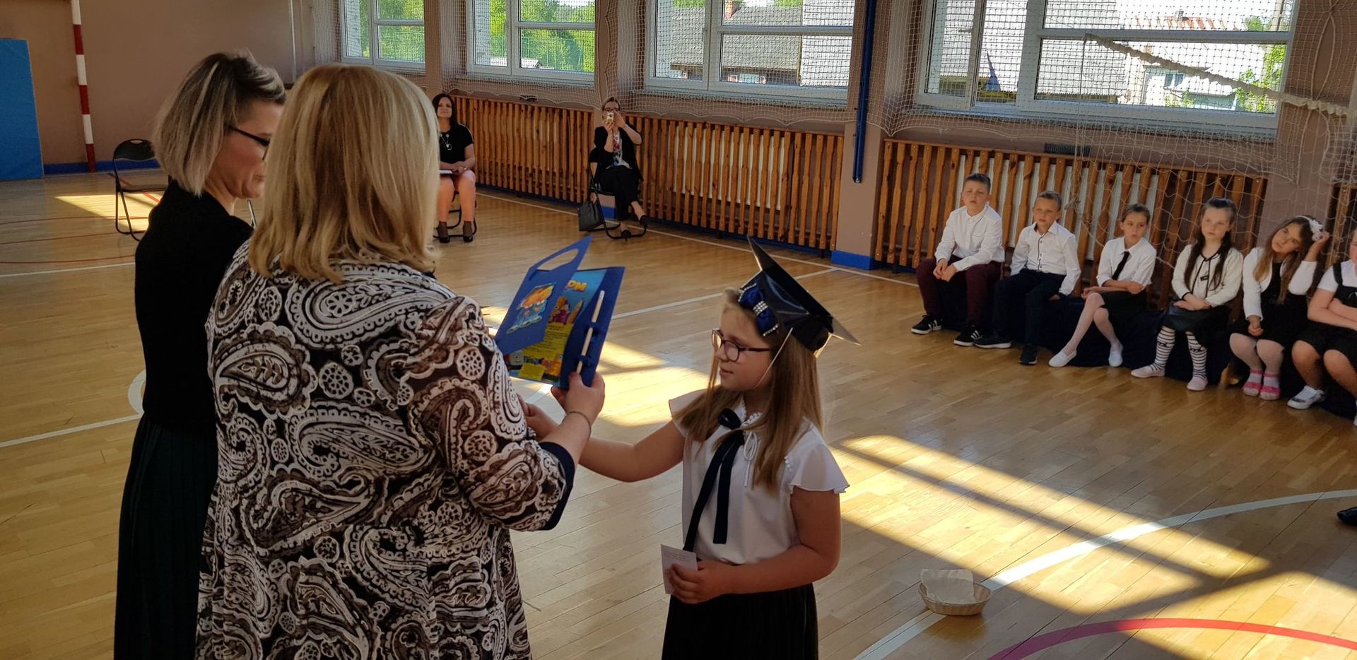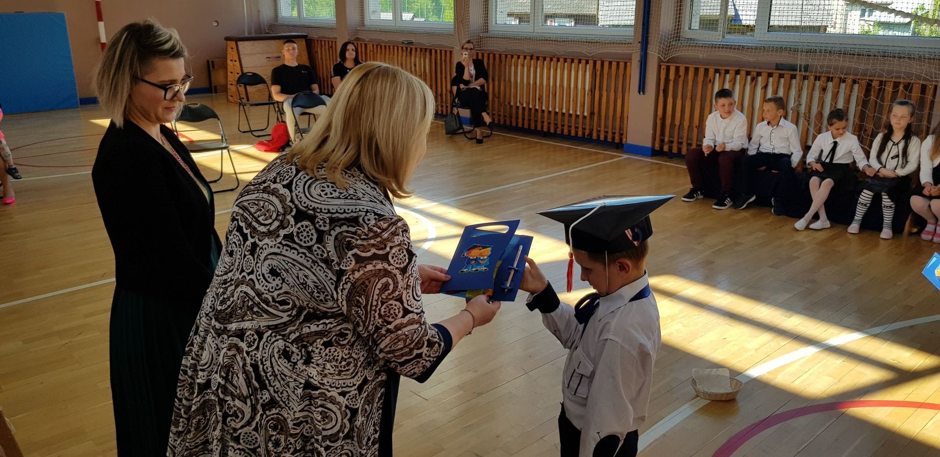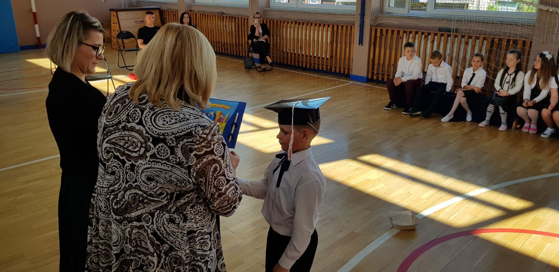 Jak mówi słynne powiedzenie: „Co ma wisieć, nie utonie”, tak też i przyszedł odpowiedni czas, aby uczniowie klasy pierwszej zostali pasowani na ucznia. Otóż, 17 maja 2021r. pierwszoklasiści przystąpili do uroczystego ślubowania. Zanim złożyli przyrzeczenia, w których mówili o dołożeniu wszelkich starań, aby godnie reprezentować swoją klasę i szkołę, pokazali swoją wiedzę i umiejętności. W sprawdzeniu ich wiedzy pomagali drugoklasiści, którzy dokładnie wiedzieli, co przeegzaminować. Następnie pani dyrektor Edyta Igras dokonała pasowania każdego pierwszoklasisty na prawdziwego ucznia.
