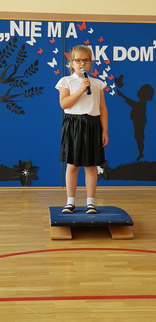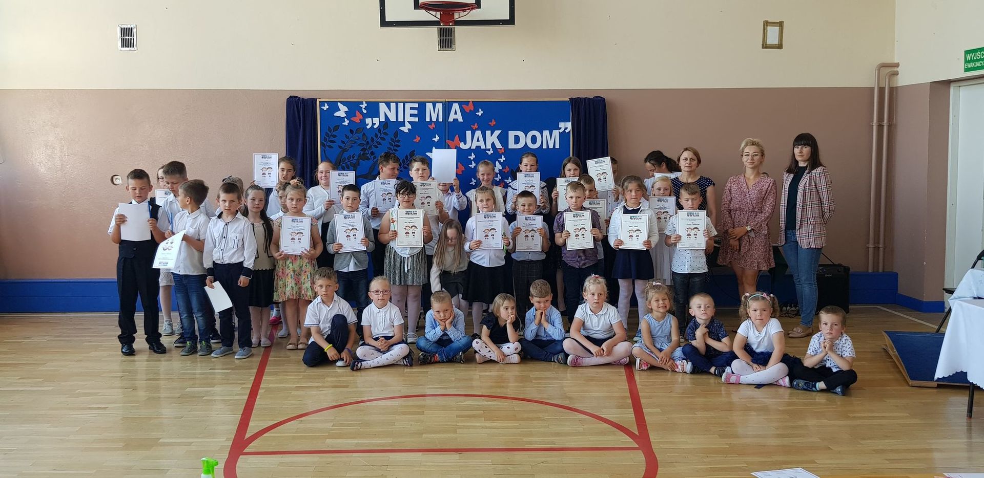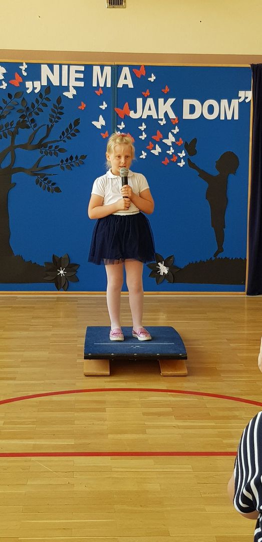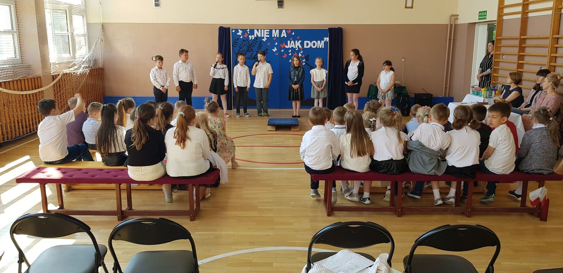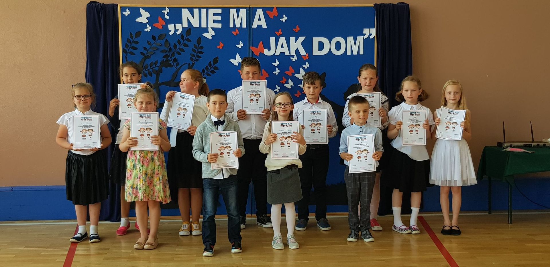 8 czerwca uczniowie klas I-III i wychowankowie przedszkola wzięli udział w szkolnym konkursie recytatorskim, pt. „Nie ma jak dom”. Recytowane wiersze tematycznie związane były z naszą ojczyzną, podkreślały jej wyjątkowy, bliski sercom wszystkich Polaków charakter. Jako pierwsi podczas recytacji zaprezentowali się wychowankowie przedszkola, którzy zachwycili swoimi występami publiczność. Kolejno na scenie pojawili się przedstawiciele zerówki oraz klas I - III. Ich recytacje oceniało jury, w skład którego weszły panie: Joanna Kasprzyk, Mariola Zielonka i Gabriela Szaczkowska. Przyznało ono następujące miejsca w poszczególnych oddziałach: