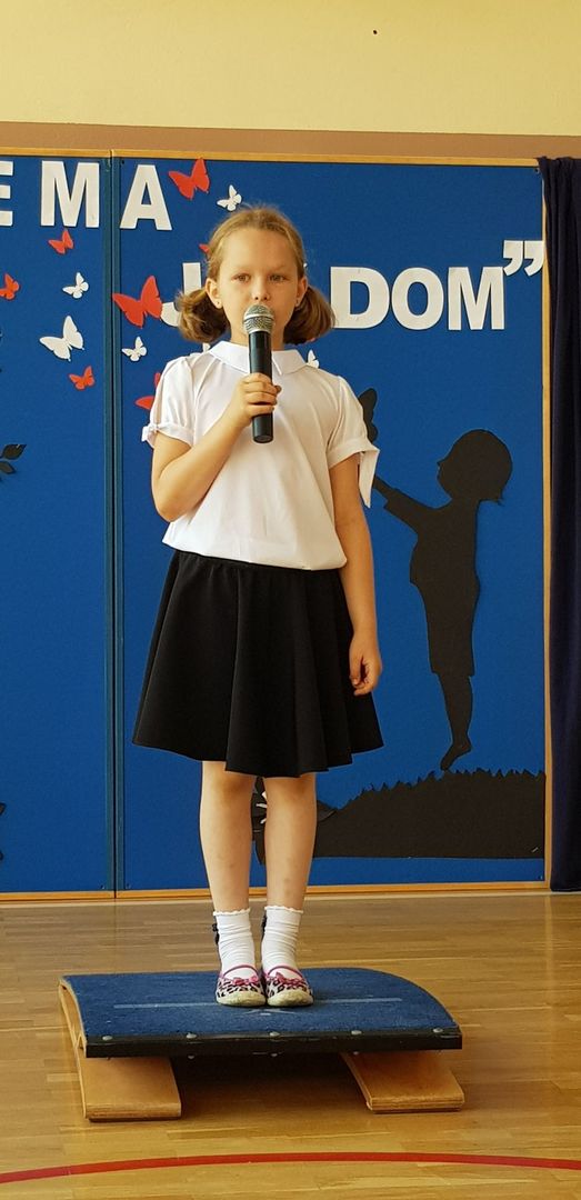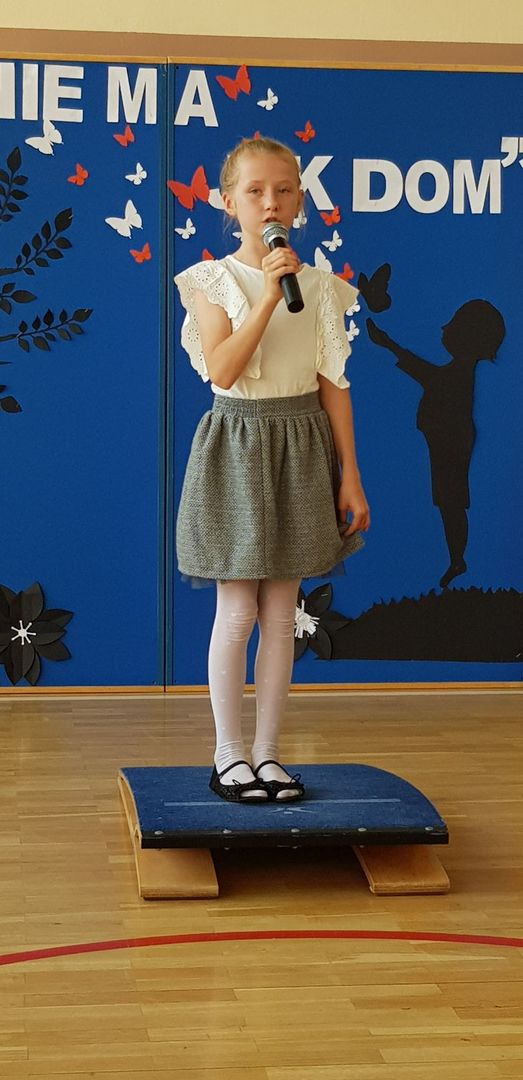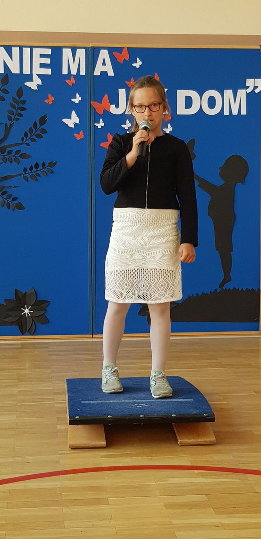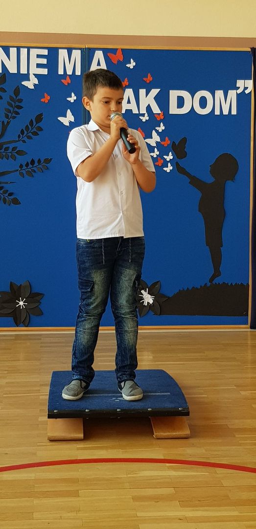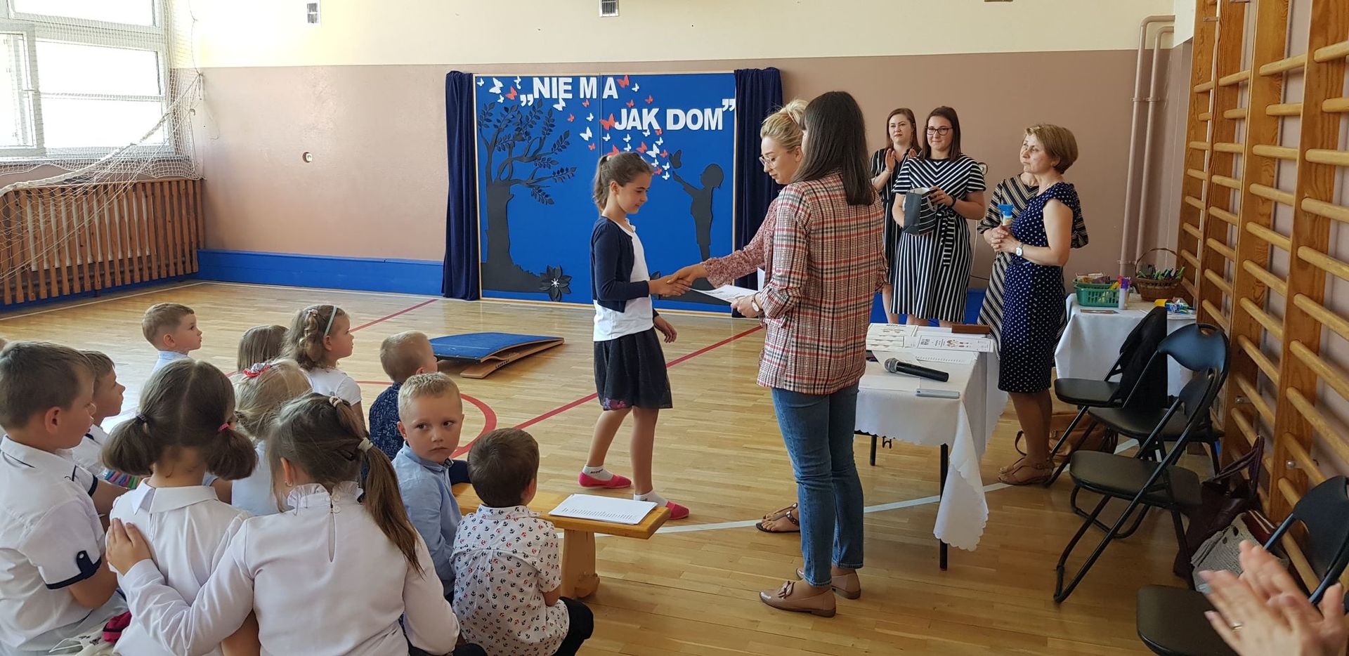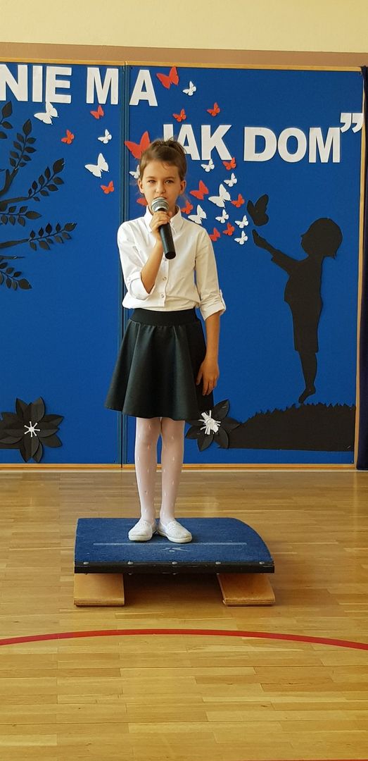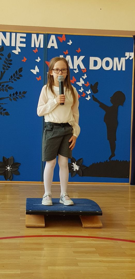 8 czerwca uczniowie klas I-III i wychowankowie przedszkola wzięli udział w szkolnym konkursie recytatorskim, pt. „Nie ma jak dom”. Recytowane wiersze tematycznie związane były z naszą ojczyzną, podkreślały jej wyjątkowy, bliski sercom wszystkich Polaków charakter. Jako pierwsi podczas recytacji zaprezentowali się wychowankowie przedszkola, którzy zachwycili swoimi występami publiczność. Kolejno na scenie pojawili się przedstawiciele zerówki oraz klas I - III. Ich recytacje oceniało jury, w skład którego weszły panie: Joanna Kasprzyk, Mariola Zielonka i Gabriela Szaczkowska. Przyznało ono następujące miejsca w poszczególnych oddziałach: