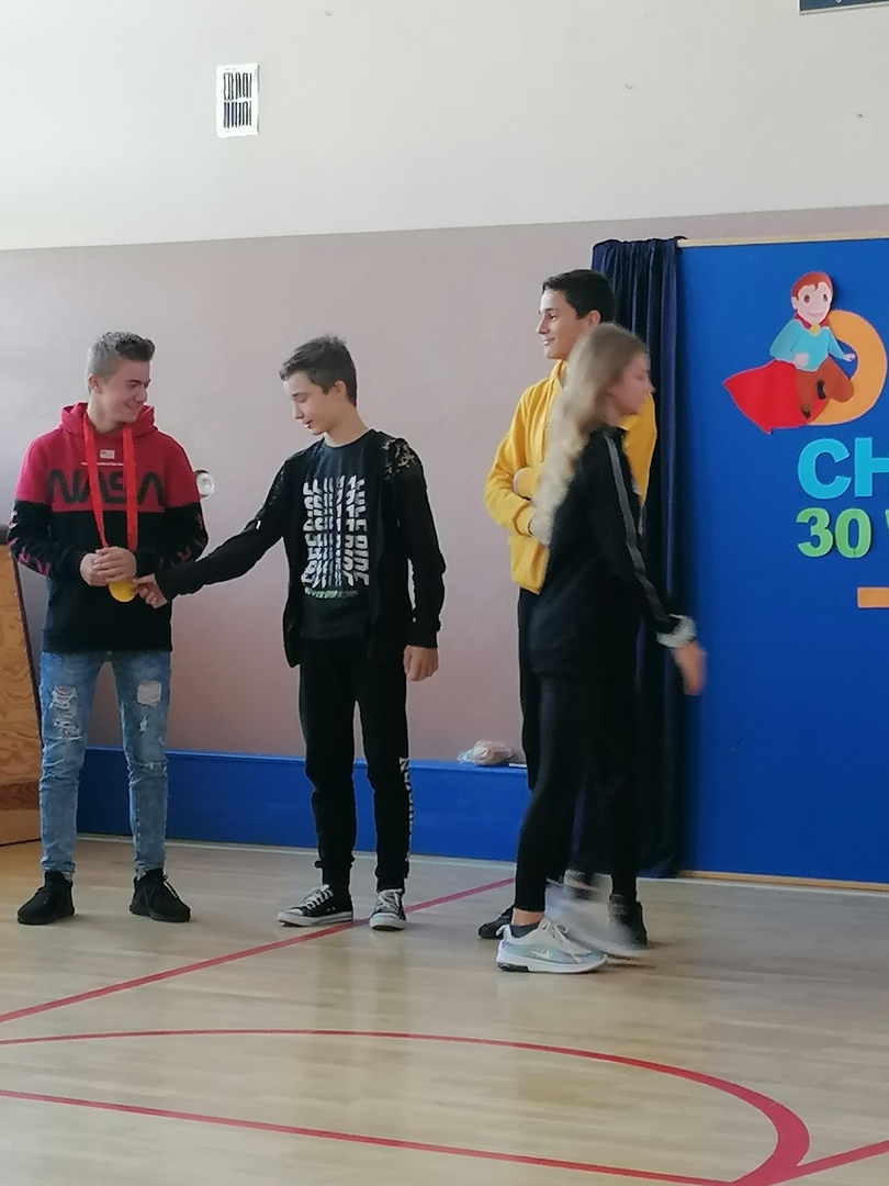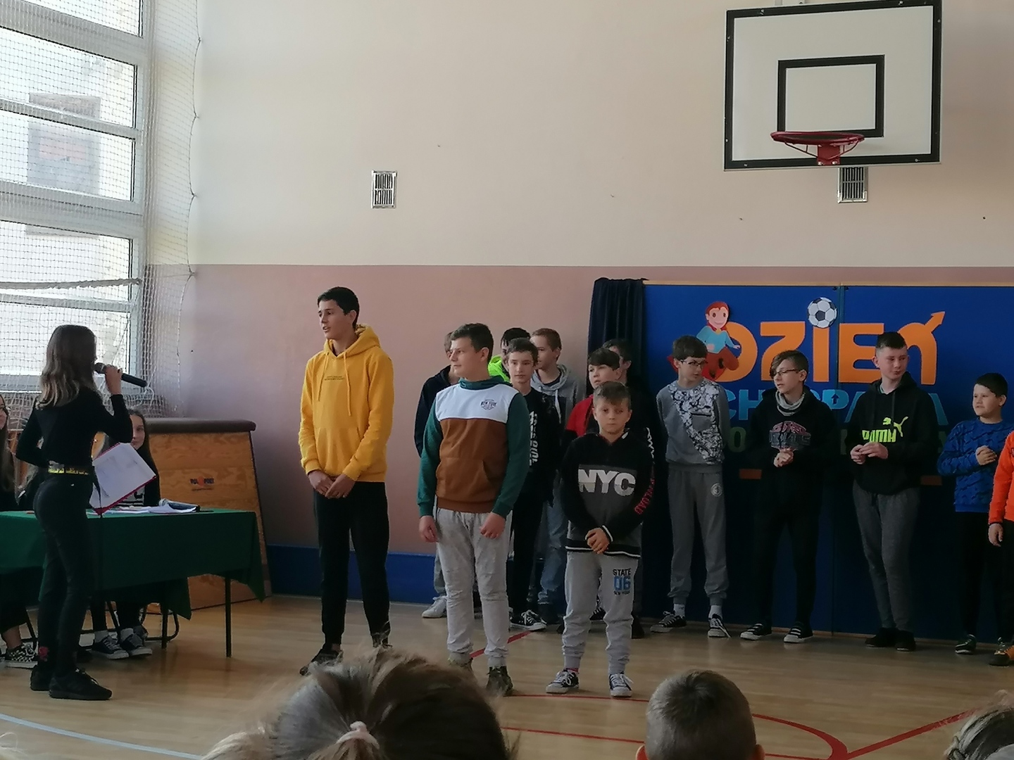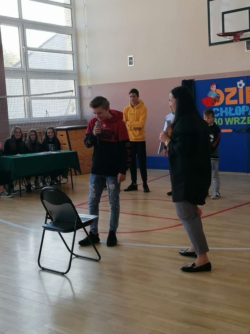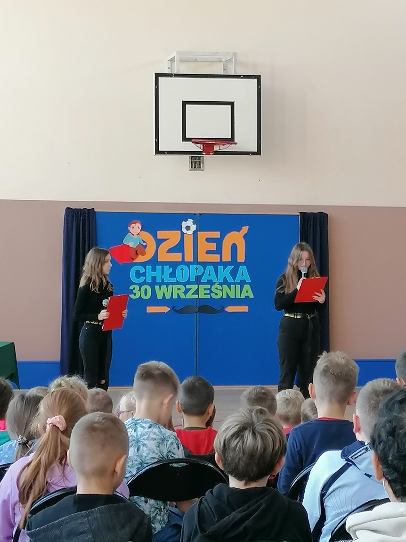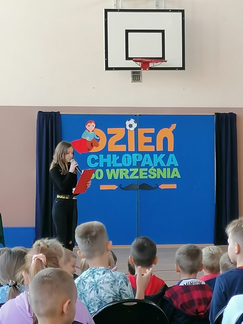 30 września z okazji Dnia Chłopaka odbyła się w naszej szkole akademia zorganizowana przez podopieczne Samorządu Uczniowskiego oraz uczennice klas IV-VIII. W ramach przedstawienia dziewczyny przygotowały piosenkę, taniec oraz liczne konkurencje, mające na celu wyłonienie szkolnego mistera naszej szkoły. Nie obyło się bez żartów i śmiesznych zabaw, w których liderem został Kacper Igras.