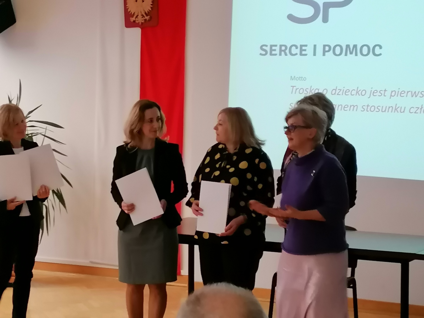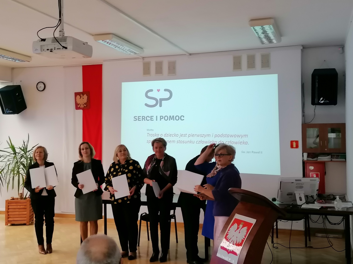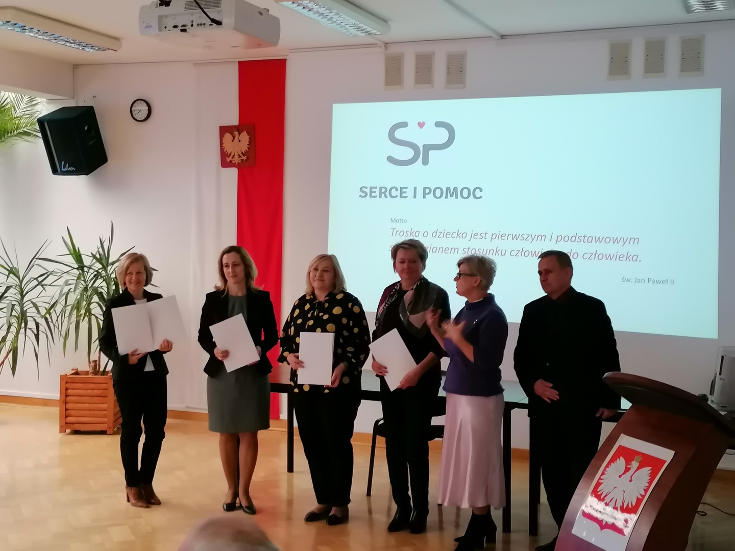 30 września, pani Edyta Igras - dyrektor szkoły, odebrała w Tarnobrzegu od Podkarpackiego Kuratora Oświaty - pani Małgorzaty Rauch akredytację wstępną w ramach projektu SP! SERCE I POMOC.