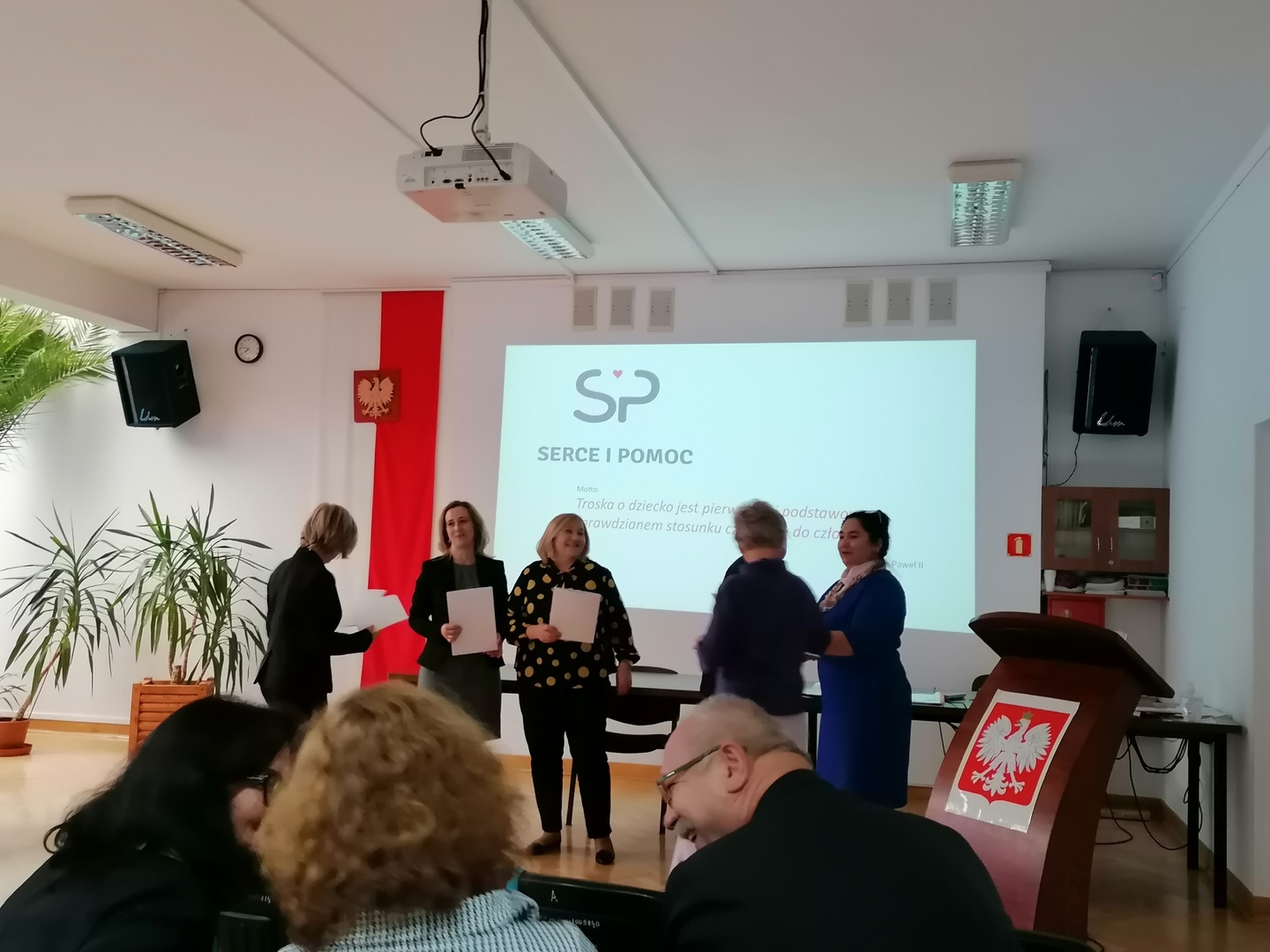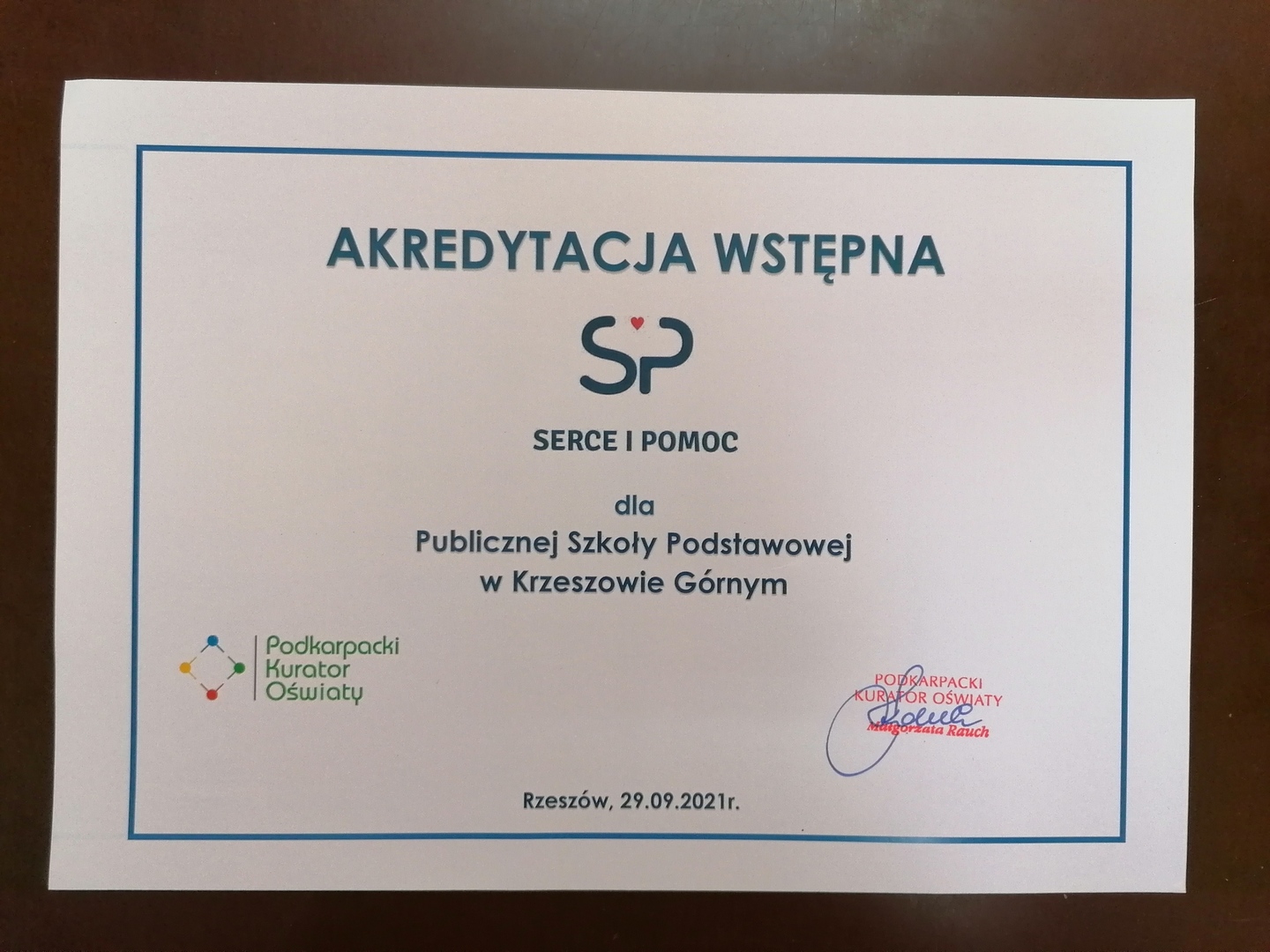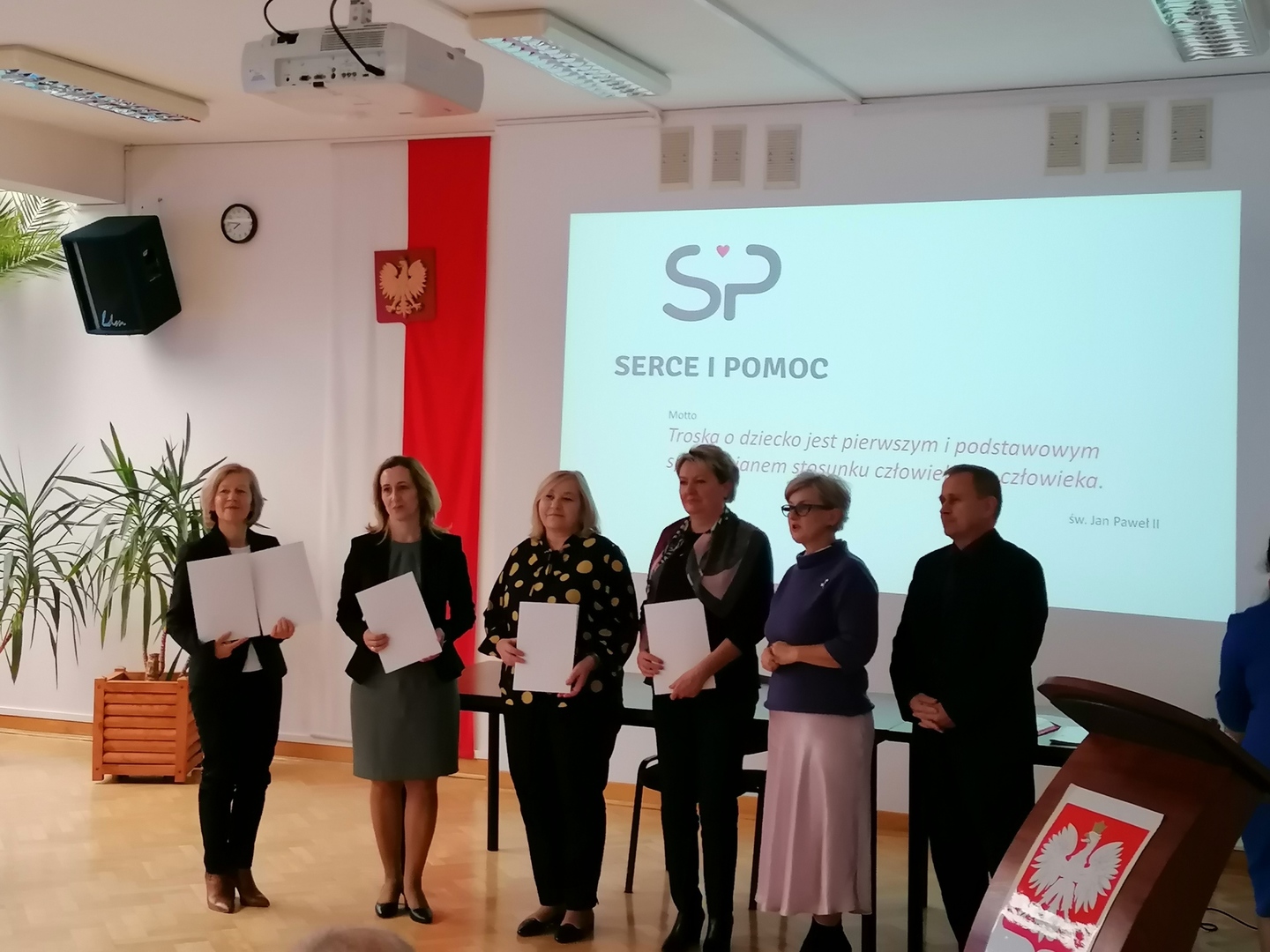 30 września, pani Edyta Igras - dyrektor szkoły, odebrała w Tarnobrzegu od Podkarpackiego Kuratora Oświaty - pani Małgorzaty Rauch akredytację wstępną w ramach projektu SP! SERCE I POMOC.