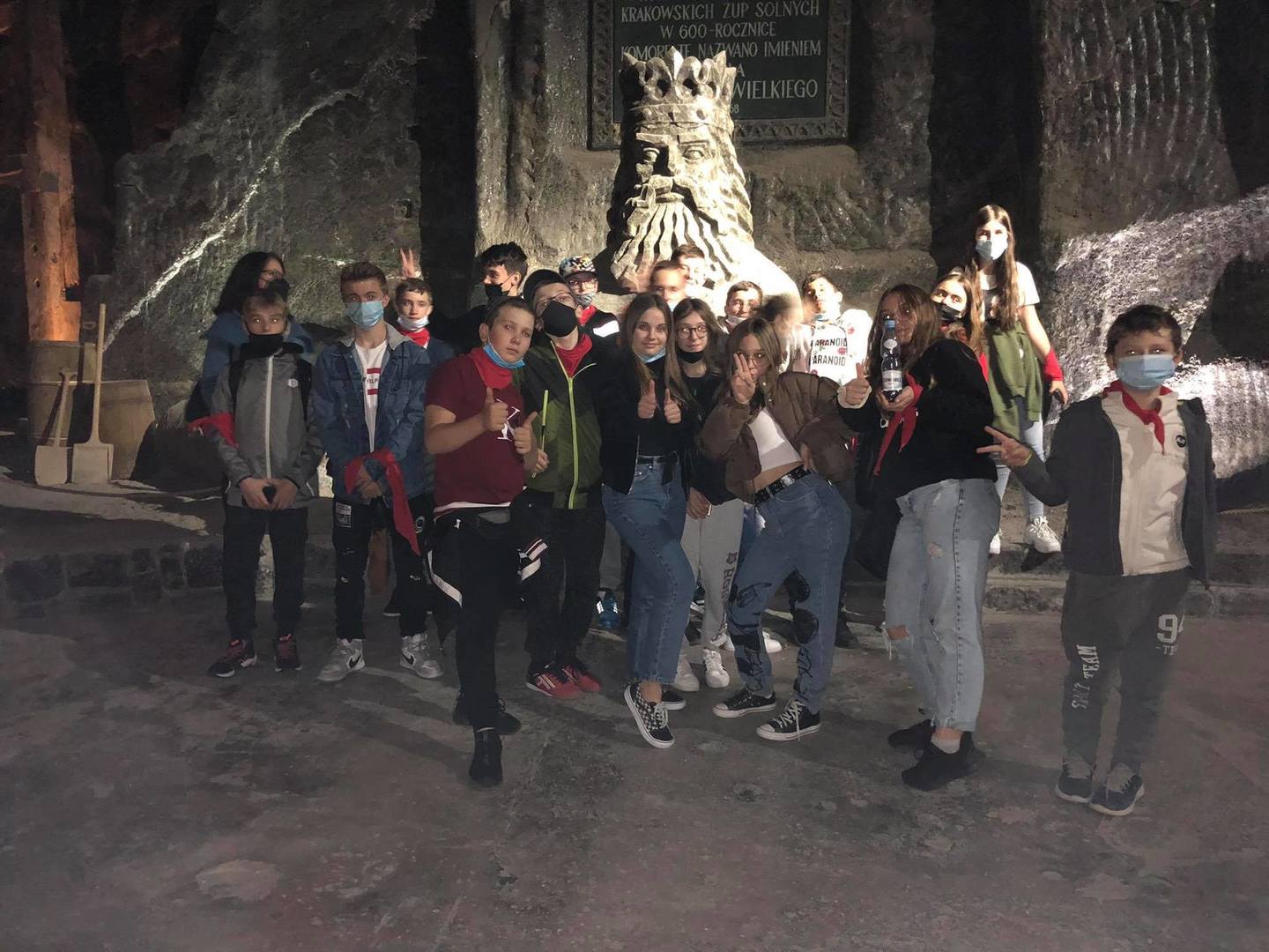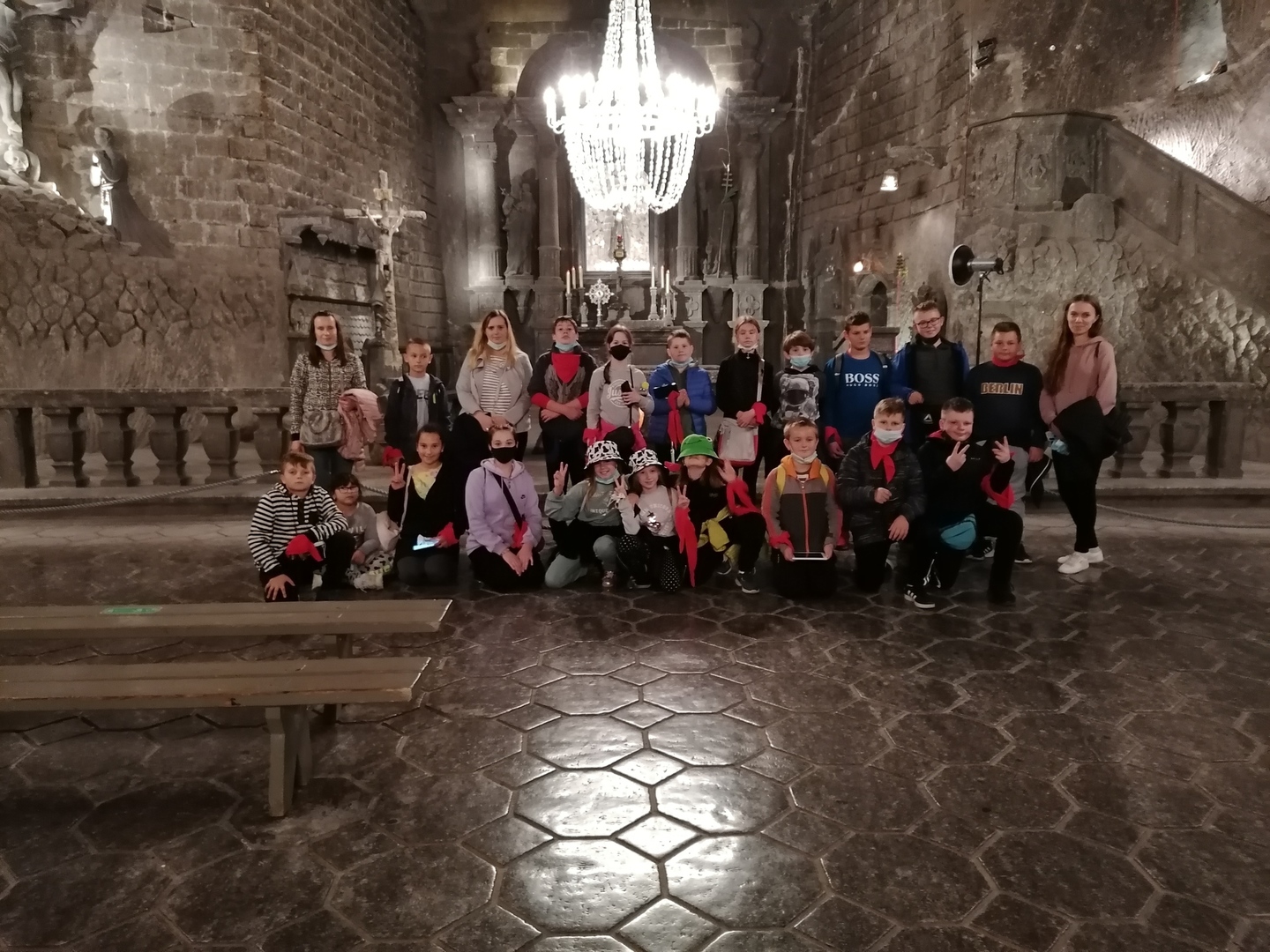 5 października 2021 r. uczniowie klas IV-VIII uczestniczyli w szkolnej wycieczce do Krakowa i kopalni soli w Wieliczce. Podczas wyjazdu uczestnicy, razem z przewodnikiem, spacerowali po przepięknym krakowskim Rynku, zwiedzali Katedrę Wawelską, Dziedziniec Zamkowy oraz Sukiennice. Nie lada wyzwaniem okazało się wejście na wieżę Dzwonu Zygmunta. Każdy z uczestników doskonale poradził sobie z dotarciem na sam szczyt wieży, gdzie można było zobaczyć olbrzymi, historyczny dzwon. Uczniowie dotarli też pod tzw. „okno papieskie” oraz wysłuchali hejnału z wieży Kościoła Mariackiego. Po aktywnym pobycie w Krakowie, uczestnicy udali się do kopalni soli w Wieliczce. Ponad dwugodzinna wędrówka po korytarzach kopalni nikomu się nie nudziła. Rzeźby solne, solankowe jeziora i przepiękne podziemne komory – te wszystkie atrakcje sprawiały, że uczniowie z coraz większym zainteresowaniem pragnęli poznawać tajemnice ukryte głęboko pod ziemią. Dla wielu, jedną z najwspanialszych miejsc była Kaplica św. Kingi. Po podziemnej wędrówce uczestnicy wydostali się na górę przy pomocy windy górniczej. Ta aktywność została bardzo pozytywnie przyjęta przez uczniów, pomimo ich początkowych obaw. Po wizycie w kopalni soli uczniowie i opiekunowie, w godzinach wieczornych, powrócili do Krzeszowa Górnego. Podczas całego wyjazdu obecny był z nami pilot oraz nauczyciele: P. Joanna Kasprzyk, P. Gabriela Szaczkowska, P. Sylwia Rychlak, , P. Ewelina Kowal i P. Michalina Niedbała.
