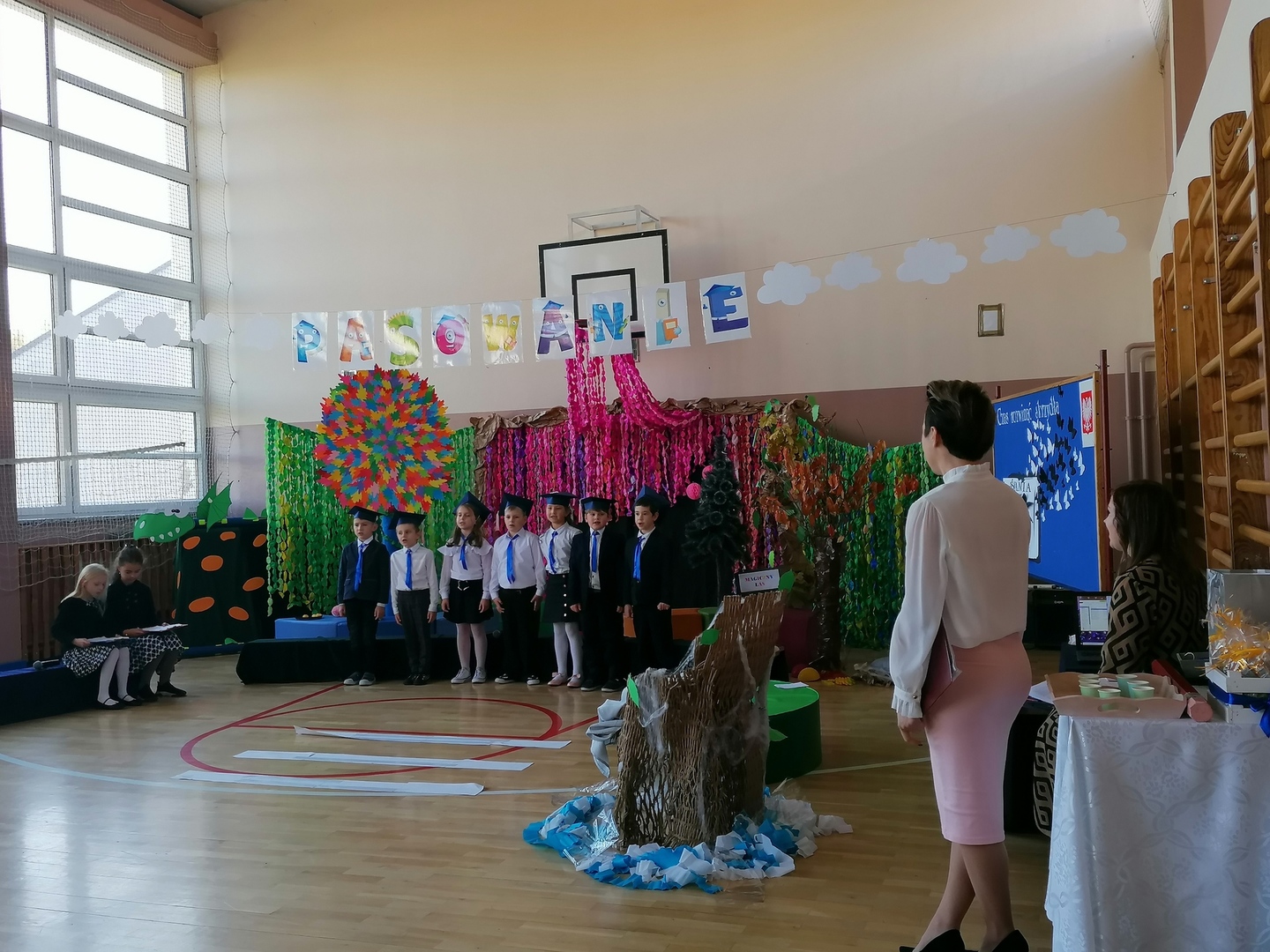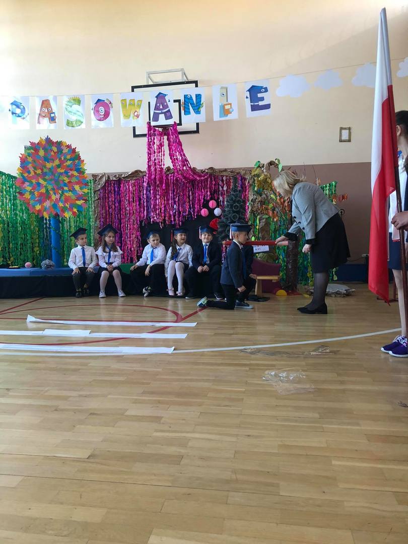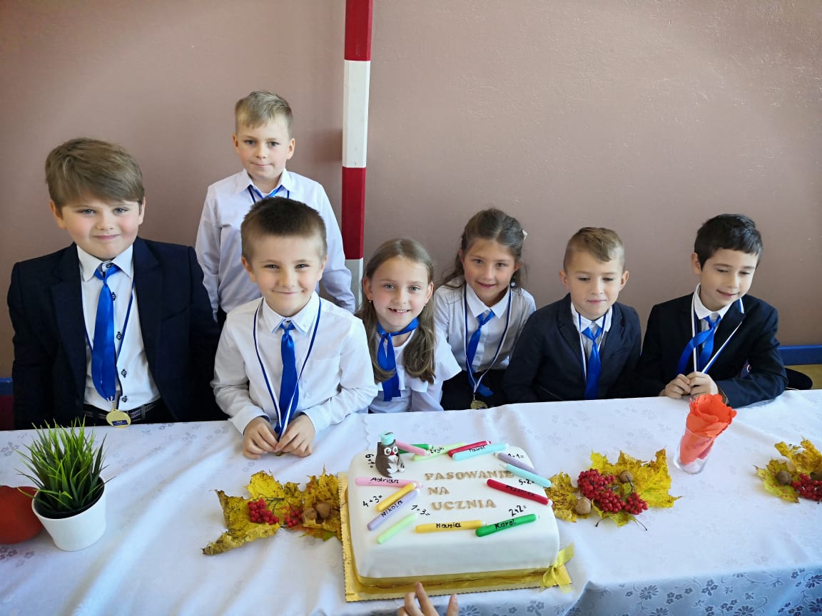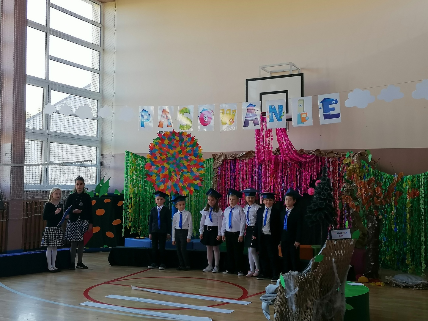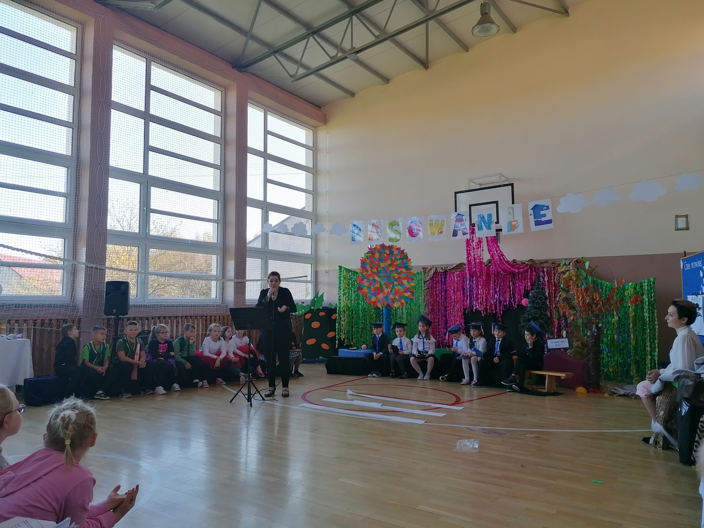 Uroczystość Pasowania na Ucznia przygotowały panie: Aneta Dzieciuch, Urszula Krawiec i Edyta Bigos przy pomocy uczniów z klasy II oraz konferansjerek z klasy III. W imieniu rodziców wystąpiła pani Sylwia Piotrowska, która po życzeniach i podziękowaniach zaskoczyła wszystkich pięknym akcentem poetyckim i muzycznym. Dziękujemy Pani Dyrektor, wszystkim nauczycielom, rodzicom i uczniom za zaangażowanie w przygotowanie tego dnia. A pierwszoklasistom serdecznie gratulujemy oficjalnego przyjęcia do szkolnej społeczności.