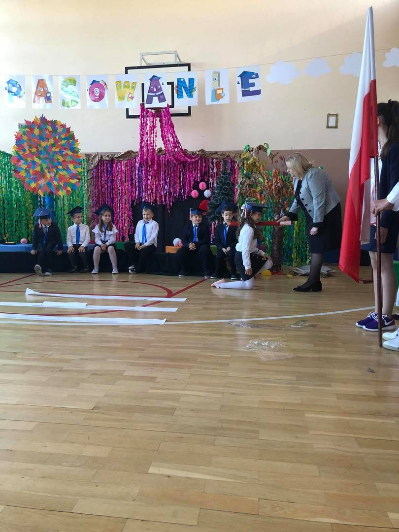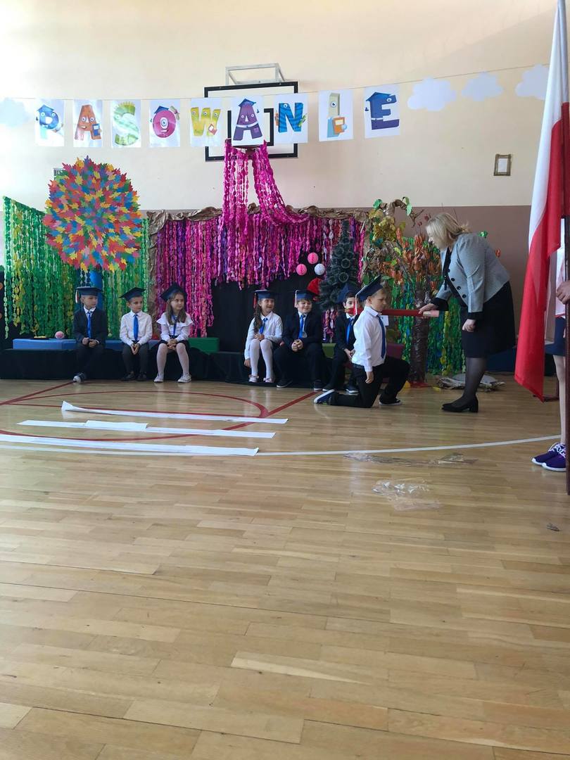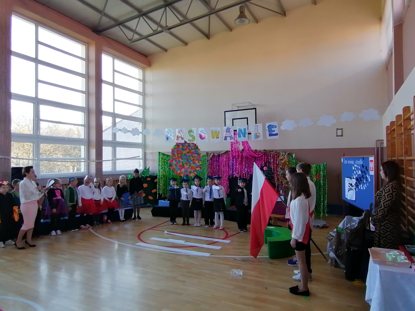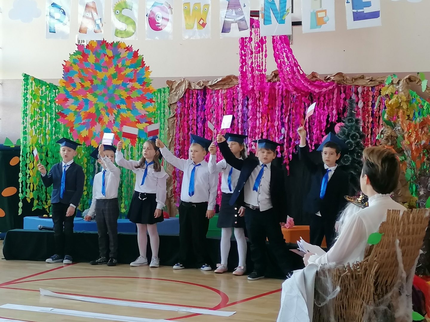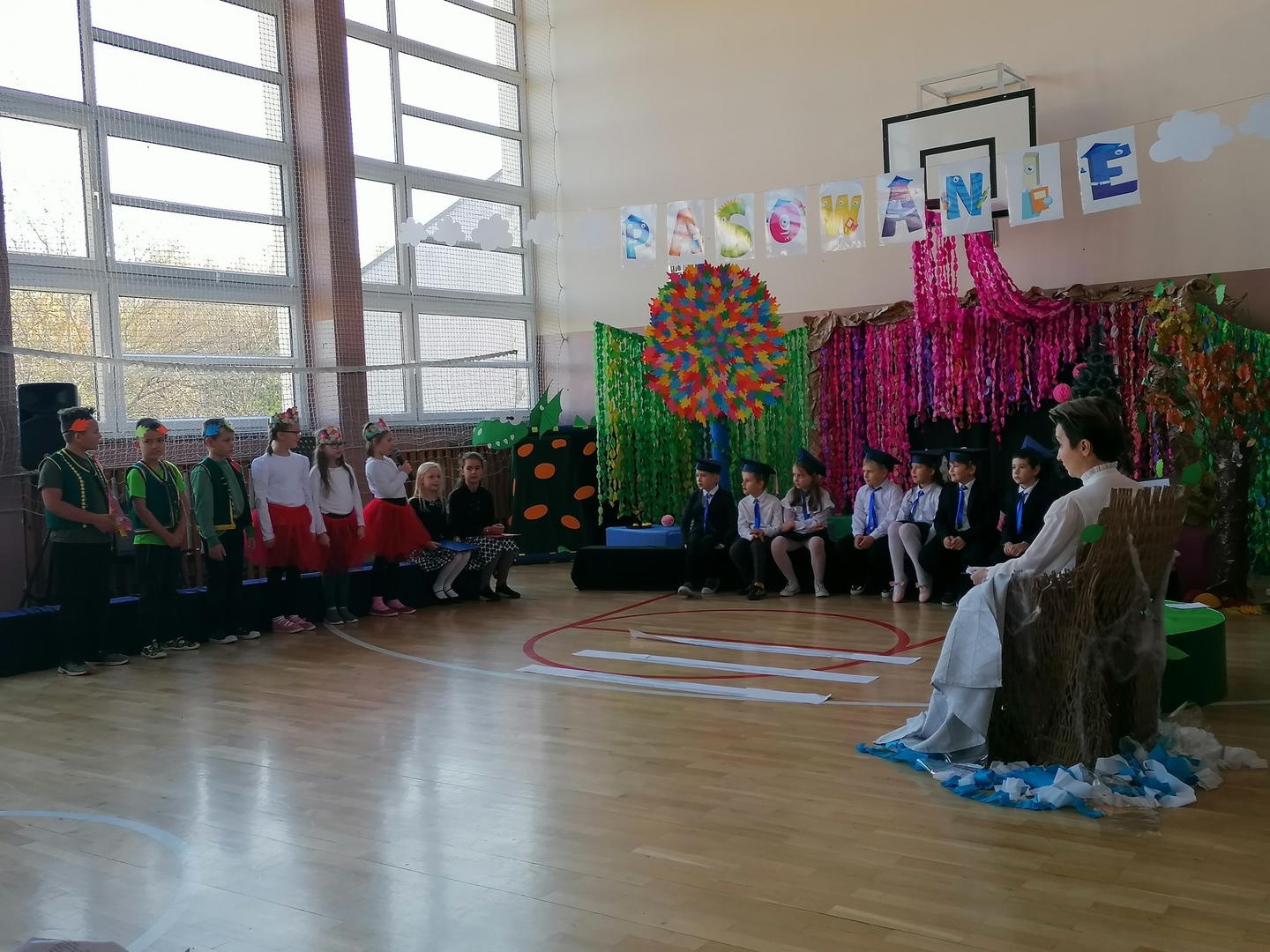 Uroczystość Pasowania na Ucznia przygotowały panie: Aneta Dzieciuch, Urszula Krawiec i Edyta Bigos przy pomocy uczniów z klasy II oraz konferansjerek z klasy III. W imieniu rodziców wystąpiła pani Sylwia Piotrowska, która po życzeniach i podziękowaniach zaskoczyła wszystkich pięknym akcentem poetyckim i muzycznym. Dziękujemy Pani Dyrektor, wszystkim nauczycielom, rodzicom i uczniom za zaangażowanie w przygotowanie tego dnia. A pierwszoklasistom serdecznie gratulujemy oficjalnego przyjęcia do szkolnej społeczności.
