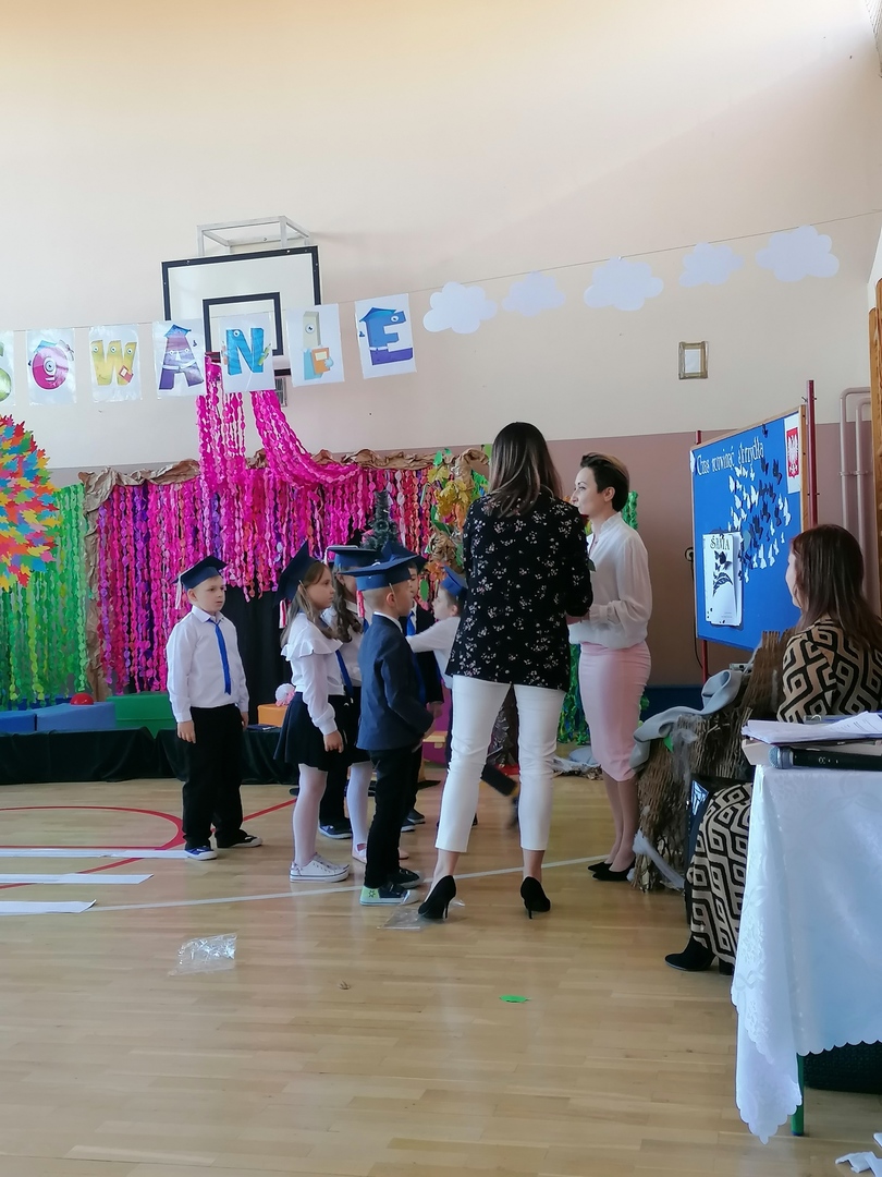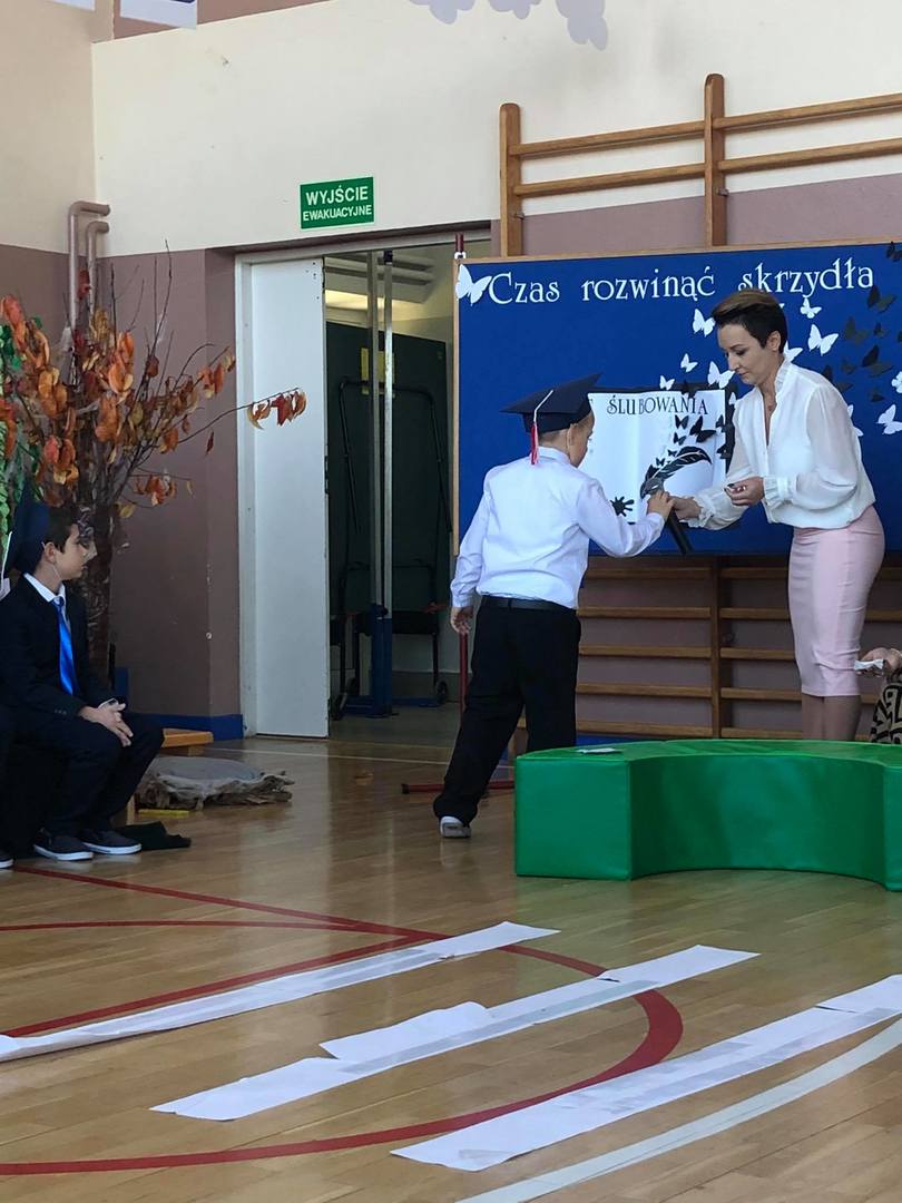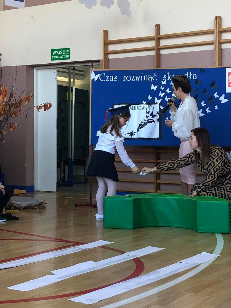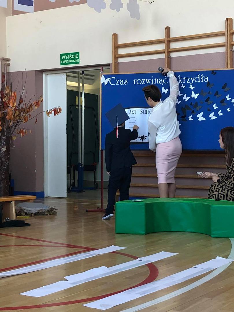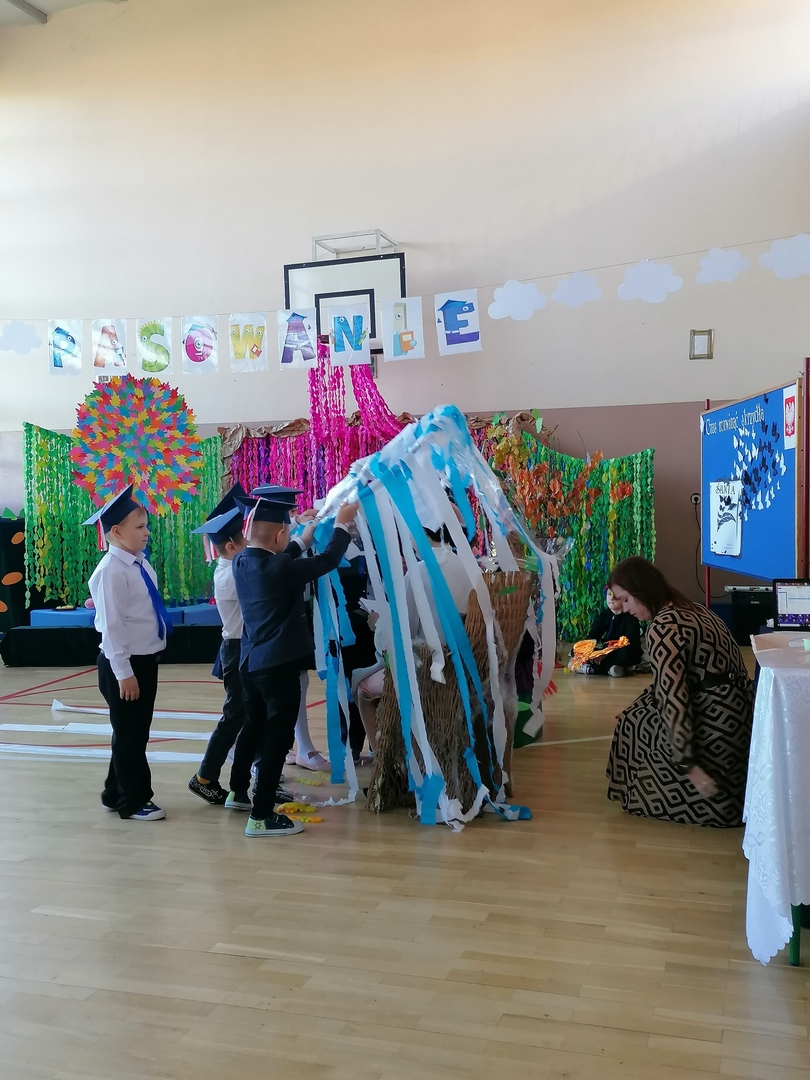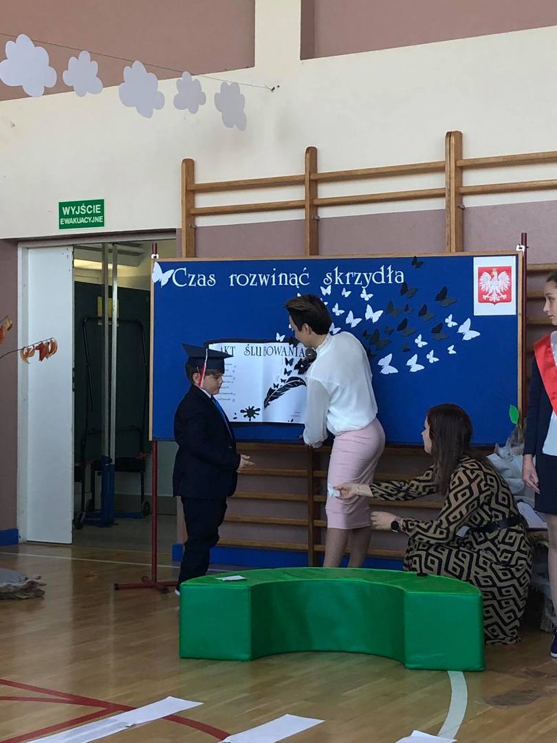 Uroczystość Pasowania na Ucznia przygotowały panie: Aneta Dzieciuch, Urszula Krawiec i Edyta Bigos przy pomocy uczniów z klasy II oraz konferansjerek z klasy III. W imieniu rodziców wystąpiła pani Sylwia Piotrowska, która po życzeniach i podziękowaniach zaskoczyła wszystkich pięknym akcentem poetyckim i muzycznym. Dziękujemy Pani Dyrektor, wszystkim nauczycielom, rodzicom i uczniom za zaangażowanie w przygotowanie tego dnia. A pierwszoklasistom serdecznie gratulujemy oficjalnego przyjęcia do szkolnej społeczności.