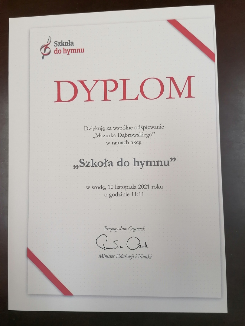 "Szkoła do hymnu" - podziękowanie za udział w akcji