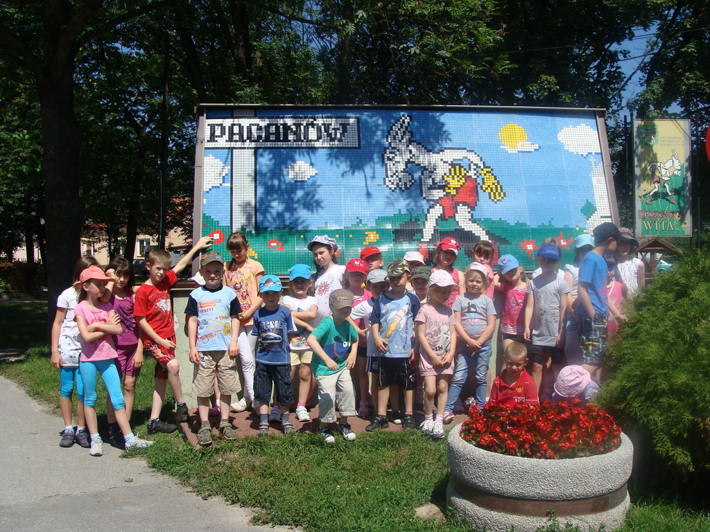 Uczniowie klas "0"-III 16 czerwca uczestniczyli w wycieczce do Europejskiego Centrum Bajek w Pacanowie. Zwiedzając wystawę "Bajkowy Świat" odbyli podróż przez bajkowe krainy dziecięcej wyobraźni. Pośrednikami między światem bajki a rzeczywistością byli przewodnicy - Kopciuszek i Dzwoneczek. Po zwiedzeniu wspaniałego obiektu uczniowie przespacerowali się po poznanym rynku, fotografując się z przemierzającym park Koziołkiem Matołkiem.