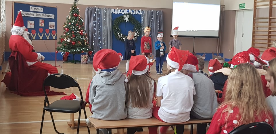 Tradycyjnie jak co roku 6 grudnia odwiedził naszą szkołę Św. Mikołaj. Wysłuchał przygotowanych przez dzieci wierszyków oraz piosenek. Jak się okazało wszystkie dzieci były przez ostatni rok grzeczne i dostały prezenty.