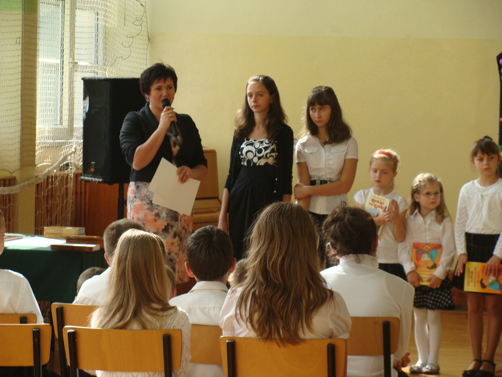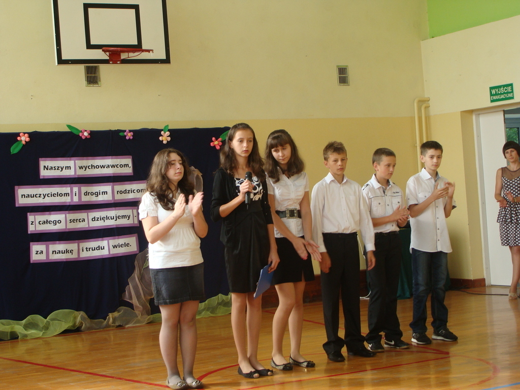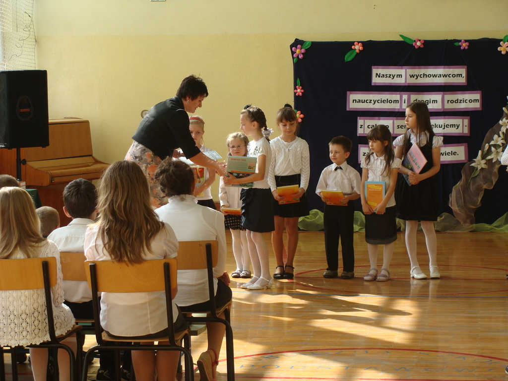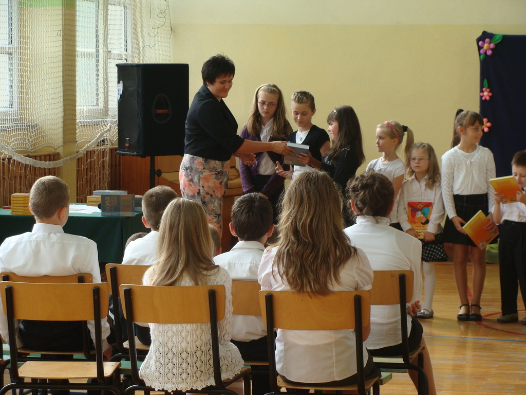 Pani dyrektor wręczyła nagrody książkowe tym uczniom, którzy osiągnęli wysokie wyniki w nauce i wyróżniali się pod względem zachowania, za wzorową frekwencję oraz aktywnie działającym w Samorządzie Uczniowskim. Rodzice absolwentów otrzymali także listy gratulacyjne.