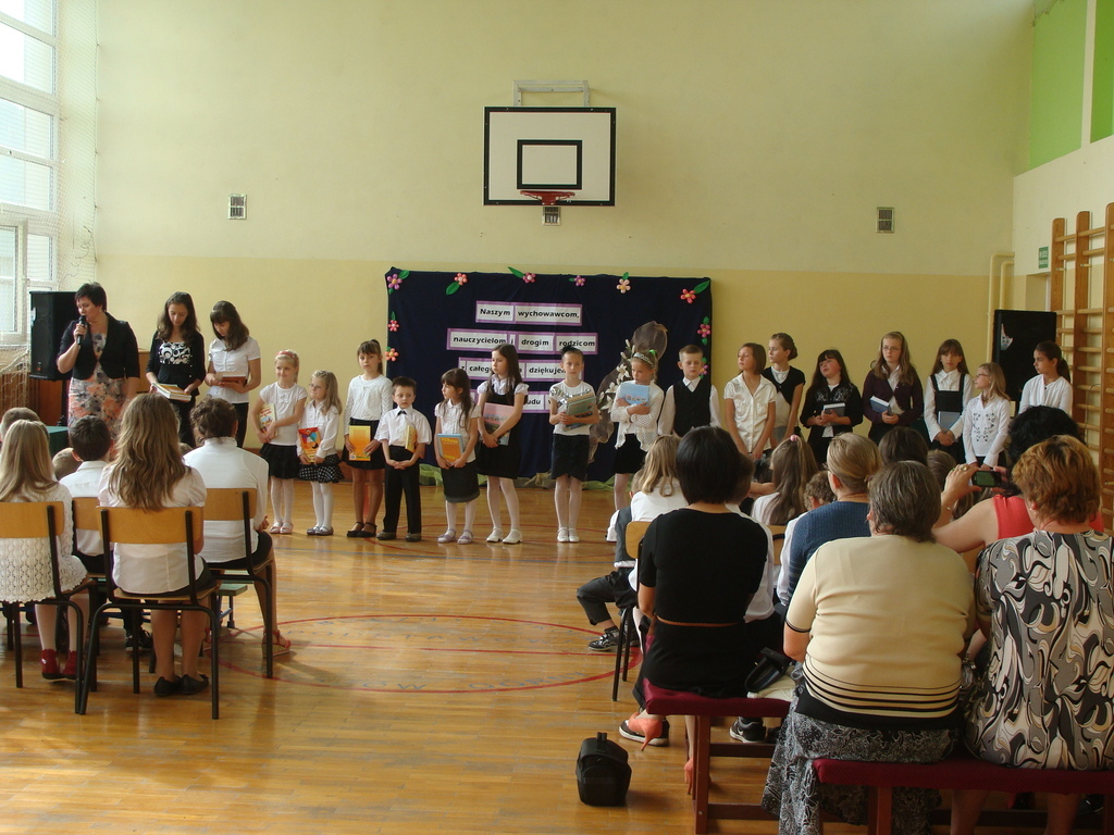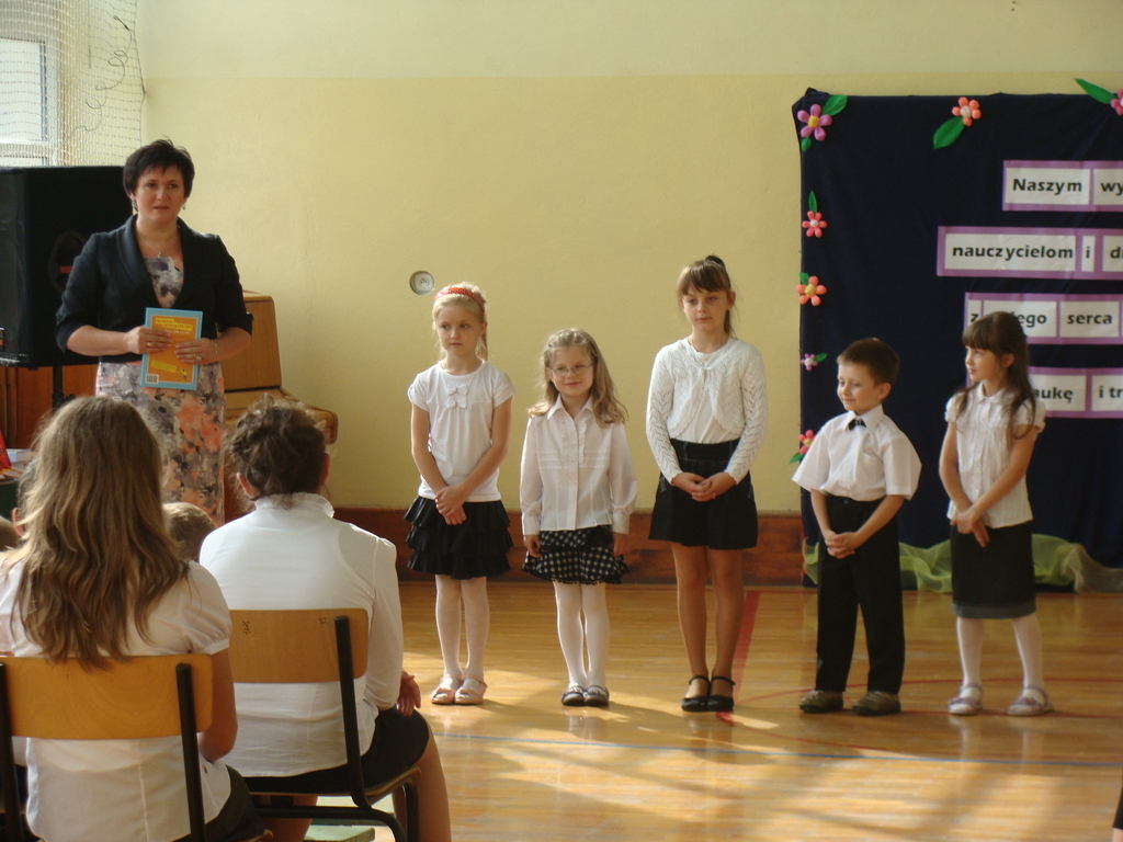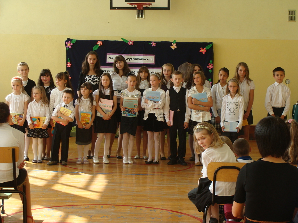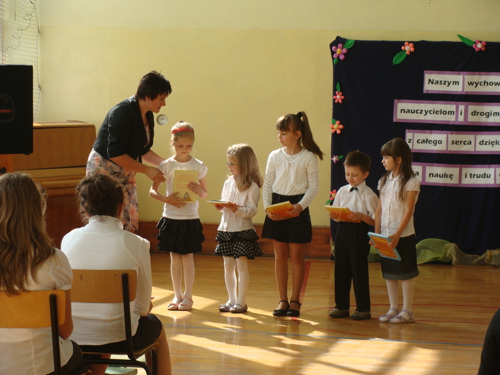 Pani dyrektor wręczyła nagrody książkowe tym uczniom, którzy osiągnęli wysokie wyniki w nauce i wyróżniali się pod względem zachowania, za wzorową frekwencję oraz aktywnie działającym w Samorządzie Uczniowskim. Rodzice absolwentów otrzymali także listy gratulacyjne.