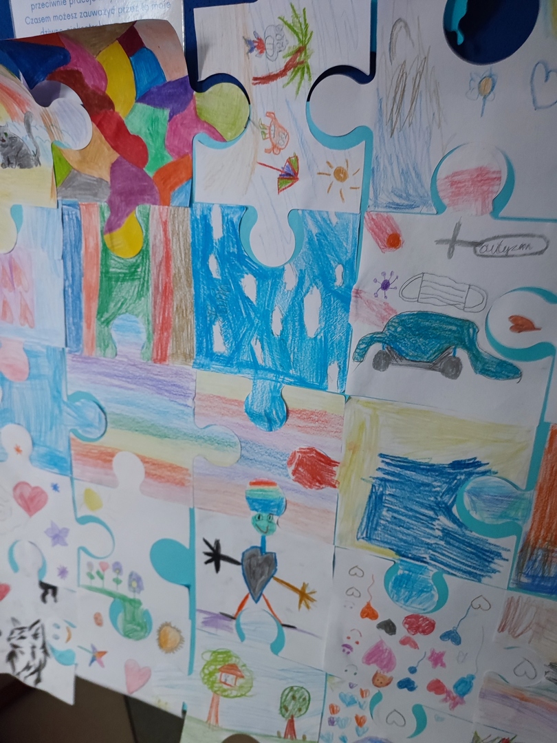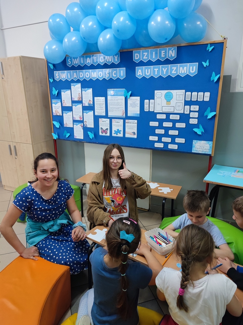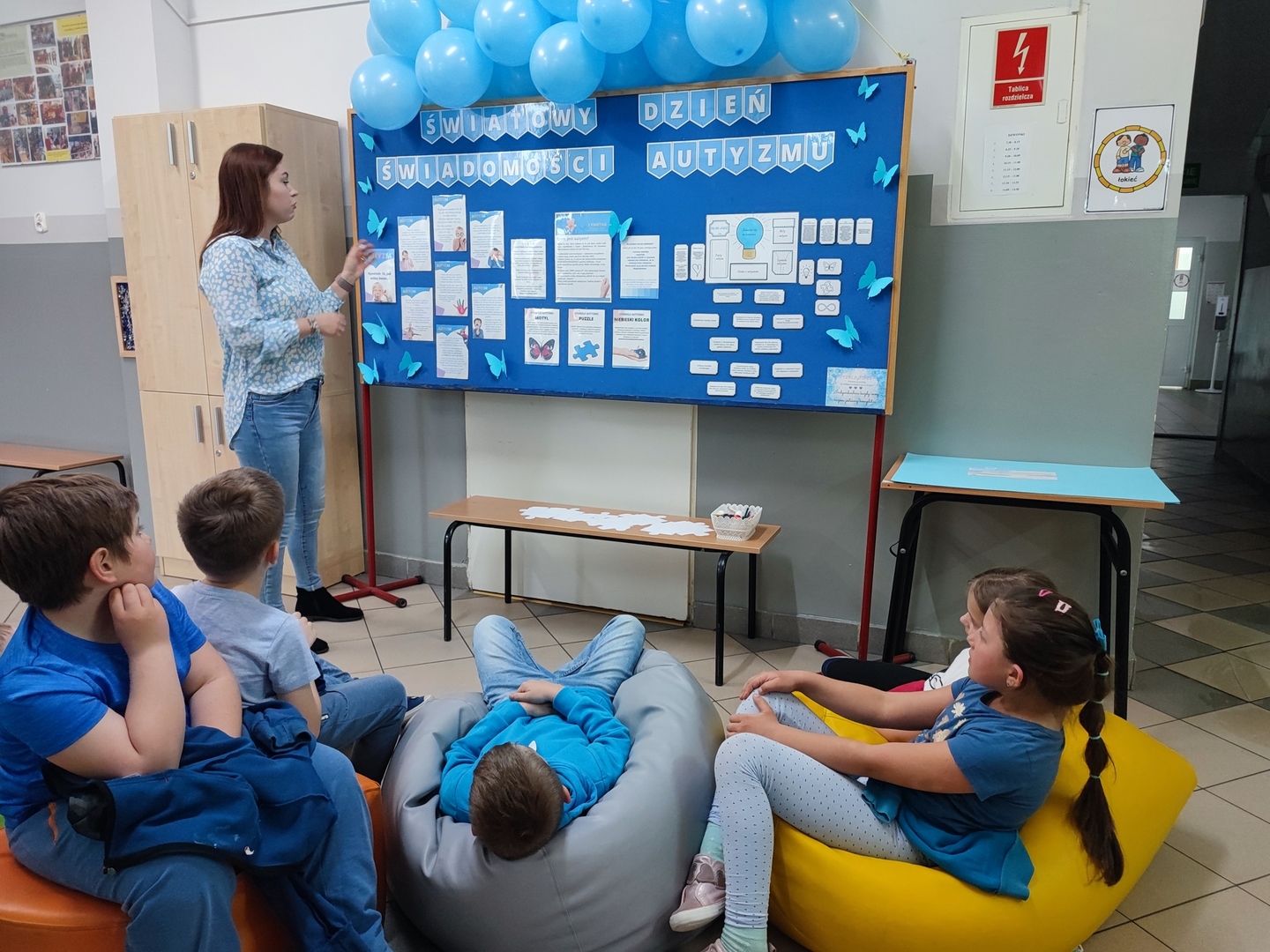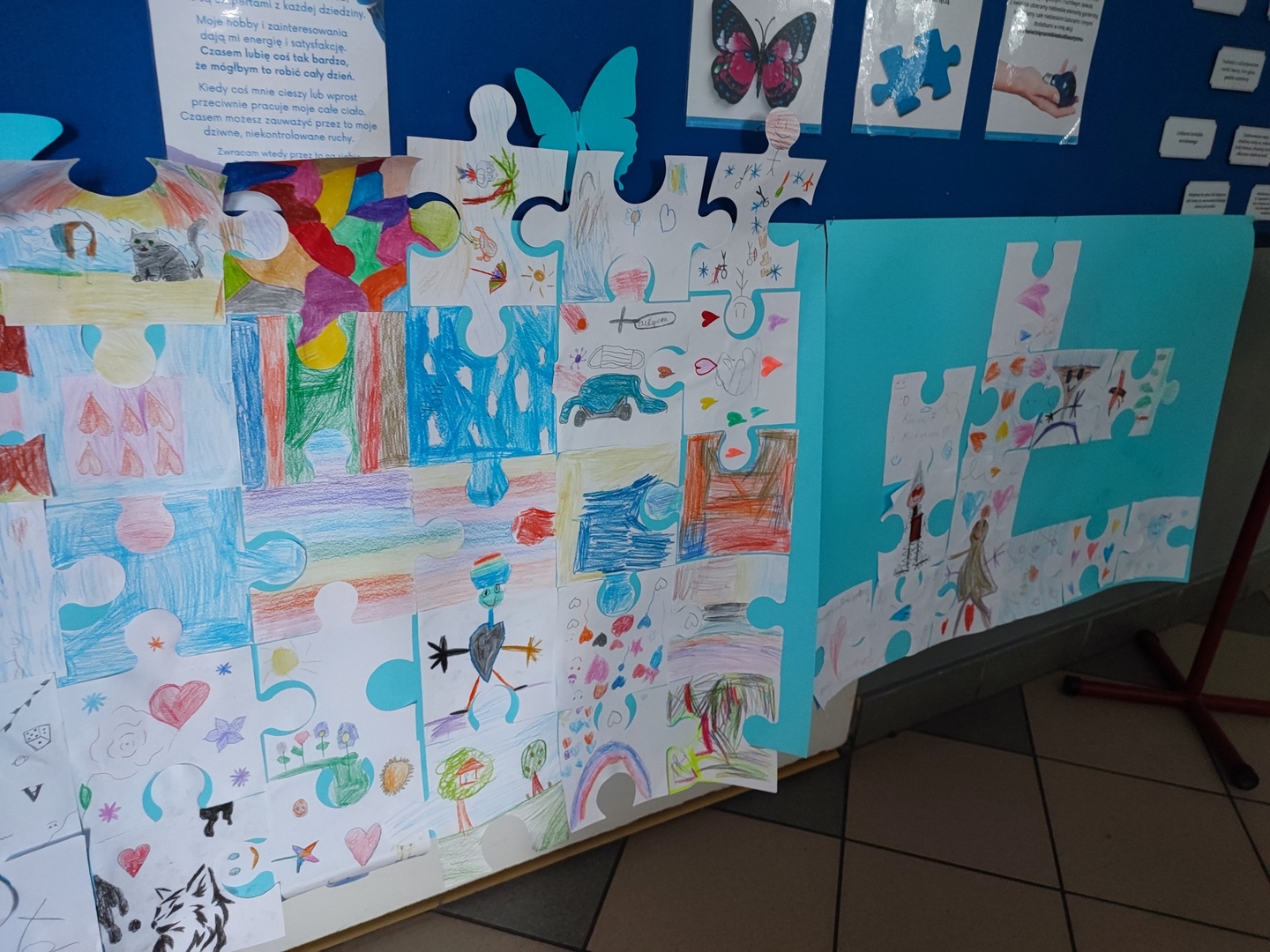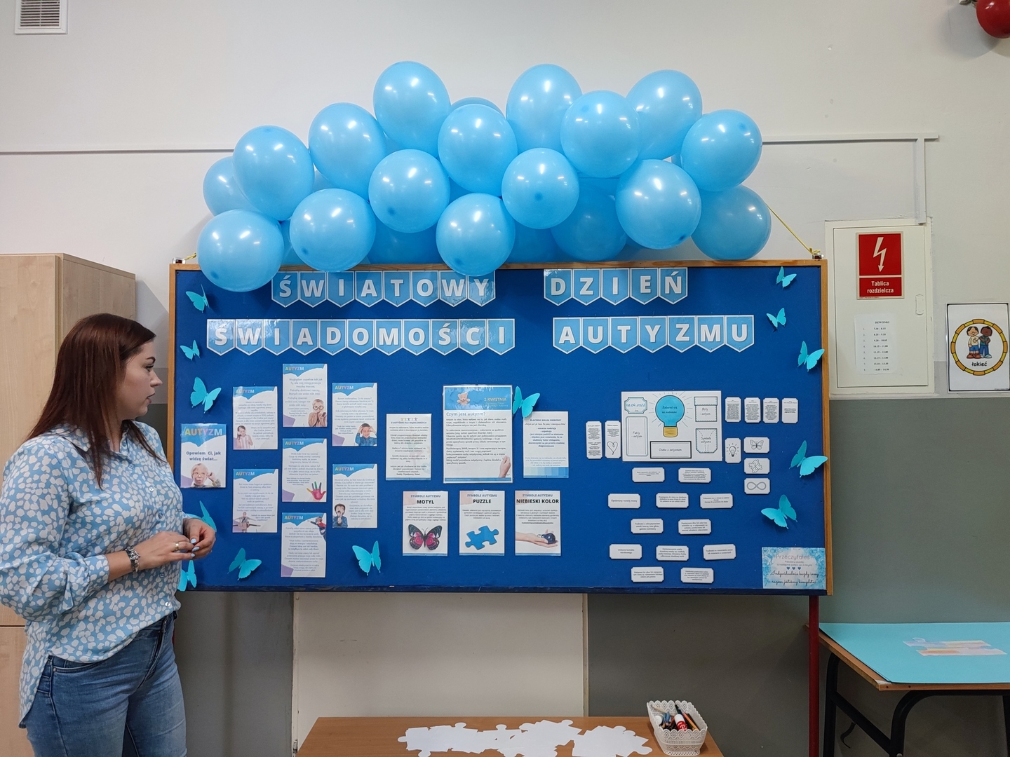 2 kwietnia obchodzimy Światowy Dzień Świadomości Autyzmu. Dzień ten został ustanowiony w 2008 roku. Jego celem jest propagowanie wiedzy na temat autyzmu i budowanie wrażliwości społecznej w tym zakresie. W tym dniu wiele budynków podświetlanych jest na niebiesko. Jest to wyraz solidarności z osobami z autyzmem i ich rodzinami. Kolor ten symbolizuje spokój i akceptację. Nasza szkoła „zaświeciła” się na niebiesko w piątek 1 kwietnia. Tego dnia uczniowie i nauczyciele solidarnie założyli element garderoby w kolorze niebieskim. W szkole przygotowana została tablica informacyjna, na której umieszczone zostały najważniejsze informacje, które przybliżyły nam świat osób z autyzmem. Przy wejściach do szkoły pojawiły się ulotki dla rodziców z informacjami o tym, jakie są wczesne objawy autyzmu. Uczniowie, którzy skorzystali z akcji informacyjnej kolorowali puzzle i dokładali je do wspólnej układanki. Uczniowie klasy pierwszej w geście solidarności i wsparcia dla osób z autyzmem i ich rodzin wykonali „żywy napis” – „Razem dla autyzmu”. Akcja zorganizowana została przez Szkołę Promującą Zdrowie i Bezpieczeństwo, a jej koordynatorem była pani Urszula Krawiec.
