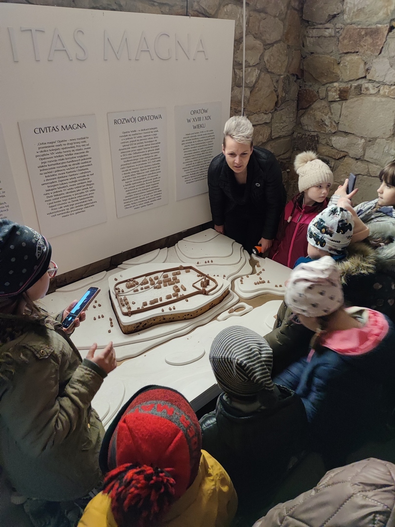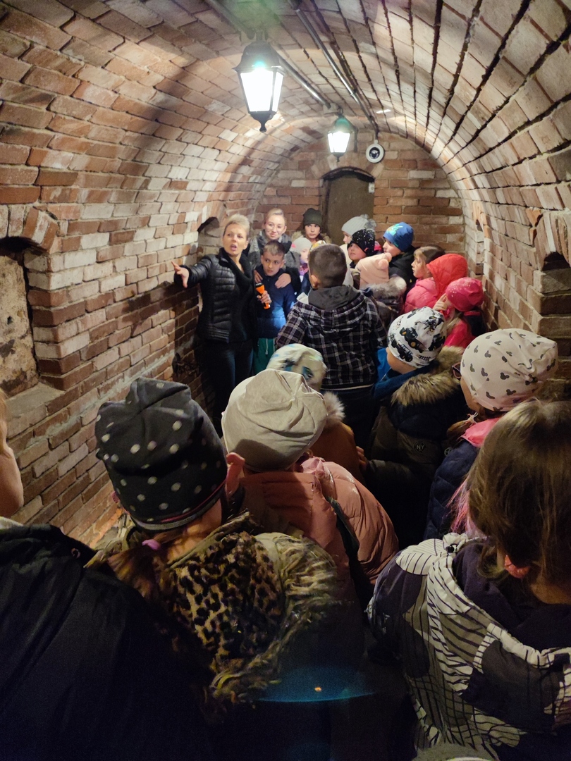 Po wizycie w muzeum wycieczkowicze udali się do Opatowa, gdzie zwiedzili Podziemną Trasę Turystyczną. Niezwykła wycieczka podziemnymi korytarzami i pomieszczeniami trwała około 45 minut. W trakcie zwiedzania z przewodnikiem uczniowie poznali historię samych podziemi oraz Opatowa i jego zabytków, a także obejrzeli wystawy o tematyce regionalnej.