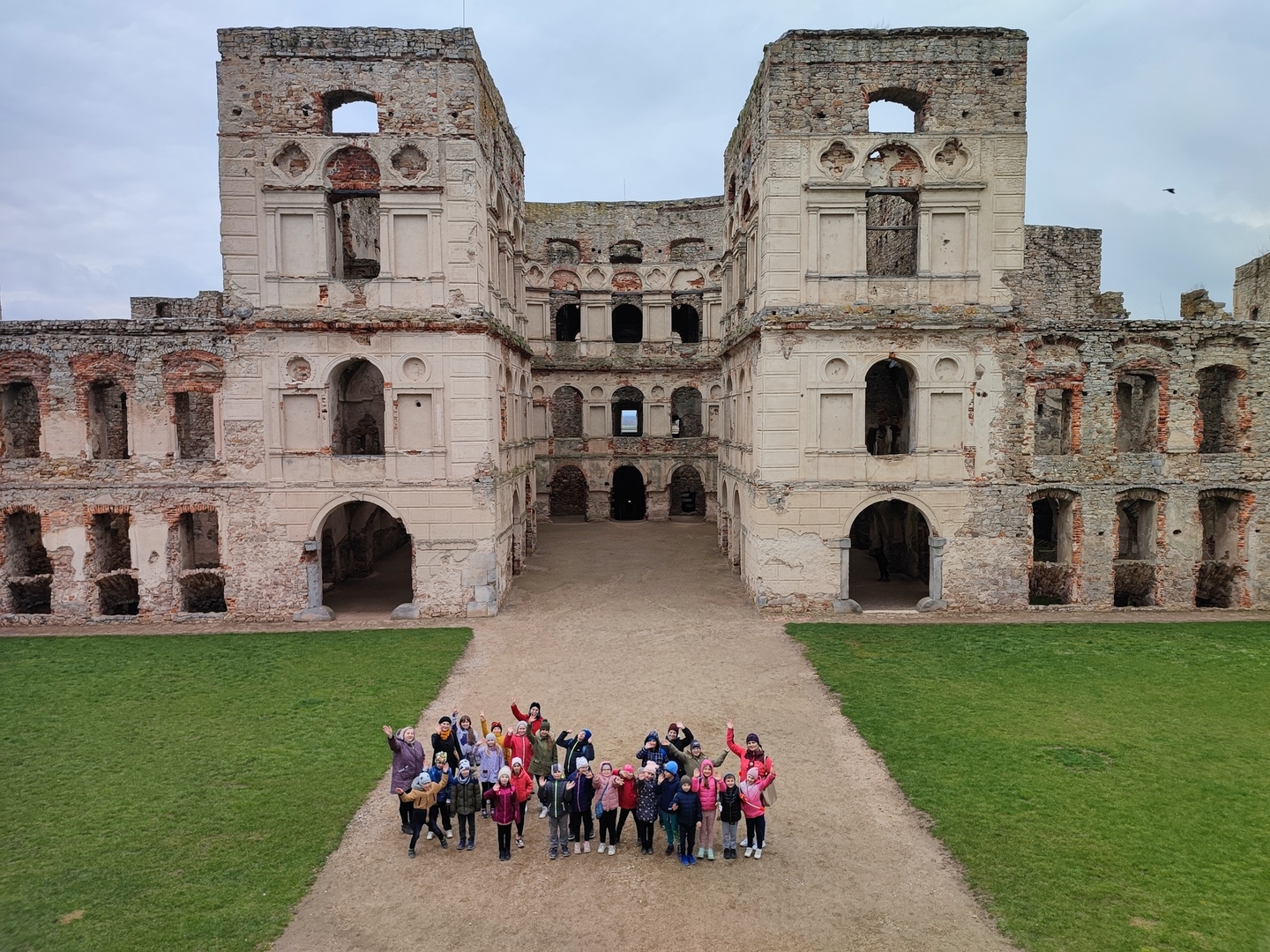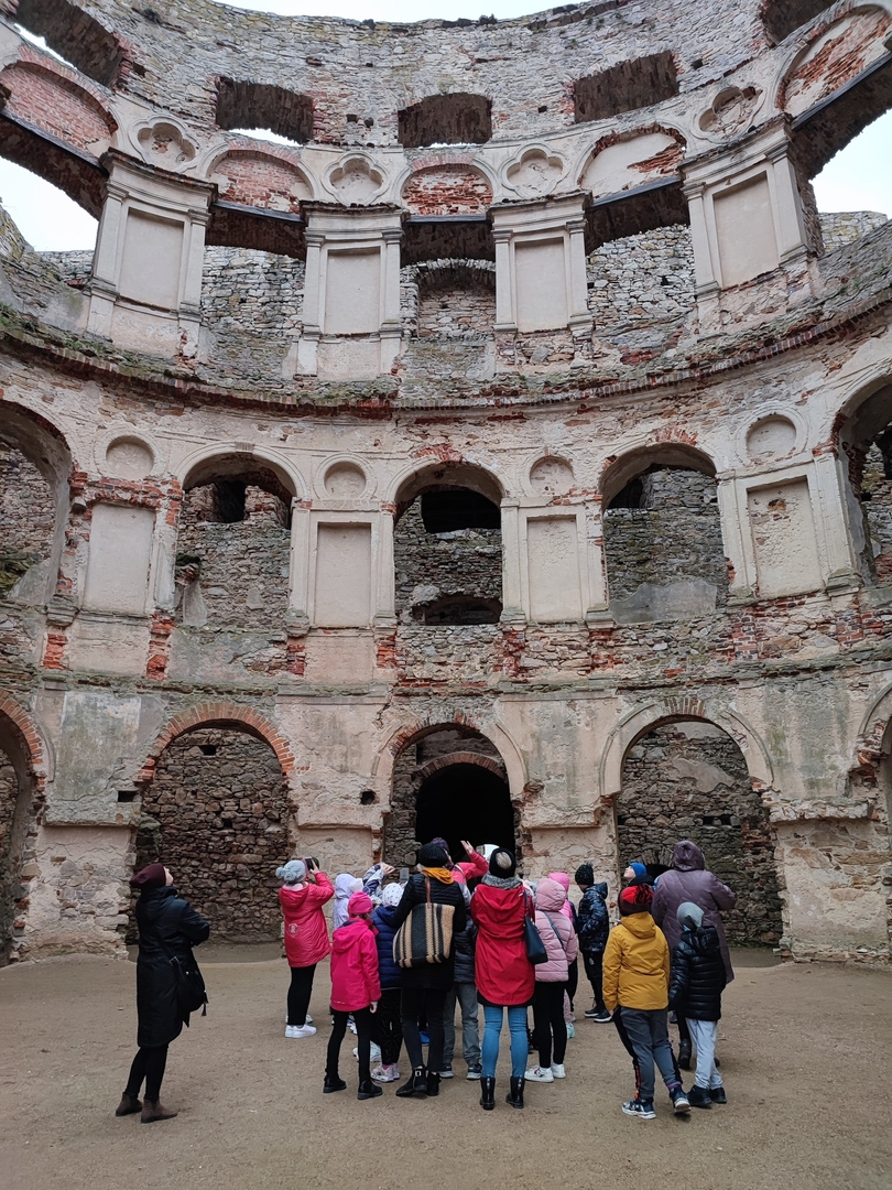 Ostatnią atrakcją wyjazdu był pobyt w niezwykłym, magicznym miejscu, zagubionym wśród pól i wzgórz ziemi opatowskiej, z dala od głównych dróg i szlaków. Ruiny zamku Krzyżtopór w Ujeździe, bo to o nich mowa, zrobiły na wszystkich ogromne wrażenie. Spacerując po ruinach zamku uczniowie mogli przenieść się w dawne czasy, wyobrażając sobie to miejsce i jego mieszkańców, jakim było w czasach świetności.