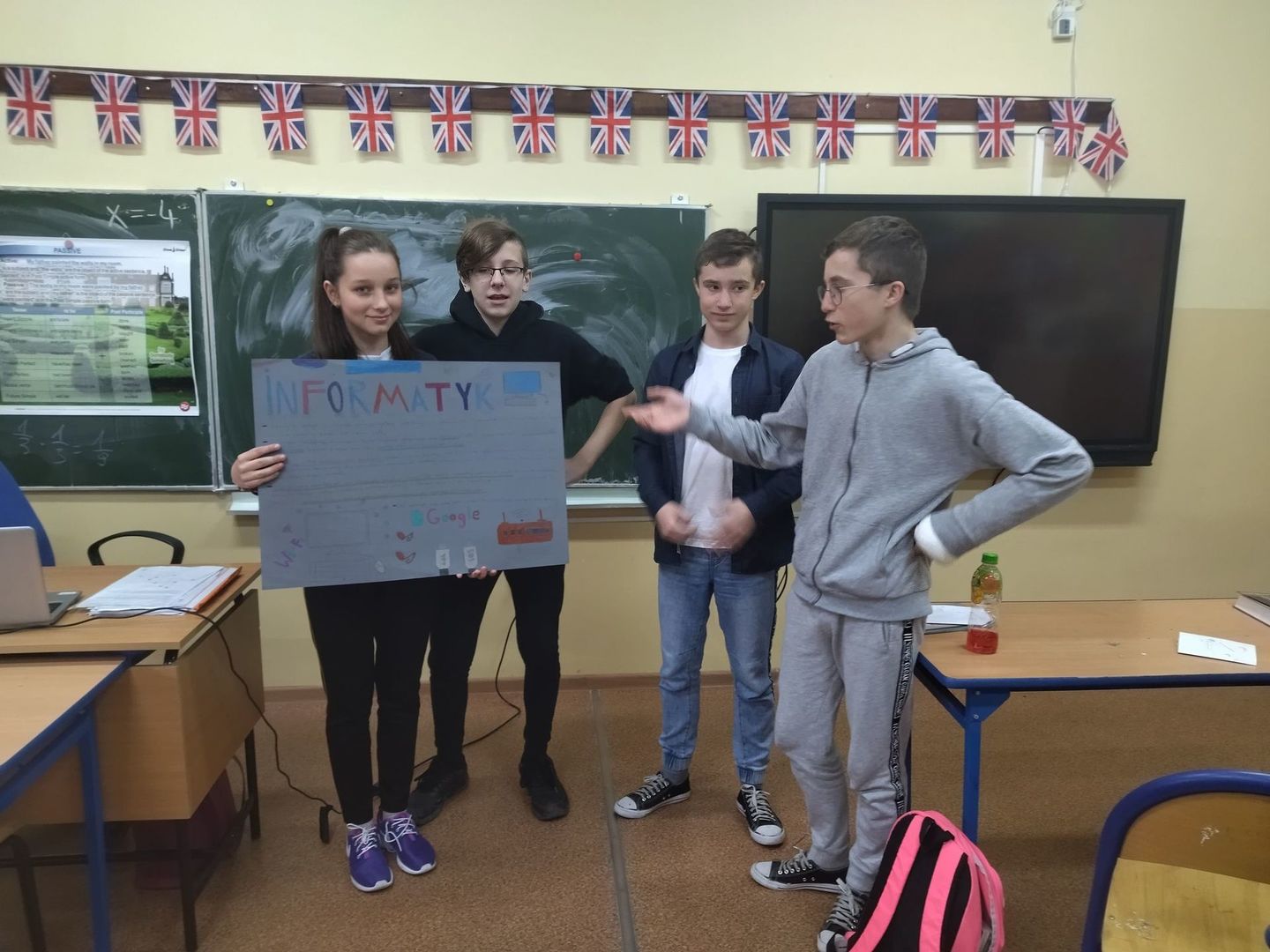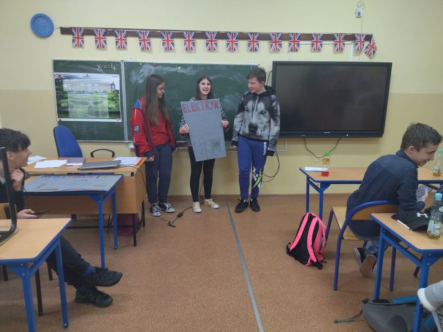 Uczniowie klasy 8 na zajęciach doradztwa zawodowego, we współpracy z nauczycielem wiedzy o społeczeństwie, realizowali projekt edukacyjny pod nazwą "Współczesny rynek pracy, na drodze do wymarzonego zawodu".