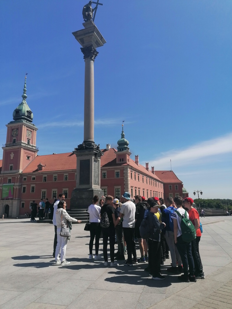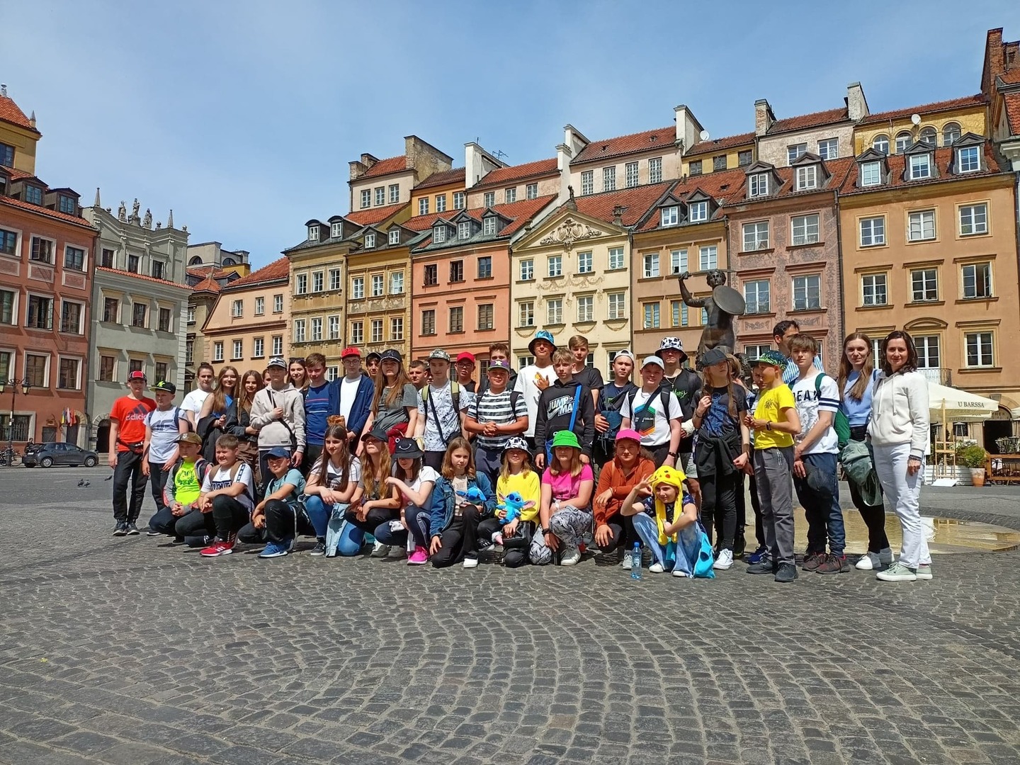 W dniach 19-20 maja 2022 roku odbyła się dwudniowa wycieczka do Warszawy w ramach przedsięwzięcia Ministerstwa Edukacji i Nauki "POZNAJ POLSKĘ". Wzięli w niej udział uczniowie klas IV-VIII naszej szkoły. Do stolicy wyruszono wczesnym rankiem, aby dotrzeć tam jak najszybciej i móc podziwiać urokliwą stolicę Polski. Zwiedzanie rozpoczęło się od spaceru po Starym i Nowym Mieście. Uczestnicy wycieczki z bliska zobaczyli słynną Kolumnę Zygmunta, spacerowali po ul. Świętojańskiej, dotarli do Archikatedry św. Jana oraz podziwiali zabytkowy Rynek Starego Miasta. Pod kierownictwem przewodnika przybyli pod pomnik Małego Powstańca oraz Syrenki Warszawskiej. Następnie uczestnicy wyjazdu przeszli Traktem Królewskim do Grobu Nieznanego Żołnierza, gdzie z zapartym tchem oglądali zmianę warty. A to jeszcze nie koniec atrakcji pierwszego dnia wyjazdu… Spod Grobu Nieznanego Żołnierza uczniowie dojechali na Plac Defilad, gdzie wjechali na 30. piętro Pałacu Kultury i Nauki. Tam mogli podziwiać wyjątkową panoramę Warszawy. Po dniu pełnym wrażeń, uczestnicy wycieczki dotarli do hotelu, gdzie zjedli obiadokolację i spędzili noc.