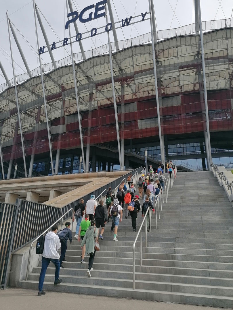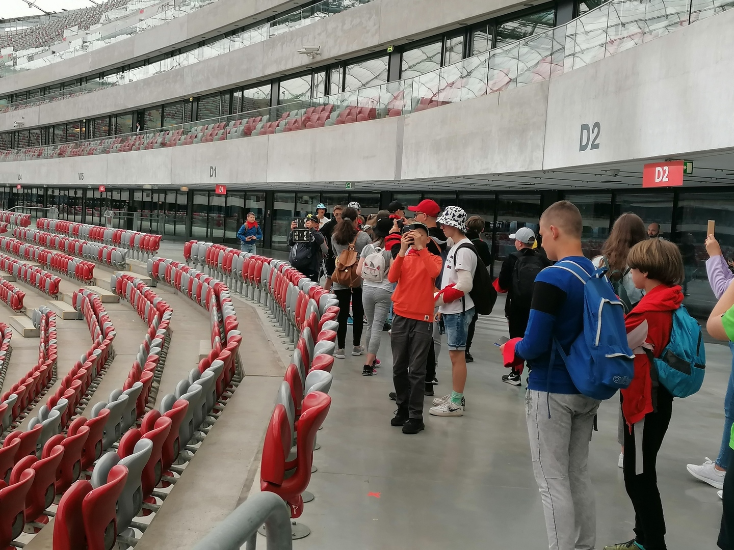 Drugi dzień zwiedzania Warszawy rozpoczęto od wizyty na Stadionie Narodowym. Zafascynowani uczniowie (wraz z przewodnikiem) przeszli „Trasą Piłkarza”, w czasie której zobaczyli murawę, trybuny i szatnię największej w Polsce areny rozgrywek sportowych. Następnie odbyła się wizyta w Bibliotece Uniwersyteckiej wraz z podziwianiem ogrodów na jej dachu. Ciekawym miejscem było Muzeum Wojska Polskiego, gdzie uczniowie mogli zobaczyć m.in. czołgi i samoloty wojskowe. Pośród zgiełku miasta, dobrze było na chwilę odetchnąć na łonie natury i nabrać sił na kolejne punkty programu. Uczestnicy spędzili bowiem trzy godziny w Centrum Nauki „Kopernik”. Jest to największy w Polsce park doświadczeń. Różnorodność stoisk naukowych i sposób przekazywania wiedzy teoretycznej sprawiły, że każdy uczeń znalazł tam coś dla siebie. Po intensywnym czasie spędzonym w „Koperniku” uczestnicy udali się na obiad, a potem wyruszyli w drogę powrotną.