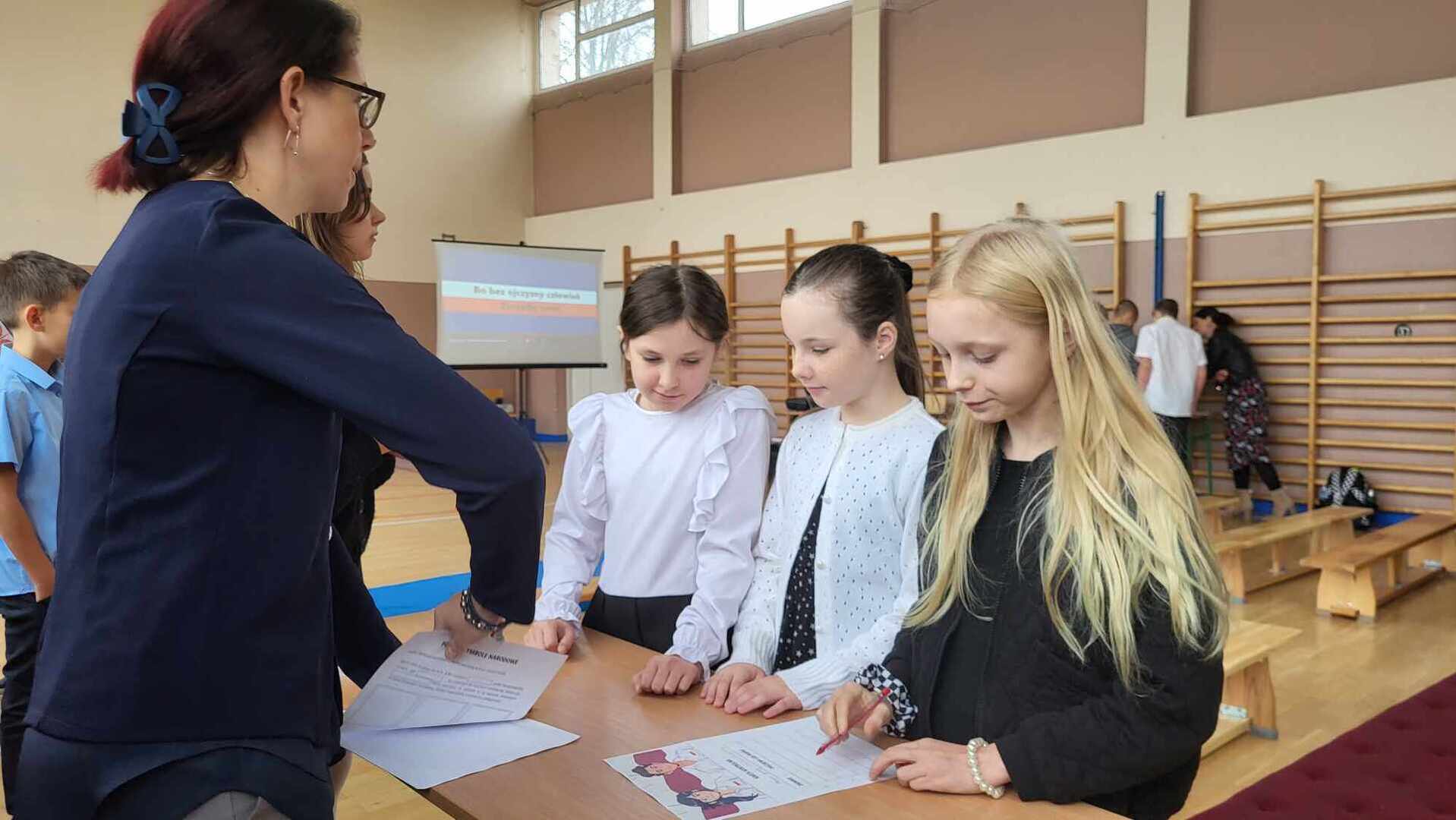 Natomiast uczniowie klas 4-8 wzięli udział w przygotowanej przez nauczycieli grze patriotycznej. Była to znakomita okazja do wykazania się wiedzą z historii Polski i doskonalenia umiejętności współpracy w grupie. Uczniowie po zakończonej grze otrzymali certyfikaty udziału.