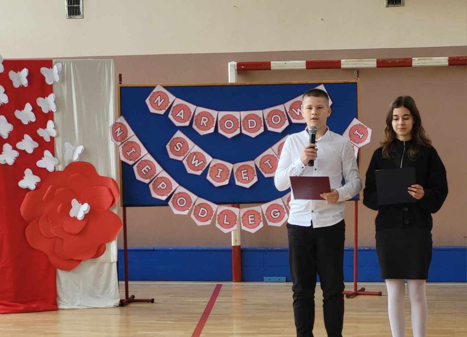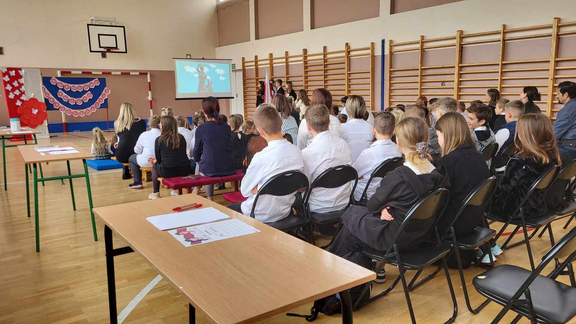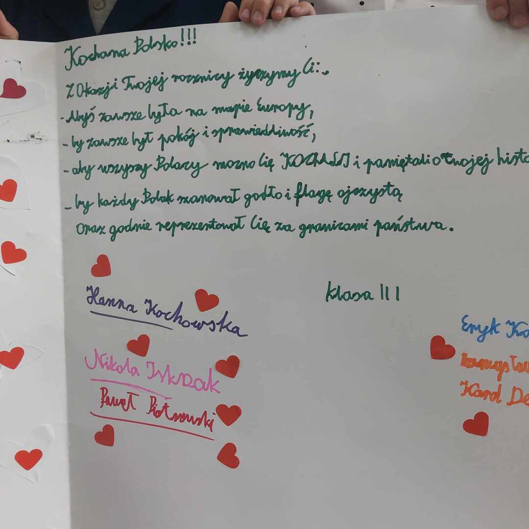 Wszyscy uczniowie i wychowankowie odśpiewali "Mazurka Dąbrowskiego", wysłuchali krótkiego rysu historycznego, obejrzeli film o trudnej drodze do niepodległości oraz zaśpiewali wspólnie piosenkę patriotyczną "To moja Polska".
