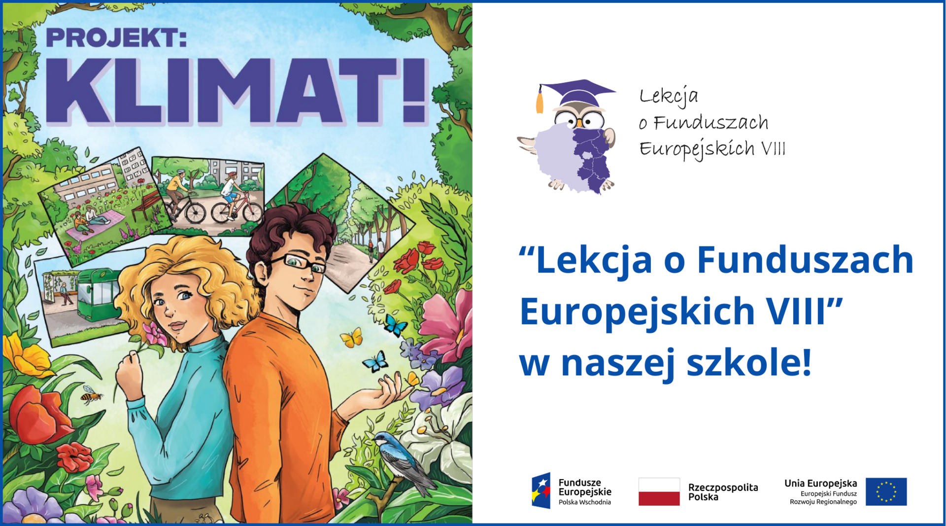 Ile wody potrzeba do produkcji ubrań mieszczących się w jednej szafie? Czy dżdżownice jedzą plastik? Ile śmieci rocznie produkuje każdy z nas? Czy Europa może być pierwszym na świecie neutralnym klimatycznie kontynentem? Odpowiedzi na te pytania uzyskali uczniowie naszej szkoły, którzy wzięli udział w akcji edukacyjnej "Lekcja o Funduszach Europejskich VIII", organizowanej przez Ministerstwo Funduszy i Polityki Regionalnej.