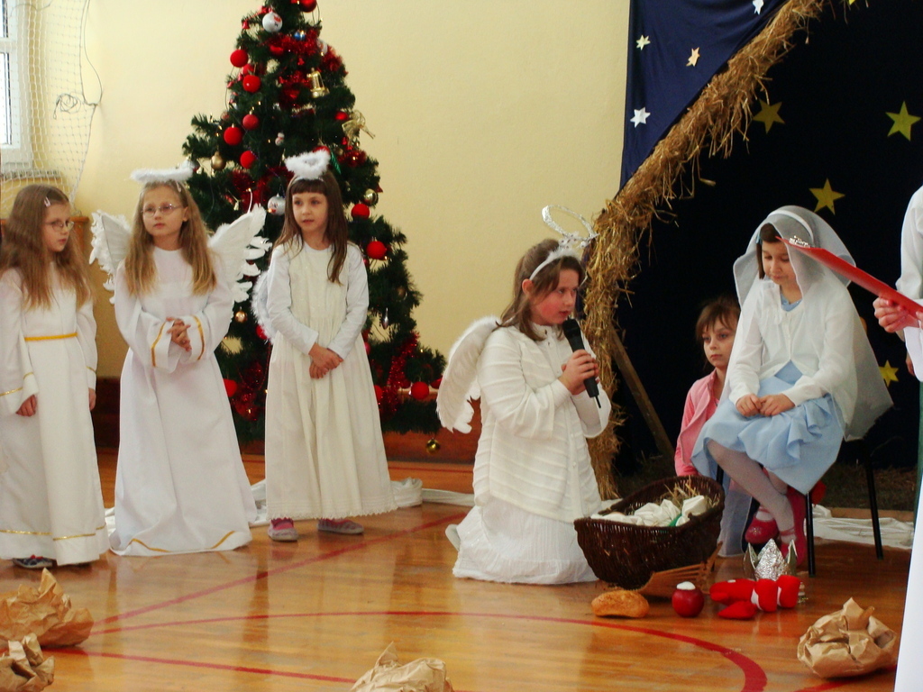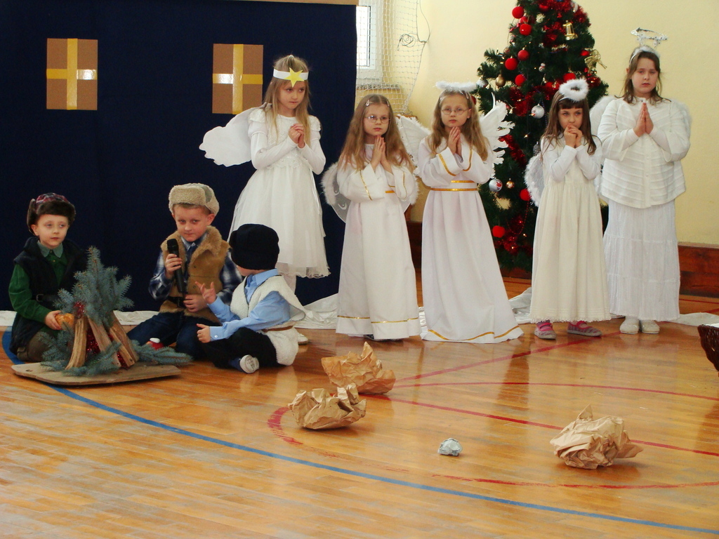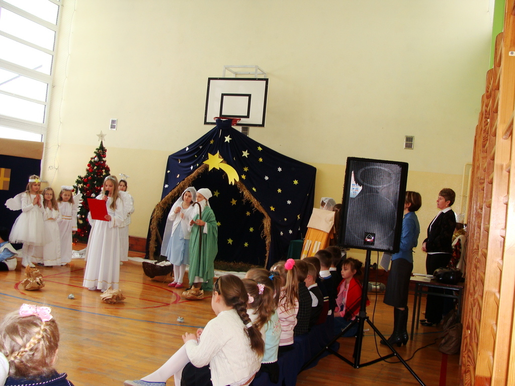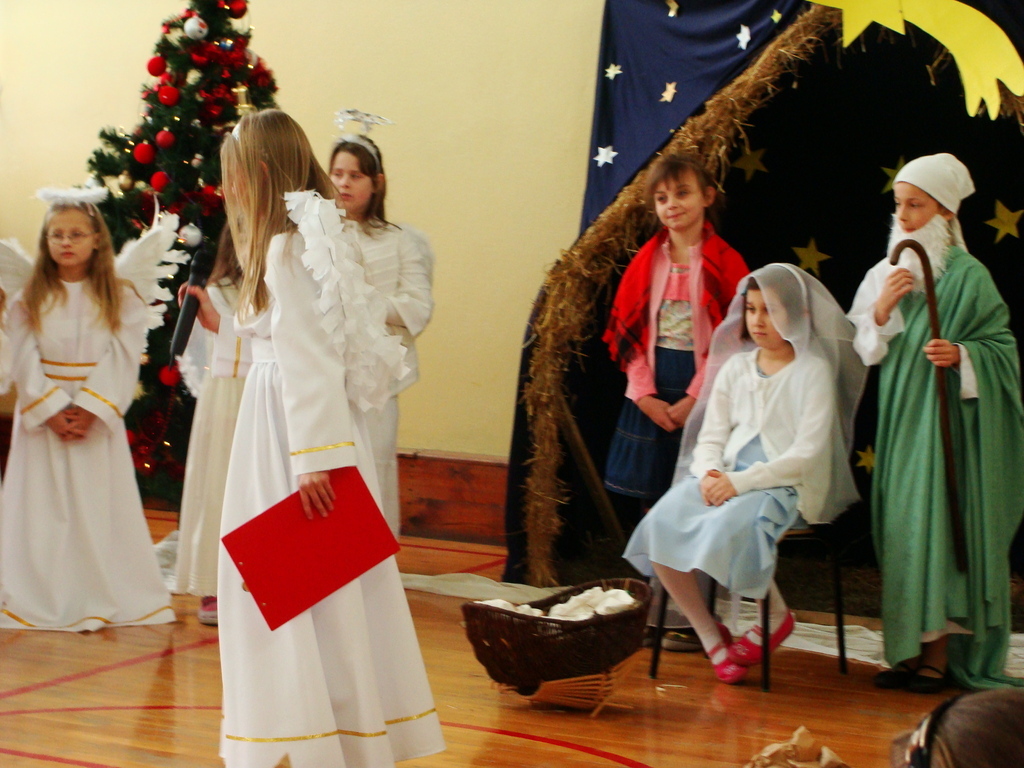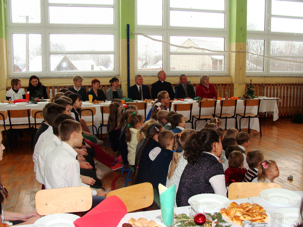 W przedostatni dzień nauki w szkole przed świętami dzieci zaprezentowały jasełka, a po nich odbyło się wspólne dzielenie opłatkiem i poczęstunek.