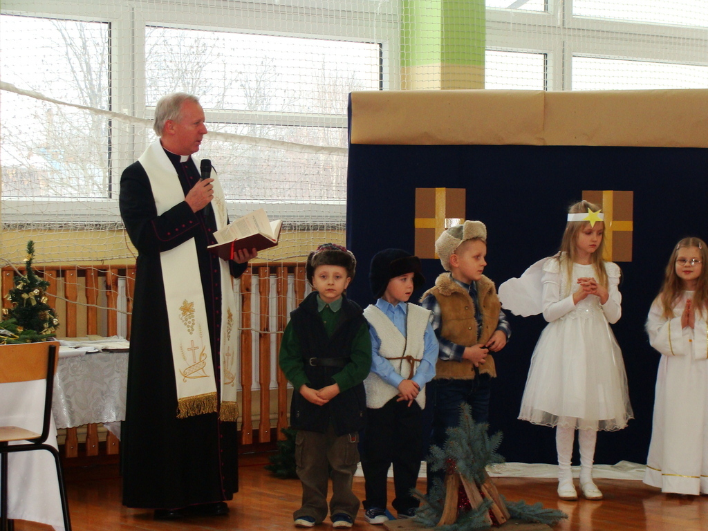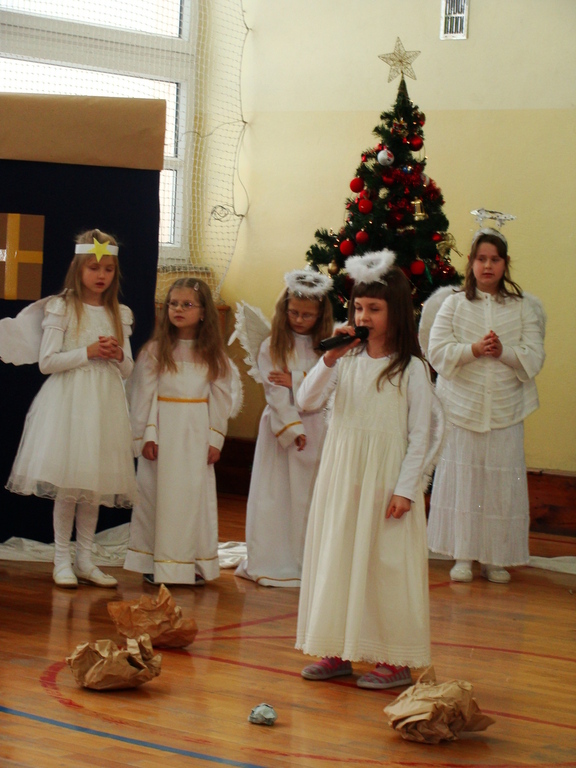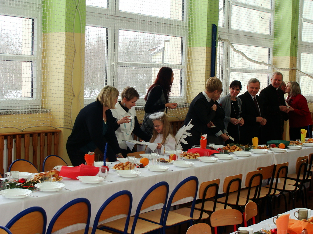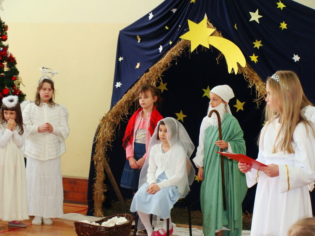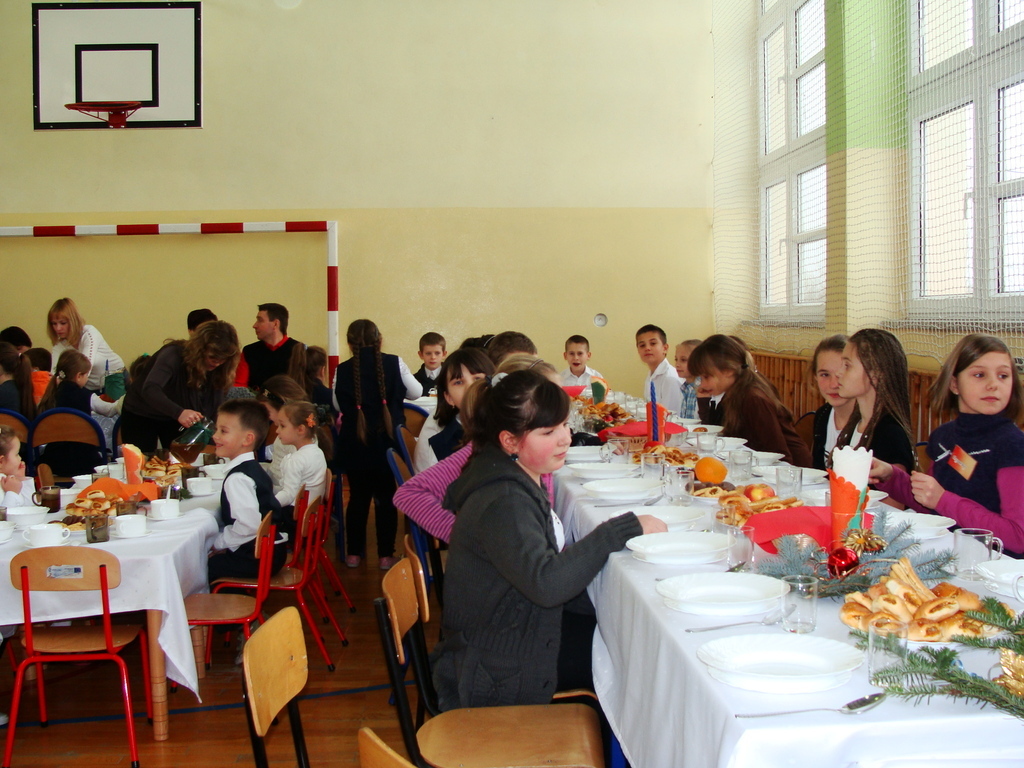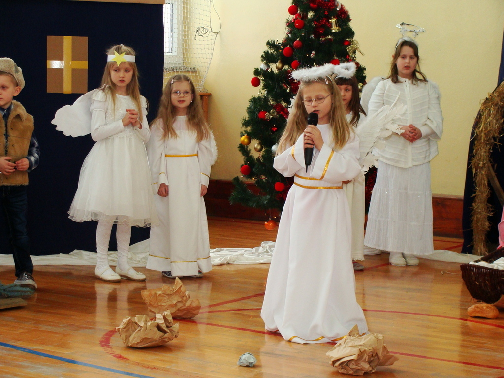 W przedostatni dzień nauki w szkole przed świętami dzieci zaprezentowały jasełka, a po nich odbyło się wspólne dzielenie opłatkiem i poczęstunek.