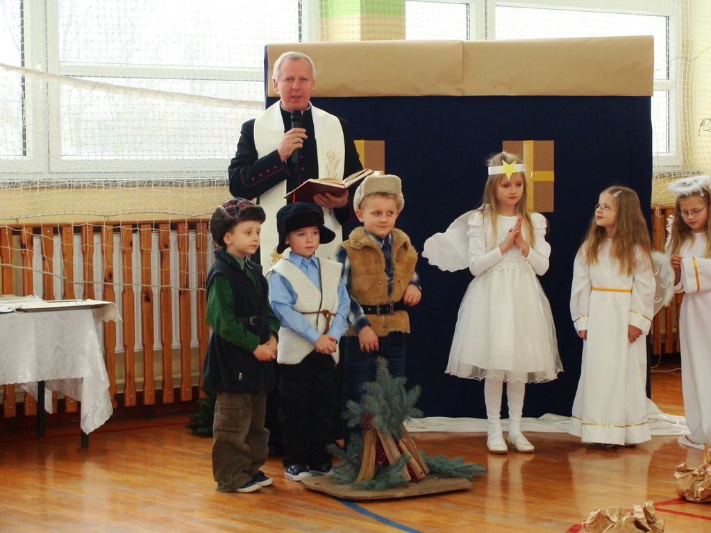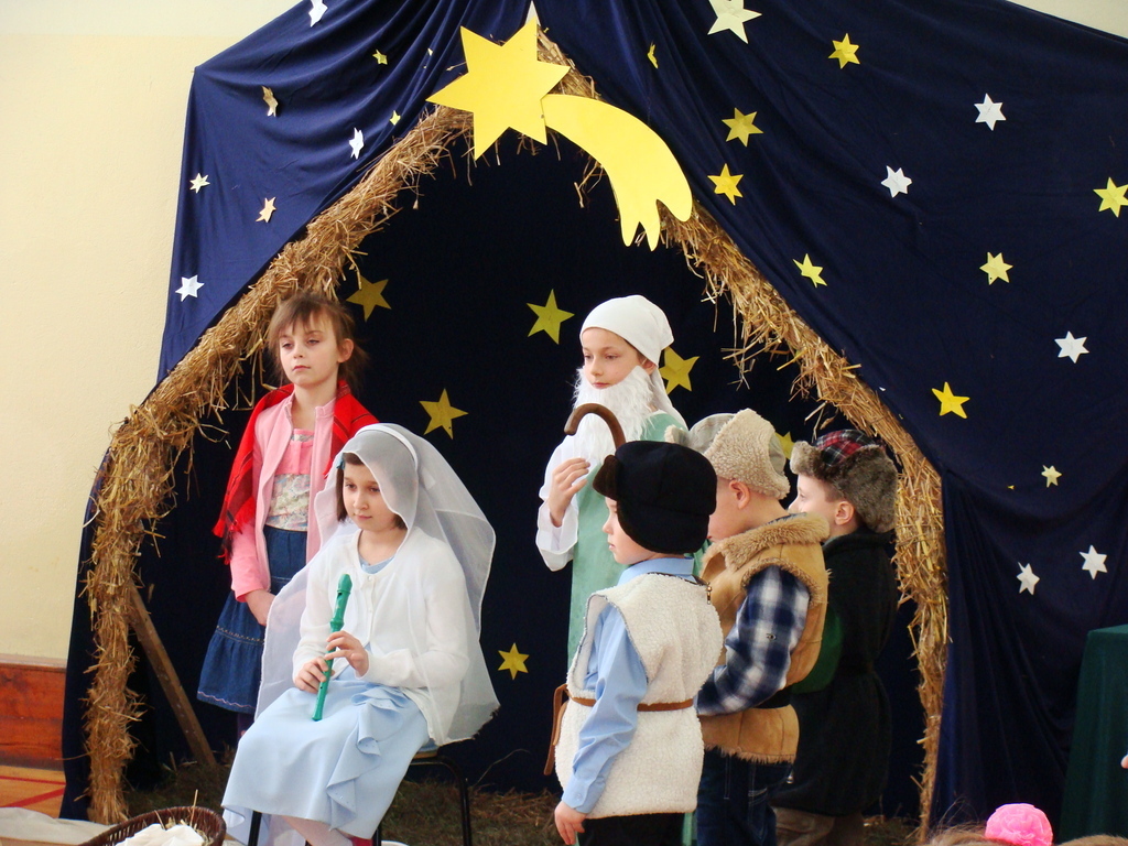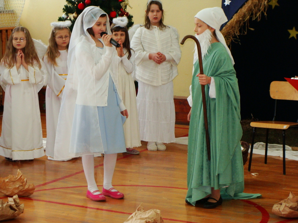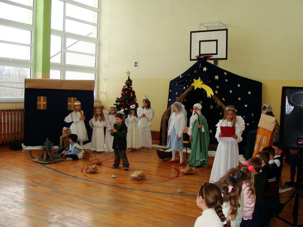 Historię narodzenia Jezusa przedstawili uczniowie z klasy II i III.