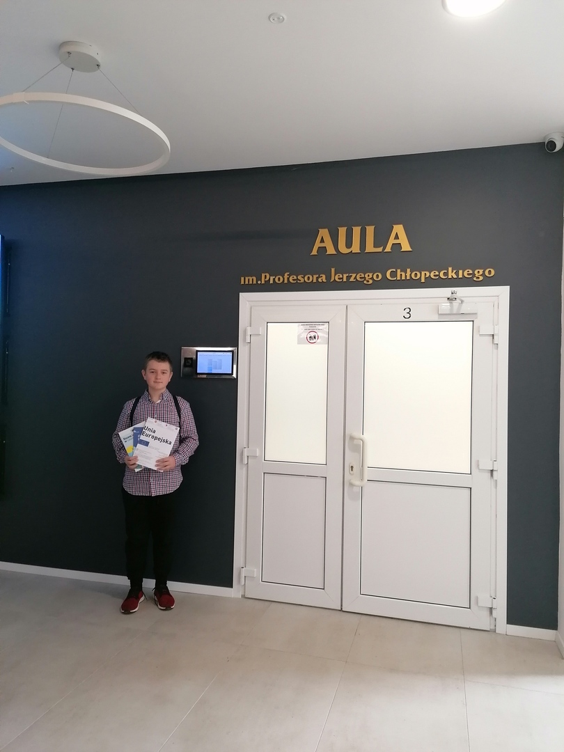 Uczeń klasy VII - Andrzej Dechnik wziął udział w VI. edycji Wojewódzkiego Konkursu Historycznego dla szkół podstawowych "Od unii lubelskiej do Unii Europejskiej" pod hasłem Otwarci na świat: TOLERANCJA-DEMOKRACJA- Jestem na TAK!, którego organiatorem byli: EUROPE DIRECT Rzeszów i Podkarpackie Centrum Edukacji Nauczycieli w Rzeszowie.