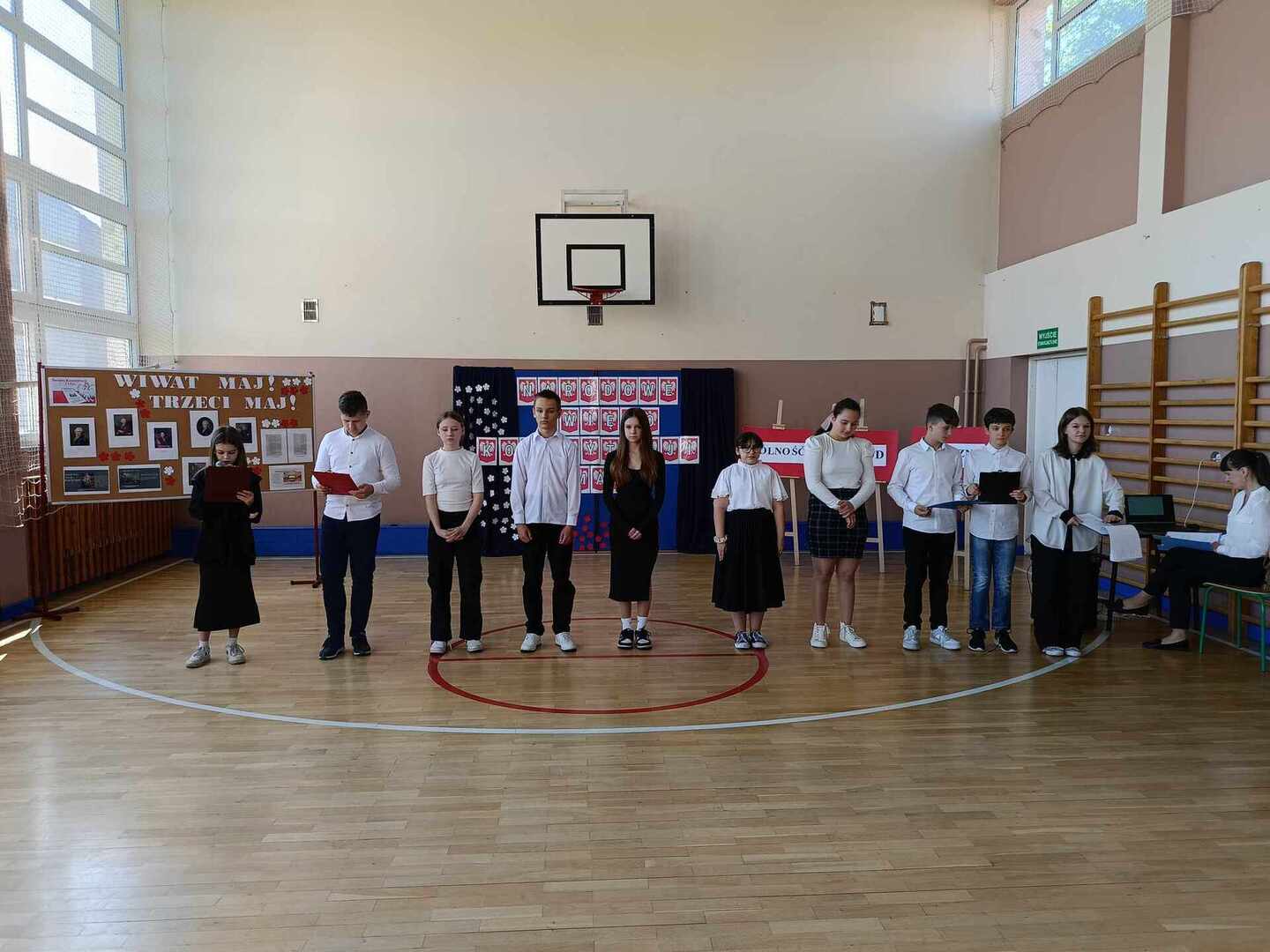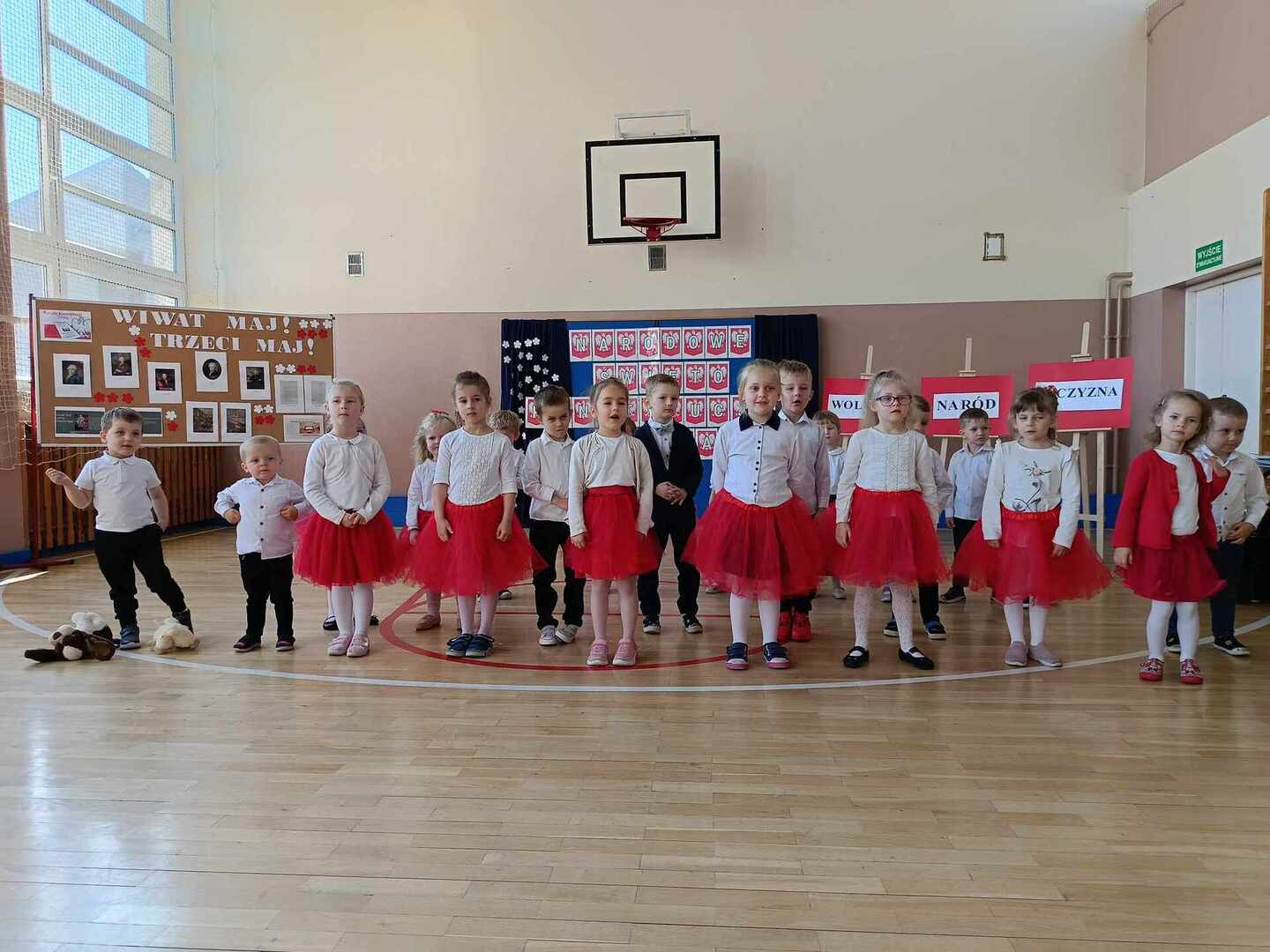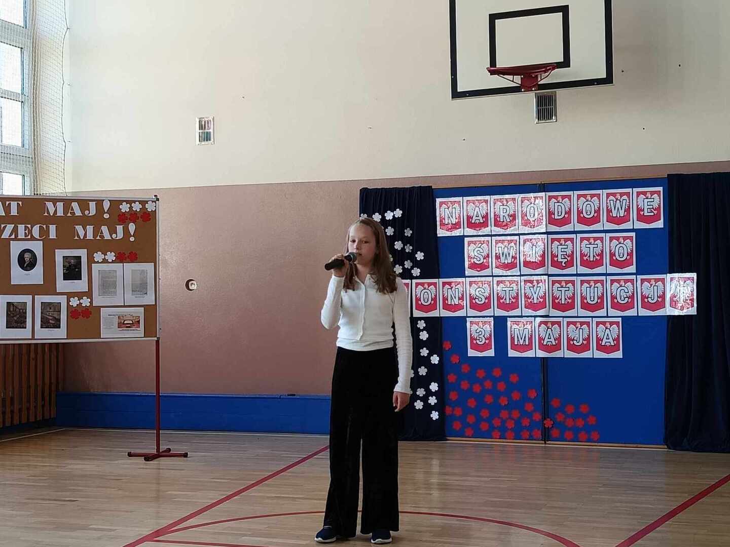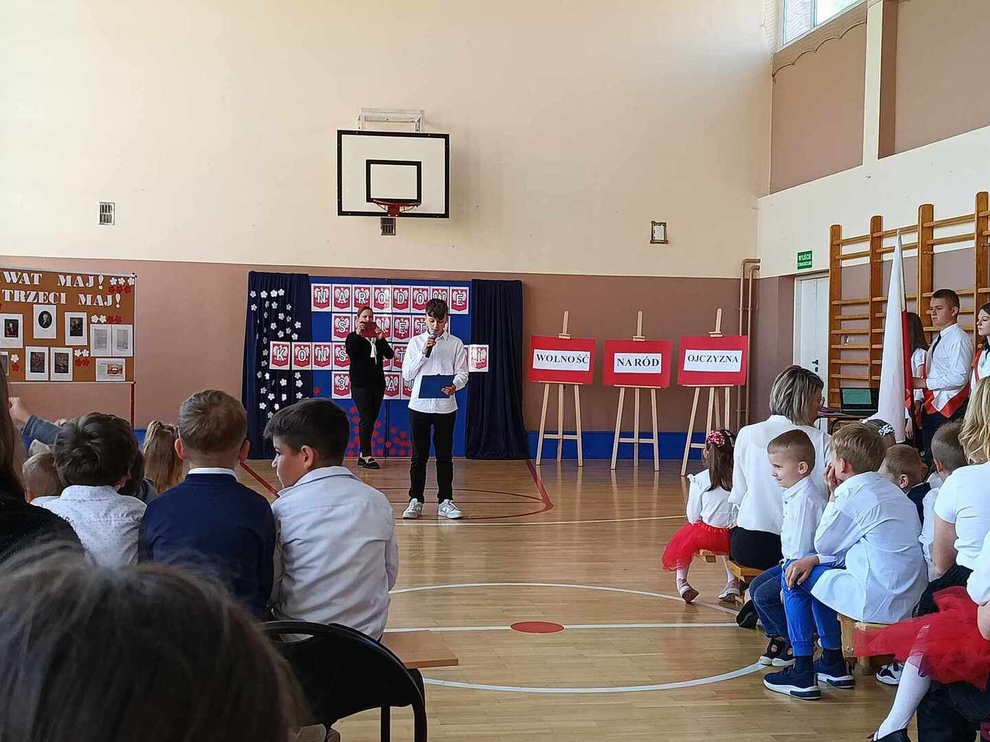 30 kwietnia uczciliśmy zbliżającą się 233. rocznicę uchwalenia Konstytucji 3 Maja. Uczniowie klasy szóstej przybliżyli wszystkim zgromadzonym tło historycze oraz okoliczności uchwalenia tego najważniejszego aktu prawnego, wychowankowie przedszkola zaprezentowali taniec z flagami oraz zaśpiewali piosenkę "Konstytucja 3 Maja", a uczennica klasy IV zaśpiewała piosenkę "Jest takie miejsce, Polska".