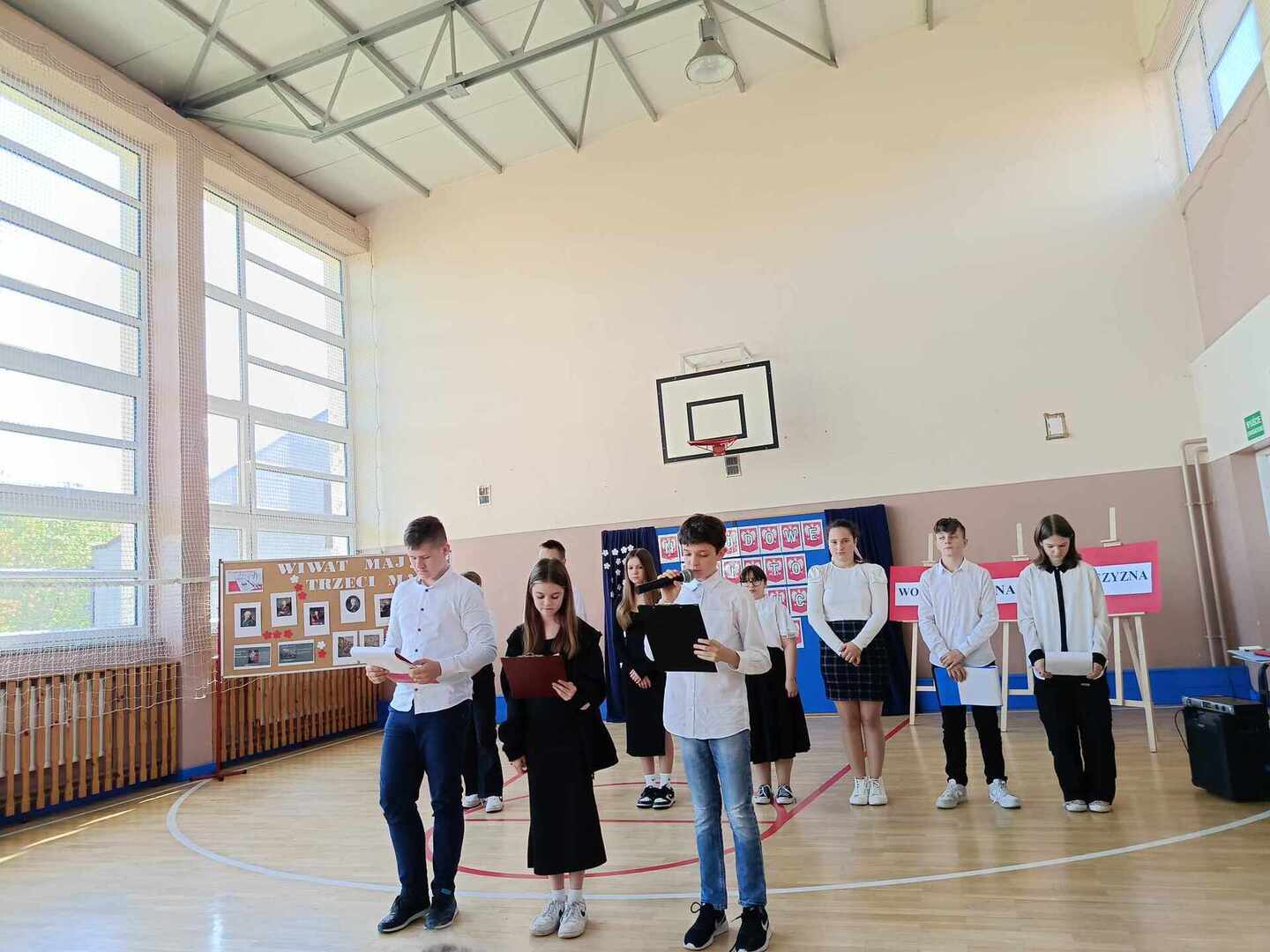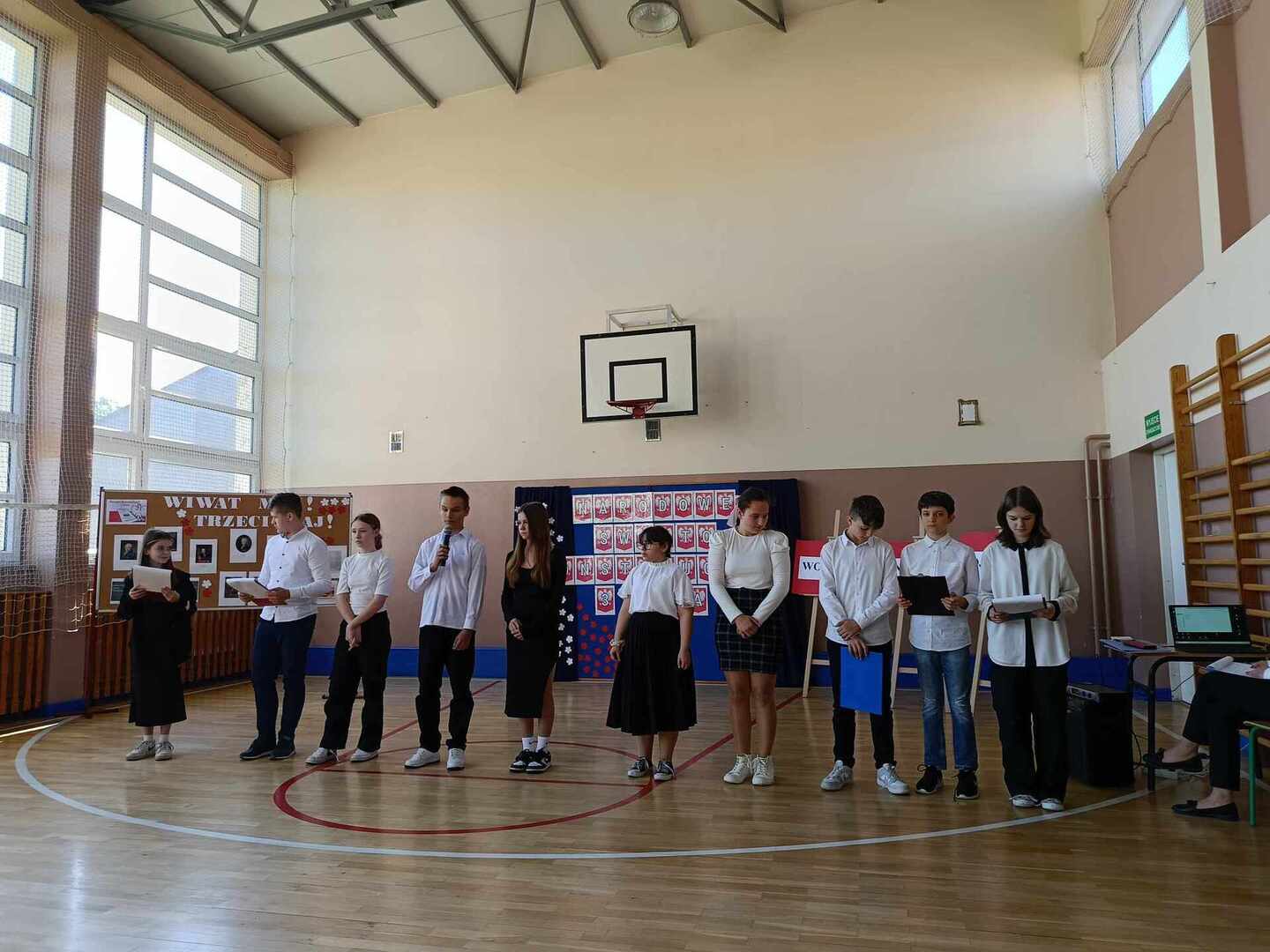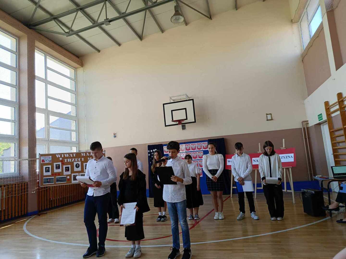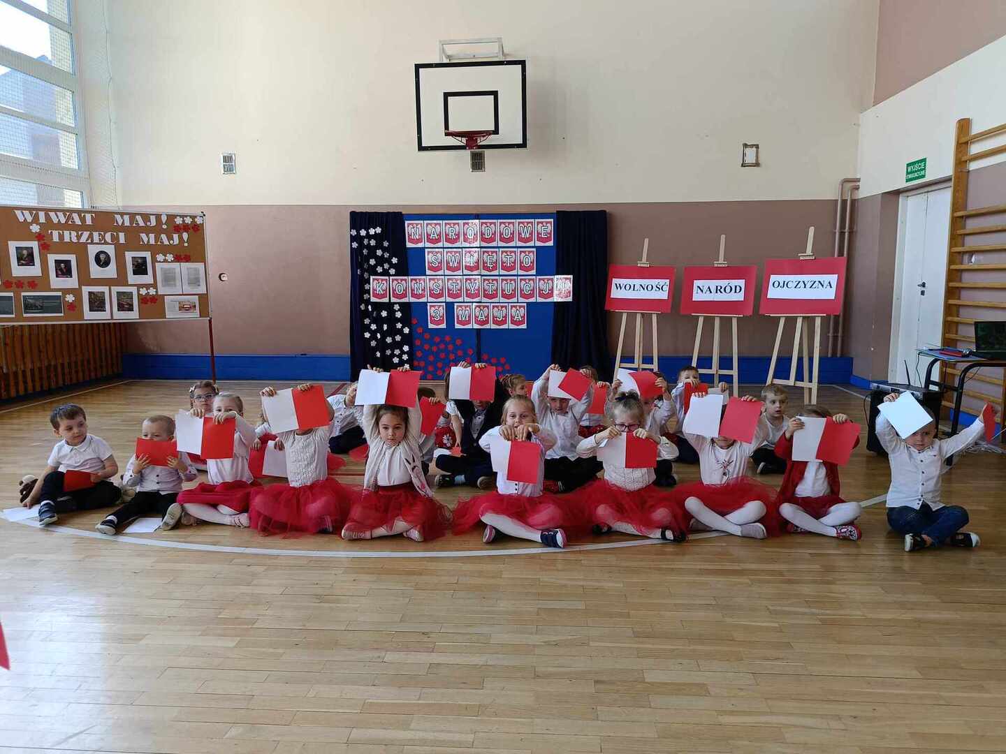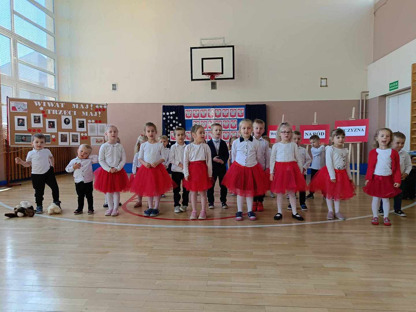 30 kwietnia uczciliśmy zbliżającą się 233. rocznicę uchwalenia Konstytucji 3 Maja. Uczniowie klasy szóstej przybliżyli wszystkim zgromadzonym tło historycze oraz okoliczności uchwalenia tego najważniejszego aktu prawnego, wychowankowie przedszkola zaprezentowali taniec z flagami oraz zaśpiewali piosenkę "Konstytucja 3 Maja", a uczennica klasy IV zaśpiewała piosenkę "Jest takie miejsce, Polska".